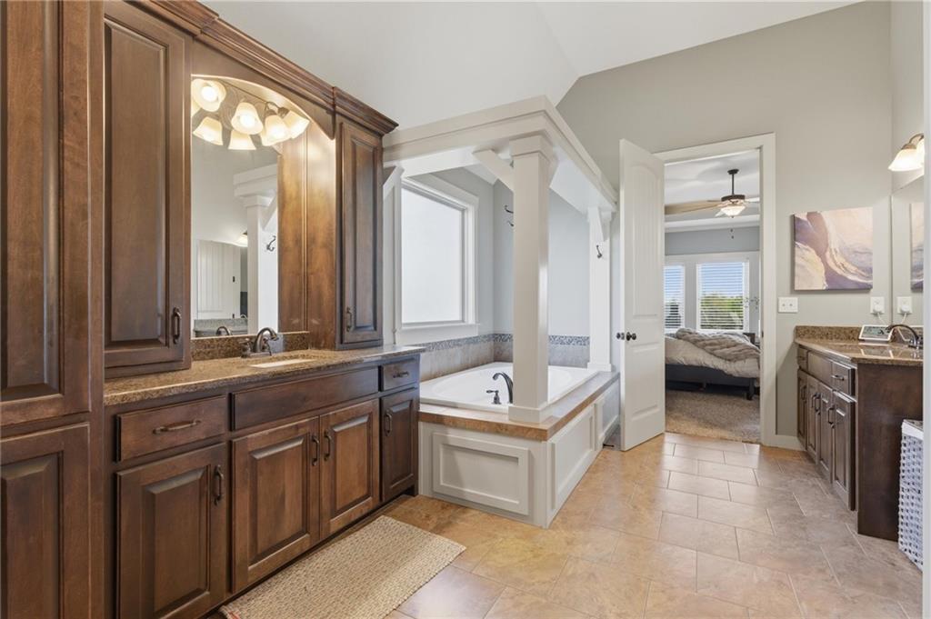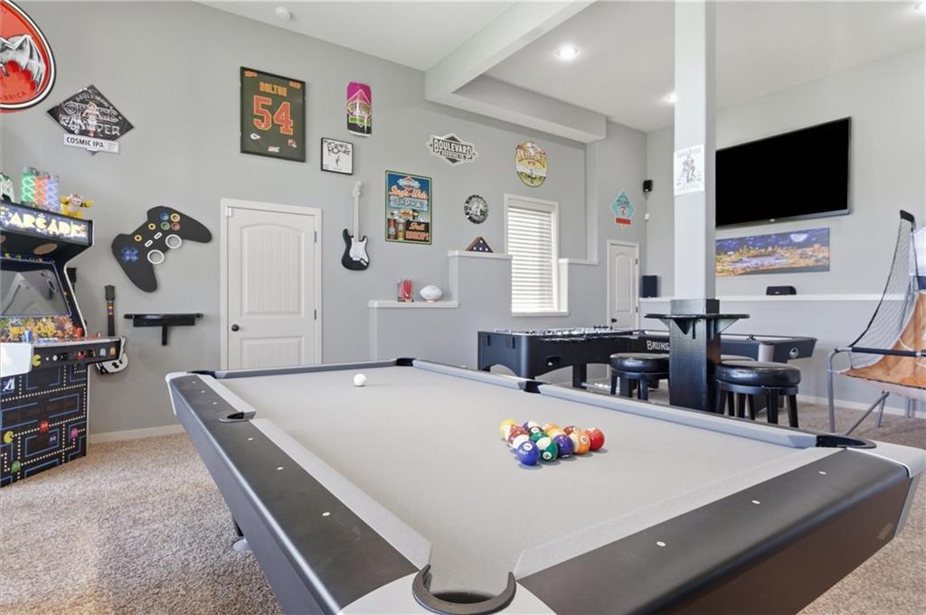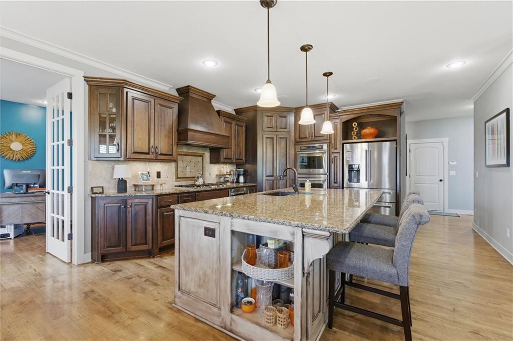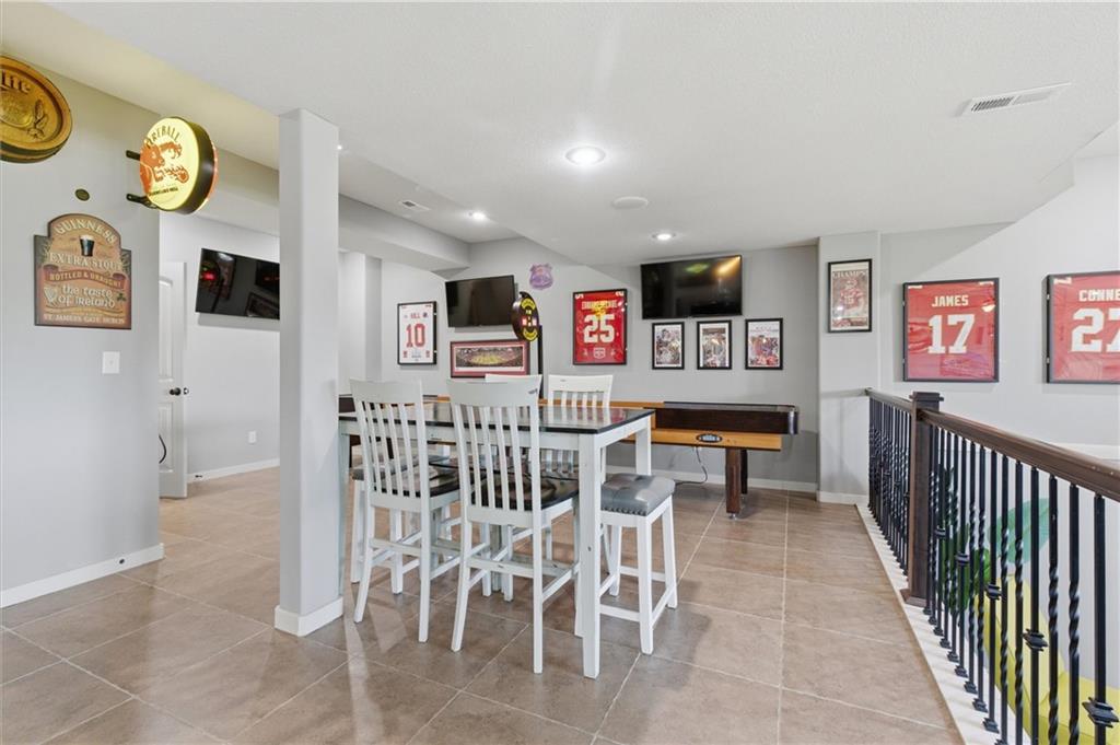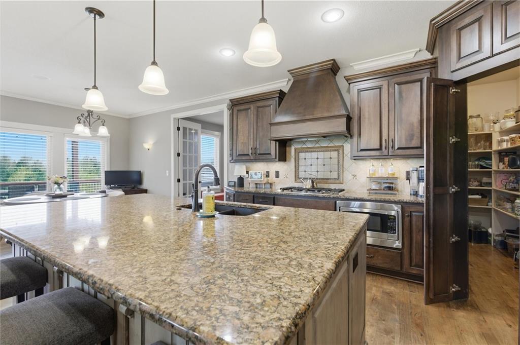 Stunning home on 1.35 acre lot! Walk in & admire gorgeous hardwood floors, tall cathedral ceilings & double bay windows! Gourmet kitchen w/large granite island, 5 burner gas cooktop, double oven & walk-in pantry! Enjoy summer nights on your HUGE, 23x12 covered deck + 16x12 uncovered deck! Entertain easily in your 2 tiered, 2000 sq ft. walk-out basement with large, granite wet bar that has a 2 tap kegerator, theater area, gam room plus a vault with safe door under the suspended garage - seller is leaving the safe inside the vault! Suspended 3 car garage provides tons of storage! Master bathroom features double shower heads, body sprayer & heated floors! 2 HVAC units that are zoned! 2 water heaters! Sprinkler system! Other features include central speaker system, hot tub, landscaping accent lighting, new furnace, new roof, new exterior paint, invisible fence & a 11x11 4th car garage in the basement that's perfect for lawn equipment