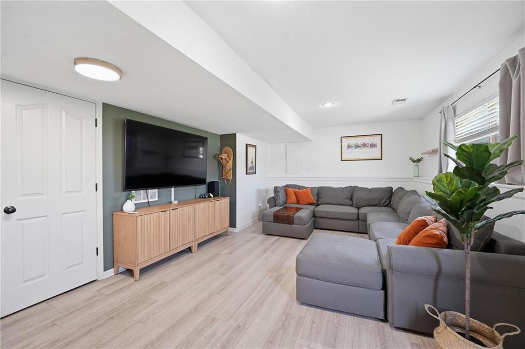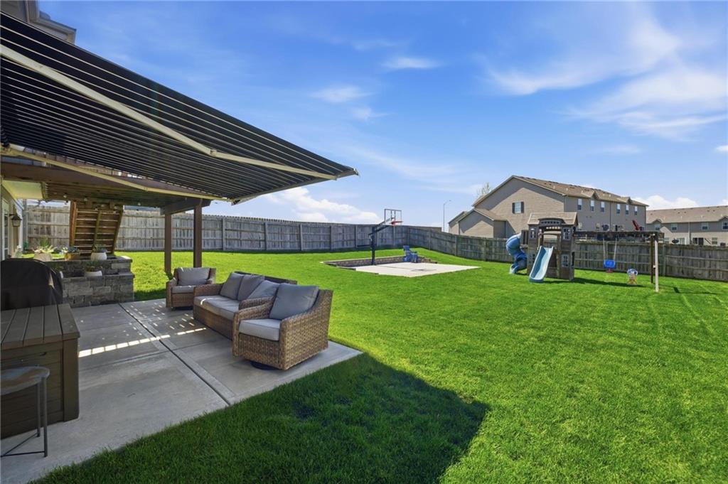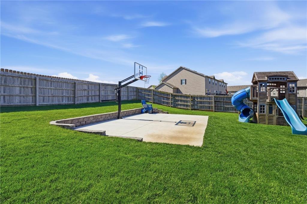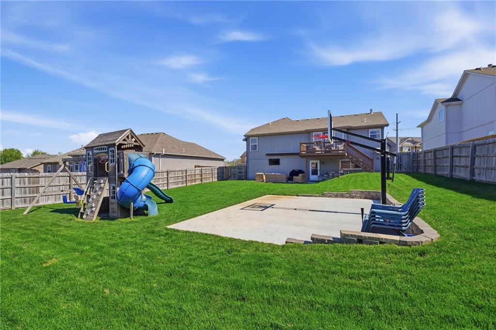 Welcome to Genesis Place at Green Hills! This front to back split welcomes you into a large living room with vaulted ceilings, beautiful windows and a refinished fireplace. Upstairs the renovated kitchen takes center stage with quartz countertops and painted cabinets, opening into a home filled with newer flooring throughout. This home also offers updated bathrooms and a 3-car garage along with a subbasement perfect for storage, a workout area, or flex space. The spacious primary suite features a large jacuzzi tub, double vanity, and walk-in closet. Out back, the yard truly steals the show with a basketball court, playground, deck, and extended concrete patio complete with a retractable awning—ideal for both relaxing and entertaining. Curb appeal is no problem here with the newly installed flower bed retaining walls in both the front and backyard. Last but certainly not least, a NEW ROOF is coming soon!