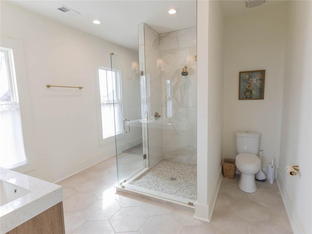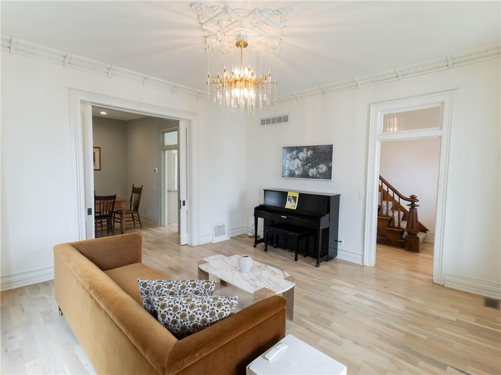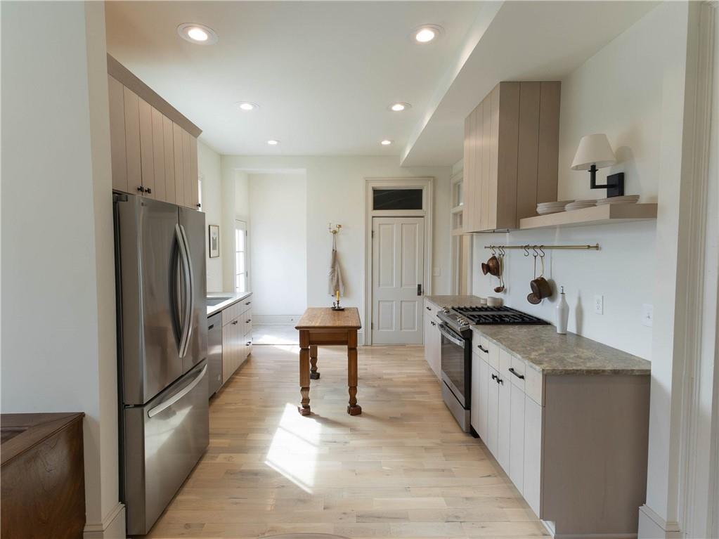 Historic Italianate three bedroom home on 1/4 acre in the vibrant neighborhood of Strawberry Hill. Featuring picturesque city views from the deck and primary bedroom, this home is full of charm and character - a perfect blend of modern and historic. The beautifully milled wooden stairwell welcomes you to the first floor, featuring original trim and new hardwood flooring. The living room, highlighted with original plaster crown molding, shares pocket doors with the dining room, complete with lovely bay windows. Upon entering the open kitchen you'll discover an enormous window with views into the garden, updated appliances, marble countertops, and custom cabinetry. Sharing space with the kitchen is a sitting room, featuring built-in wooden banquette seating, a gas fireplace, and yet another massive picture window. It is perfect for hosting guests while you cook with vegetables picked fresh from the garden, all flourishing under the canopy of an old catalpa tree. Journeying back into the home, passing the conveniently located 1/2 bath, there is a breakfast room with built-in cabinetry to match the kitchen. Upstairs, wooden floors transition to comfortable carpet. A small front room, perfect for a home office, is adjacent to a large bedroom. A full bath, located off of the hallway at the top of the stairs, consists of a vanity with the same custom cabinetry and marble countertops as the kitchen. Curved plaster walls make way to a second bedroom, with more pocket doors leading into the huge primary bedroom. Don’t miss the city views from the picture window above the bed - they are unbeatable. Adjacent to the primary bedroom is a vast master bathroom, with double sinks, a large shower, and beautiful tile, complete with a walk-in closet and laundry hook-ups. With updates abound, yet historical character intact, this home is truly a gem.