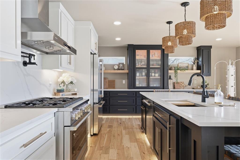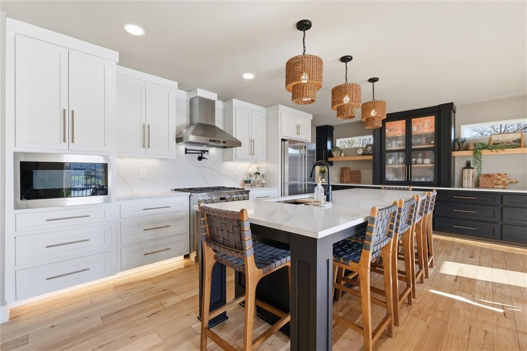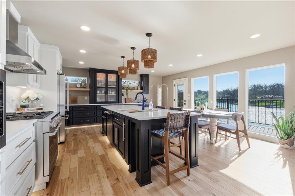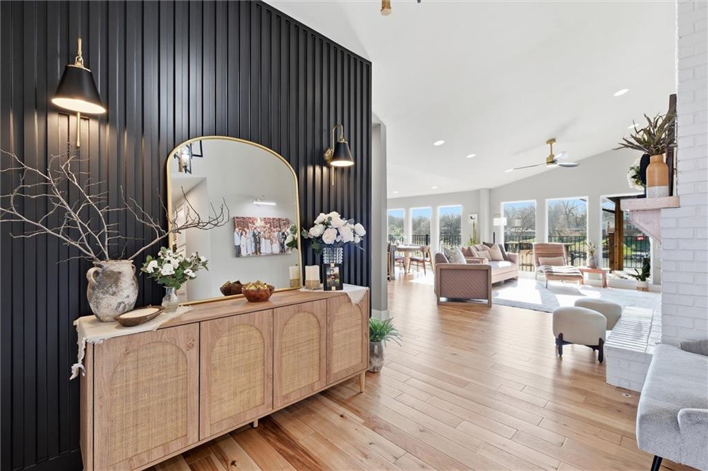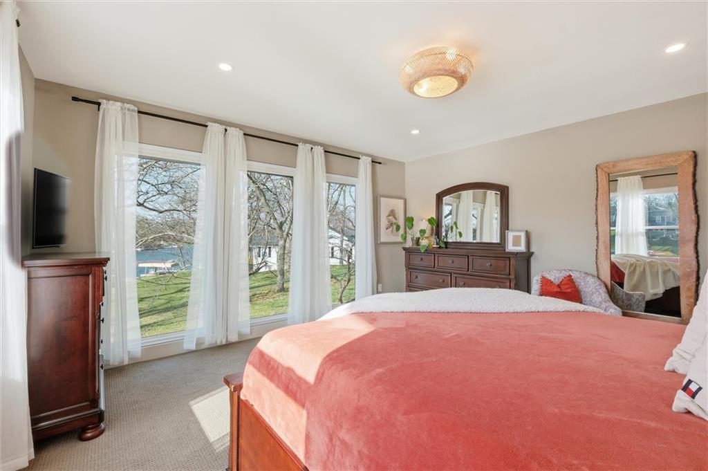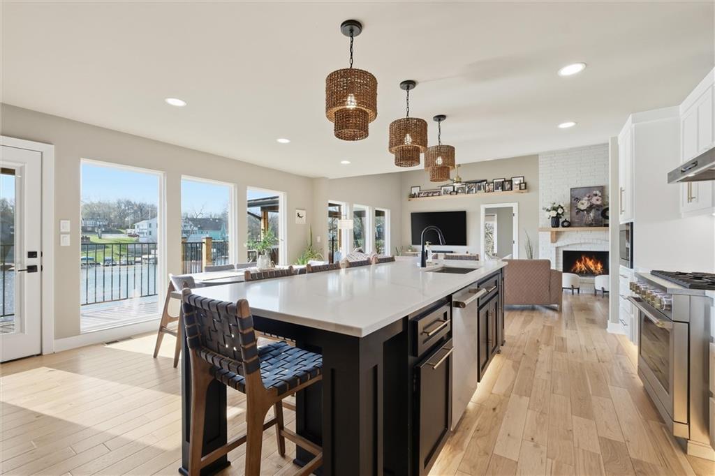 One-of-a-kind, custom-built lakefront home blending a fully remodeled structure with a seamless 2024 new construction addition—so thoughtfully executed, you’d never know where one ends and the other begins. Nearly everything is new, including siding, insulation, framing, electrical, plumbing, drywall, windows, doors, and finishes. Fiber cement siding over full house wrap creates exceptional durability, with areas boasting reinforced, multi-layer construction and cedar accents all around, including 2-foot cedar soffit on all four sides—no corners cut. Inside, high-end luxury details shine throughout. Rich ¾” hickory hardwood floors extend into the working pantry, while the open-concept design highlights craftsmanship and intentional design at every turn. The primary suite offers a peaceful retreat with stunning lake views and a spa-like en-suite featuring a double shower that feels both elevated and functional. Designed for both comfort and lifestyle, this true ranch includes a finished walkout basement just steps from the water on one of the best lots on the lake. Outdoor living is equally impressive, with expansive entertaining spaces. A standout feature: full glass garage doors that open wide to seamlessly blend indoor luxury with outdoor living, creating a unique and elevated experience perfect for entertaining or everyday enjoyment. This is more than a home—it’s a rare opportunity to own something truly special on the water.