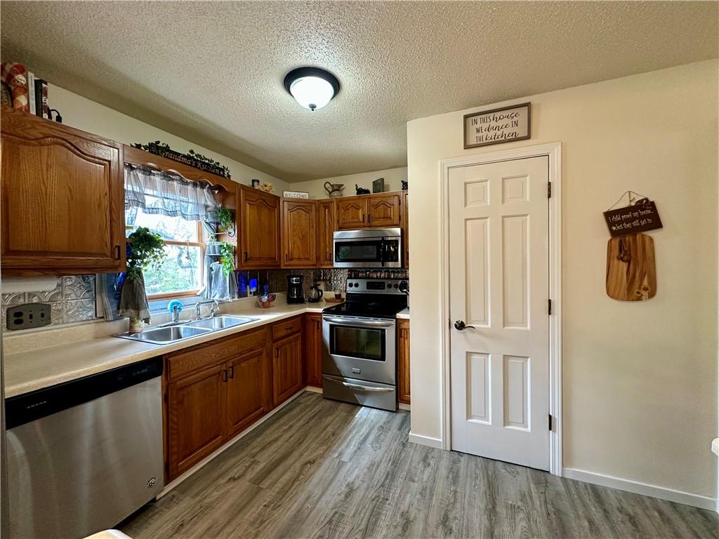 Come see this beautifully refreshed 5 bedroom, 2 bathroom property offering space, functionality, and comfort throughout. Step inside to enjoy an open living area, fresh interior paint and an abundance of natural light. The kitchen is open to the adjacent dining area, designed for both everyday living and entertaining featuring ample counter space, abundant cabinetry, a convenient walk-in pantry. Find the primary suite, 2 additional bedrooms, and the second bath ALL on the first floor. Updated bathrooms add a modern touch, while the large basement family room provides the perfect space for gatherings, relaxation, or a home-theater setup. Enjoy mornings on the covered front porch watching the sunrise and evenings on the back deck overlooking the spacious fenced backyard. Situated on a desirable corner lot, the property includes a two-car garage located in the basement. With generous living space, thoughtful updates, and great indoor-outdoor flow, this home is ready for you to move in and make it your own!