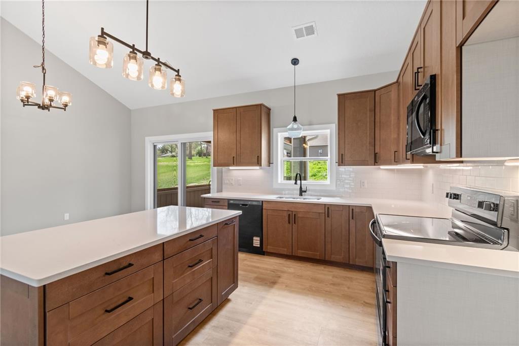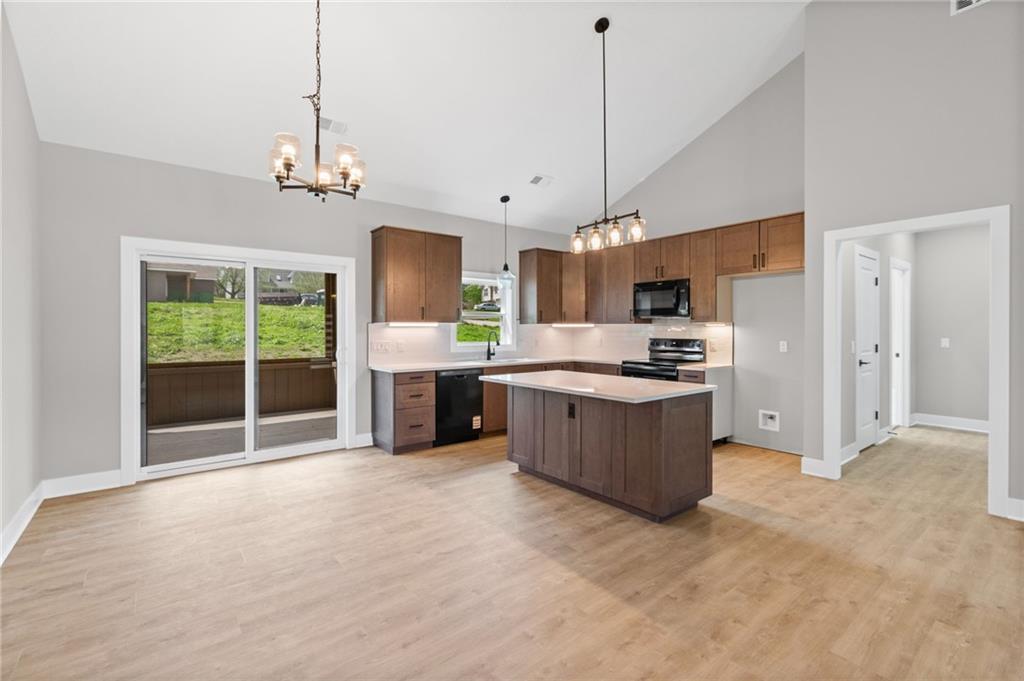 NEW BUILD, Single-level living at its finest. This 3-bed, 2-bathroom home is perfectly situated near the Plattsburg Country Club golf course and surrounded by new homes in a highly desirable area of Plattsburg. This convenient layout has ZERO steps, 36" wide doors, a spacious garage, and a screened-in back patio waiting for its new owners! The thoughtful layout offers an open living space concept with the living room, kitchen, and dining area flowing seamlessly together. On one end, you have 2 bedrooms with a full bathroom between them acting as the main bathroom for your guests and on the other end, you have the primary suite. The spacious primary suite offers a walk-in closet, a spacious on-suite with all of the fixtures that make it feel just right. The oversized windows in the bedrooms are an amazing feature, allowing the perfect amount of natural light into the home. Did I mention NO STEPS? This feature makes the transition from the garage space into the mudroom, straight to the pantry, a breeze! Enjoy the nice, well-graded corner lot, with enough space for your pets to roam yet not too much yard to be a burden on you to maintain. Modern home, modern fixtures, single level living, close to the golf course.