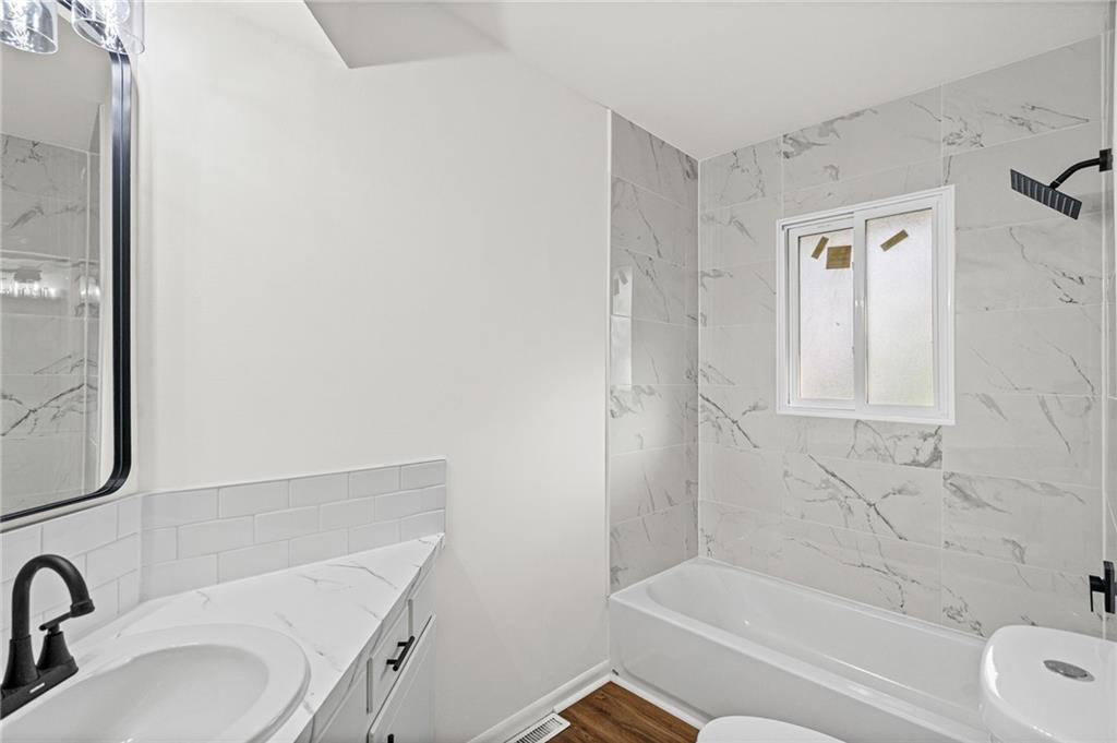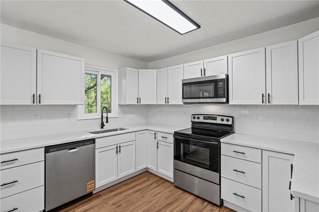 The finishes here belong in a $290,000 listing. The price tag doesn't! This fully renovated 3-bed, 2-bath Northland split has been rebuilt from the inside out: brand-new kitchen with quartz countertops, white shaker cabinets, subway tile backsplash, and a full stainless appliance package. Both bathrooms are completely new. New LVP floors run through the main living areas. The living room is anchored by a stone fireplace with black mantel. Upstairs, three bedrooms with tray ceilings and fresh carpet. Primary suite has its own private bath. The finished walkout lower level adds 401 sqft of flex space with a sliding door exit to the backyard. Second family room, home office, playroom. Your call. Step out to a deck overlooking a private, tree-lined yard. Tuck-under 2-car garage. HVAC, water heater, windows, and siding all replaced within the past few years. Move-in ready. Schedule a showing today!