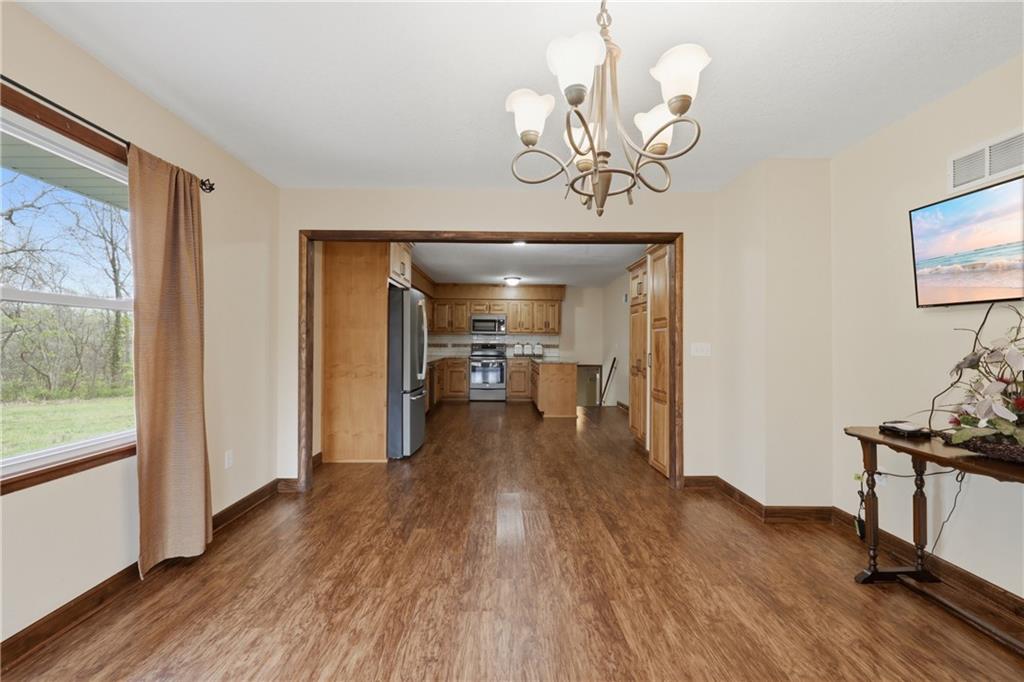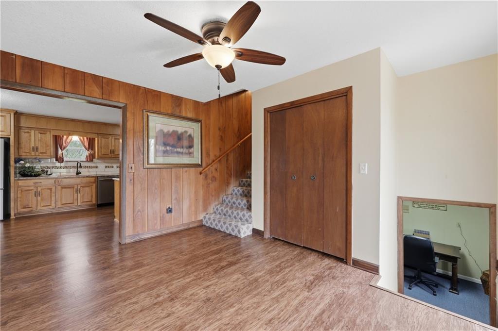 Nestled on 3.48 scenic acres, this 4 bedroom, 3 bathroom side-to-side split offers the perfect blend of privacy, space, and opportunity. Surrounded by mature trees with a peaceful pond on the property, this setting provides a quiet, country feel while still being conveniently located. Inside, you’ll find spacious living areas, a functional layout, and plenty of natural light throughout. The kitchen offers ample cabinet space and flows easily into the dining area, making it ideal for everyday living or entertaining. The finished lower level features a cozy fireplace and additional living space, perfect for a second family room, recreation area, or home office. Step outside and enjoy everything this property has to offer—from the expansive yard to the outbuilding/shop, providing plenty of room for hobbies, storage, or equipment. With nearly 3.5 acres, there’s endless potential for outdoor living, gardening, or simply enjoying the peaceful surroundings. This home is being sold AS-IS, making it a great opportunity for buyers looking to add their own personal touches and build equity in a beautiful setting. Don’t miss your chance to own acreage, a pond, and a home full of potential!