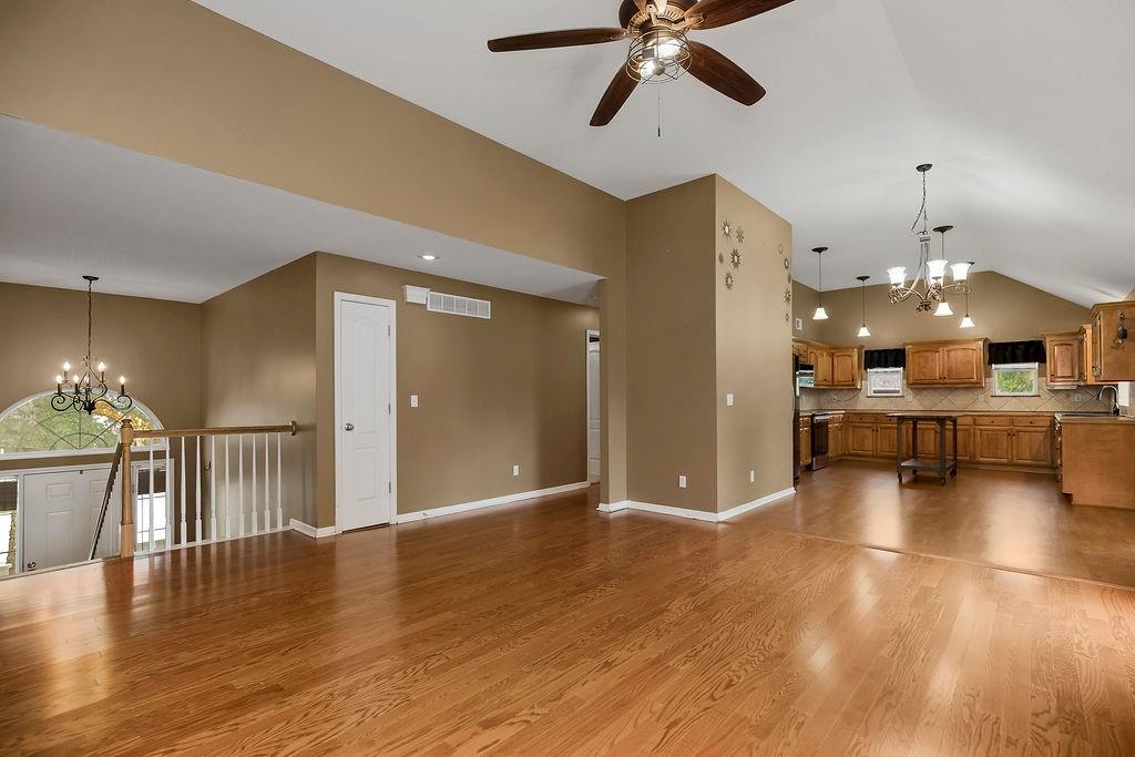 Beautifully updated home in a Cul-d-sac Lot!! HUGE kitchen with hardwood floors, Tons of cabinets, Open & Light! Vaulted Ceilings, Ceiling fans, Fireplace, Master bath w/Whirlpool, Shower, Walk-in closet, 4 Spacious bedrooms! 3 baths! The two-tier deck steps down to Stamped patio & fire pit! HUGE fenced back yard.... Fabulous out door entertainment area! Bathroom in basement has access to garage for quick clean-ups! Main level laundry! Great access to all Major roads! Close to shopping & restaurants! Walk to School - Excellent Liberty Schools! Neighborhood Pool and Walking Trails!! New exterior paint, new carpet in 2 bedrooms and downstairs. New luxury vinyl in the entry way from the garage and the upstairs hall bath. Fresh landscaping in the front adds to the curb appeal!