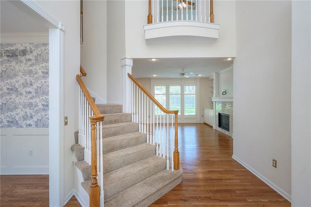 Don’t miss this beautifully maintained, move-in ready two-story home, proudly owned by a single owner and set on a spacious cul-de-sac lot with inviting outdoor living spaces. Step inside to a stunning two-story entry with balcony overlook, rich hardwood floors, and an open-concept layout designed for both everyday living and entertaining. Recent updates include plantation shutters, custom built-in bookshelves in the great room, garden accent lighting, new upstairs carpet (2023), and new upstairs windows (2023). The updated primary bathroom adds a touch of luxury, while the fully finished basement features a stylish quartz bar and a versatile bonus room—ideal for a home office, gym, or flex space. With its functional layout, thoughtful upgrades, and prime location in the highly desirable Blue Valley area, this home is a standout opportunity in one of southern Johnson County’s most sought-after communities.