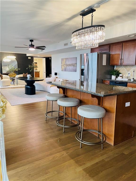Nestled in the vibrant heart of downtown Kansas City, this exquisitely updated two-bedroom, two-bathroom residence epitomizes stylish urban living. Thoughtfully renovated to showcase high-end finishes, this home features newly refinished hardwood floors throughout its spacious living areas, complemented by sumptuous plush carpeting selected specifically for the bedrooms. Step outside onto your stylish condo balcony, where afternoon sunlight bathes the space and offers breathtaking sunset views—a mesmerizing transition as the city transitions into the captivating night rhythms of Kansas City's luminous skyline. Highlights of this sophisticated residence include sleek granite countertops and premium stainless steel appliances, perfectly integrated into a sizable kitchen and island. This space is an entertainer's dream, ideal for hosting friends or enjoying serene mornings while sipping coffee and watching the city come alive. Beyond mere luxury, this condo enhances your lifestyle. Envision delightful gatherings with stunning views, cozy movie nights in the private theater, or leisurely afternoons on the open-air patio. Enjoy the full array of amenities, including a state-of-the-art gym, rejuvenating sauna, tennis and basketball courts, a game lounge, and a golf putting room—each designed to provide a retreat-like experience right at home. Practicality meets sophistication with two dedicated garage spaces, in-unit laundry, expansive walk-in closets, and an additional basement storage unit to accommodate your every need. A reverse osmosis drinking water system further exemplifies thoughtful living in this remarkable space. Situated mere moments from the dynamic Power & Light District, River Market, and convenient highway access, this residence is more than just a home; it is a declaration of your appreciation for design, location, and the desire to embark on an exhilarating new chapter in life. Embrace the urban lifestyle you've always envisioned!
