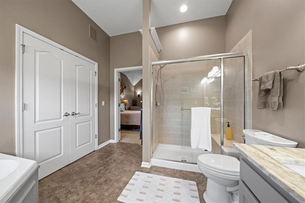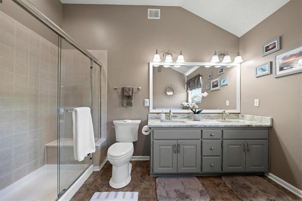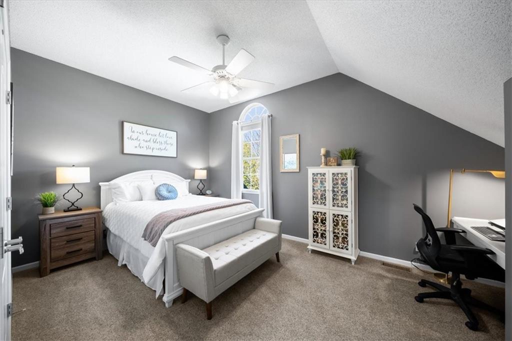PRISTINE ONE OWNER HOME! This is a move-in ready home with 4–5 bedrooms, 4½-baths offers 3,160 square feet of refined living in the sought-after DeSoto School District. The main level features an open layout with hardwood floors in the family room and dining area. Kitchen includes updated cabinets, granite countertops, whirlpool appliances and extended island with a spacious eating area. Upstairs has four spacious bedrooms, two with 10-foot ceilings, large lighted closets, and three full baths all connected by hardwoods. The finished basement is ideal for entertaining, featuring extensive cabinetry, a large media center, whole-house and outdoor audio wiring, and a flexible bedroom or study. Ceilings are extra high for a spacious feeling. The two-car garage includes an 11-foot ceiling, built-in workbench, and ample overhead storage, plus a 12×8 Tuff Shed in the backyard. Recently replaced roof and newly painted house. Heating and Air Conditioner replaced around 6 years ago. Outdoor living is the perfect retreat on the 17×32-foot deck with built-in island, grill, granite countertops, firepit, accent lighting, and an electric awning. Enjoy watching the wildlife as the large yard opens to a meadow and tree lined creek with access to the Johnson County Trail system, offering direct access to local schools and exceptional everyday enjoyment.