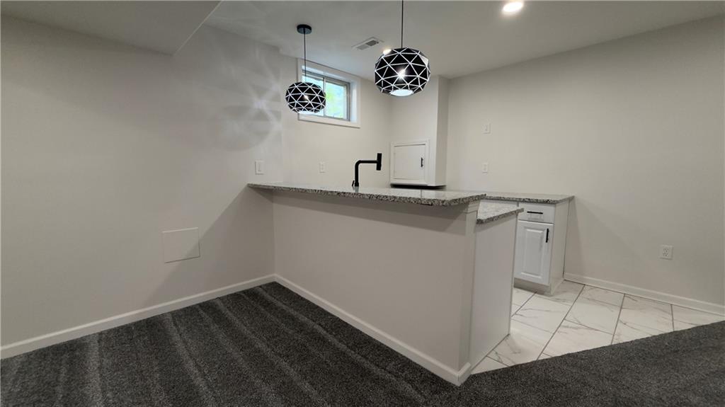 Beautifully updated 4-bedroom, 3-bath home in Olathe, KS with modern finishes and unique style throughout. Great curb appeal with black accents, a spacious driveway, two-car garage, and a good-sized lot. Inside features new ceramic flooring, carpet, fresh paint, and an updated kitchen with stylish fixtures. The spacious primary suite offers a private bath with double vanity, whirlpool tub, separate shower, and private toilet area. The finished basement adds extra living space with one bedroom, a full bath, double closet, custom bar, wine cooler, and storage. Large backyard with plenty of room to enjoy.