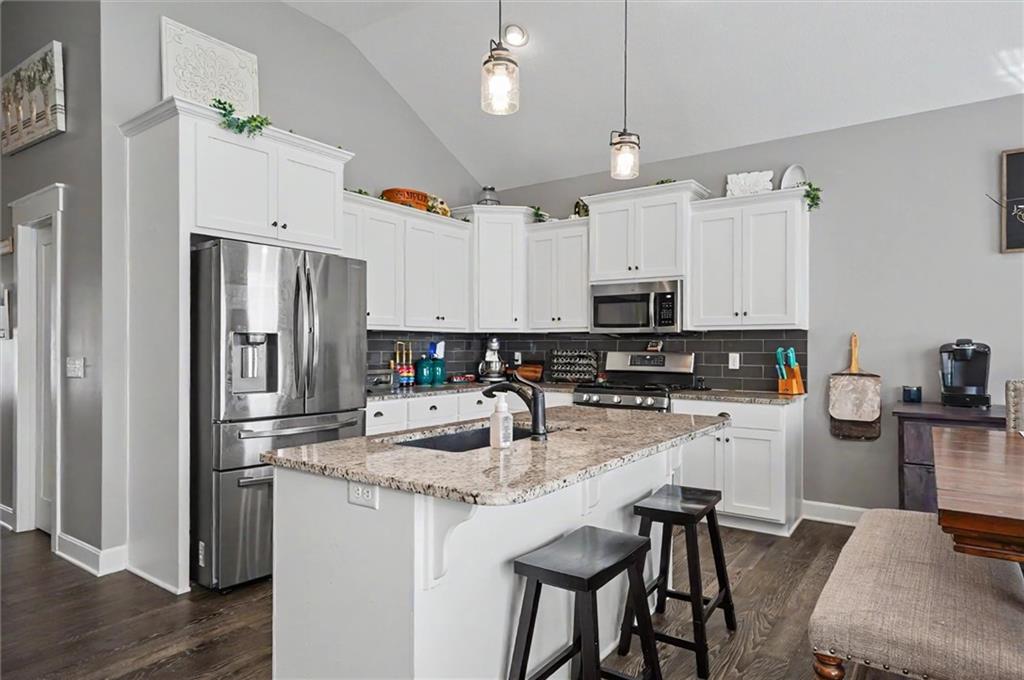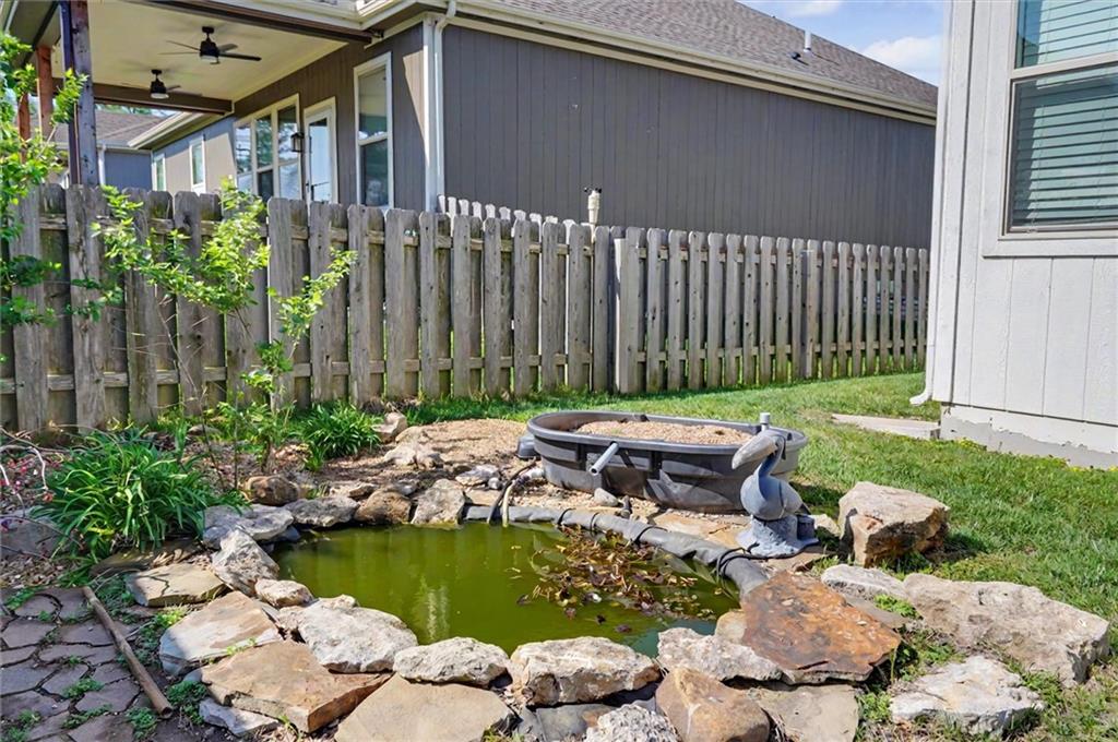 Welcome home to this beautifully maintained 4 bedroom, 3 bathroom ranch home offering the perfect blend of comfort, style, and convenience. An open concept space filled with natural light, showcasing stunning finishes and a seamless flow. The spacious kitchen opens to the main living area, creating a warm and inviting atmosphere. The primary suite offers a private retreat, while the additional bedroom on the main level provides flexibility. Downstairs, the finished basement expands your living space with a large open area, 2 additional bedrooms, 1 bath and unfinished storage space that lines the basement. Outside, enjoy your own backyard oasis complete with a charming koi pond, storage shed, and plenty of room to relax or entertain. The 3-car garage offers ample space for vehicles, tools, and storage. Conveniently located near K-10 and local amenities, this home combines peaceful living with easy access to shopping, dining, and commuting. A must-see!