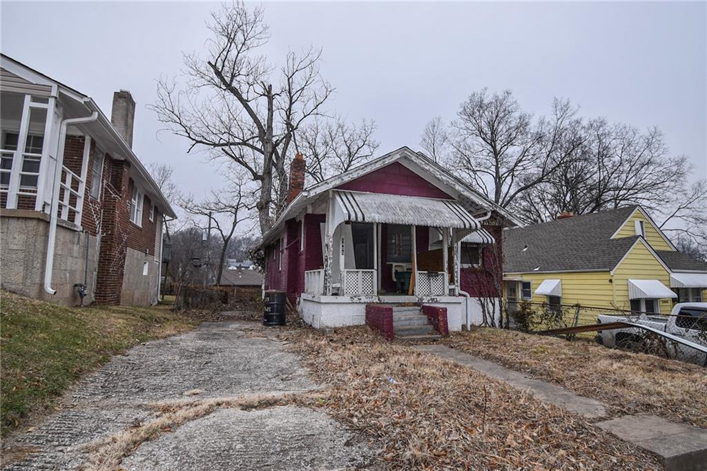 Bring your contractors to this spacious ranch in South Kansas City. Walk up the front steps onto the patio and enter into the large living room with a brick fireplace. To the right you'll find two bedrooms and the full bathroom as well as a linen closet. Further into the home is a kitchen with adjacent dining area. The third bedroom is to the right of the dining area in the back of the home. There is a small porch in the back of the home that is currently inaccessible. The large unfinished basement has lots of potential.