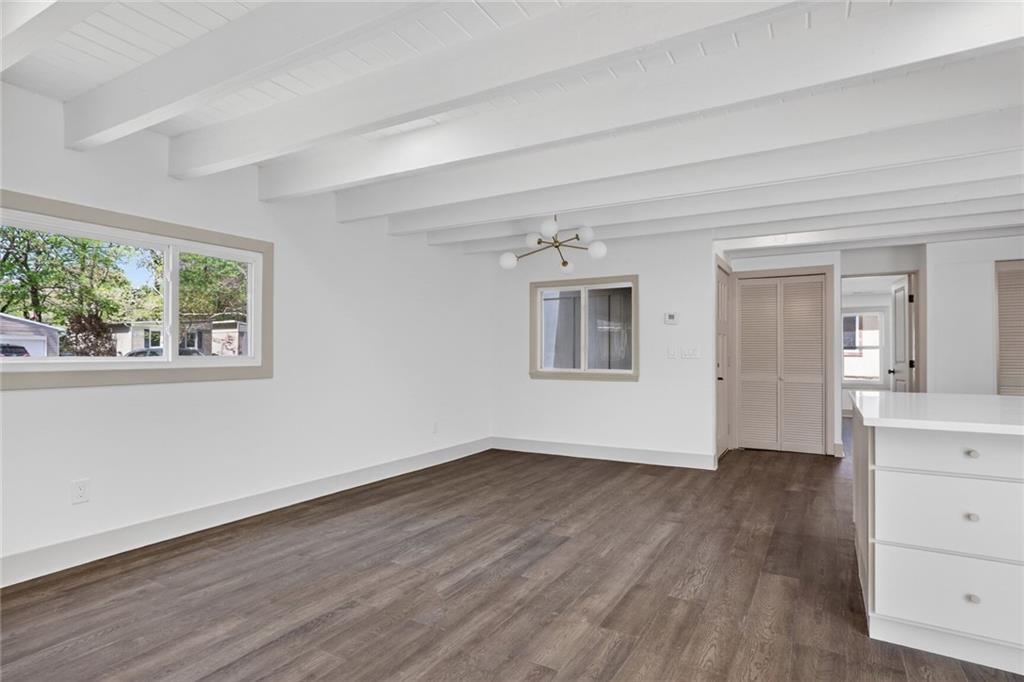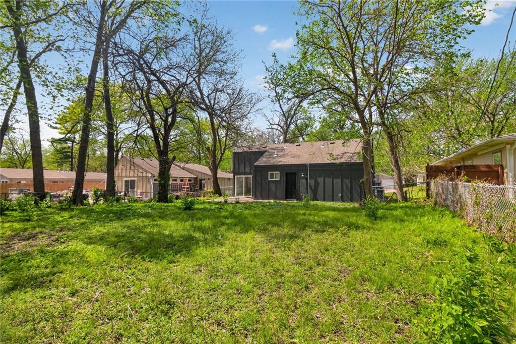 Welcome home to this beautifully completely remodeled 2-bedroom, 1-bath ranch offering convenient one-level living. This home has been taken down to the studs and rebuilt from the ground up — every single thing is brand new: new roof, new electrical, new plumbing, new studs, new siding, new insulation, new HVAC equipment, new granite countertops, and more. Step inside to an open-concept layout featuring luxury vinyl plank flooring and a bright, modern design throughout. The updated kitchen showcases quartz countertops, a large island with extended seating, and a functional layout ideal for everyday living and entertaining. The dining area flows seamlessly to a sliding glass door leading to a spacious patio, and a fully fenced backyard with mature trees—perfect for outdoor enjoyment. This low-maintenance home has been thoughtfully updated with contemporary finishes, fully permitted and inspected by the City of Mission, with all plans and inspections provided. It is move-in ready. Schedule your showing today
