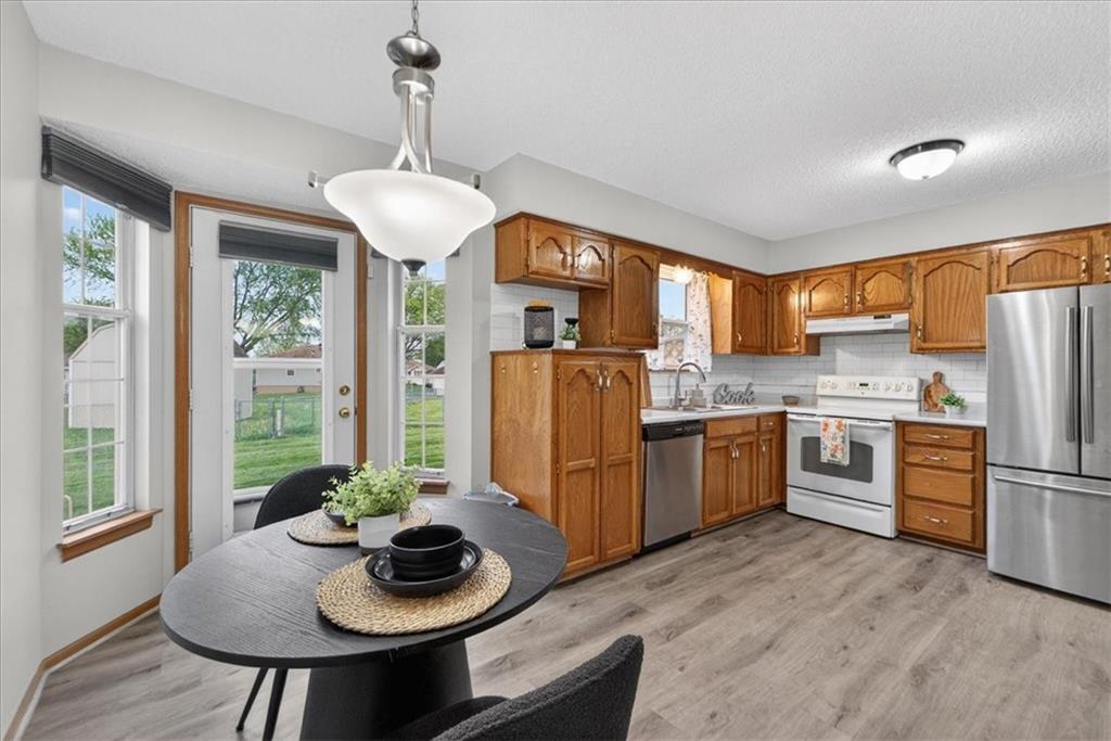 Welcome to 508 NE Knox St, Unit C -- a meticulously maintained, one-owner condo occupied since 1991 and never been smoked in or housed pets. Bright and move-in ready, this 2-bedroom, 2-bath home offers rare extras for the community, most notably a full unfinished basement providing abundant storage or future finished living space, plus attic access for additional storage. The home is all-electric, including a heat pump with central AC. Some upgrades include double-pane thermal-seal vinyl windows (upgraded 2000), and a single-car garage with storage closet and a garage door opener replaced in Fall 2024. The exterior was refreshed in March 2025 with front and back paint and a rebuilt/upgraded patio fence. Interior highlights include updated luxury vinyl plank flooring on the main level, entry, kitchen and bathroom, carpet about 1½ years old on the living area, stairs and upstairs landing, and upgraded lighting and a ceiling fan in the living room. The kitchen got new countertops and a backsplash in 2025, and features a pantry with pull-out drawers, insulated pleated shades on the dining/kitchen windows, and stainless steel refrigerator and dishwasher. The spacious master suite on the second floor includes a large closet and a convenient walkthrough from the master to the bathroom into the laundry/tub area and into the second bedroom, offering an efficient, flexible flow. Ideally located in Blue Springs with close proximity to shopping, dining, parks and major roadways, this well-cared-for unit combines practical upgrades and thoughtful ownership, an opportunity not commonly available.