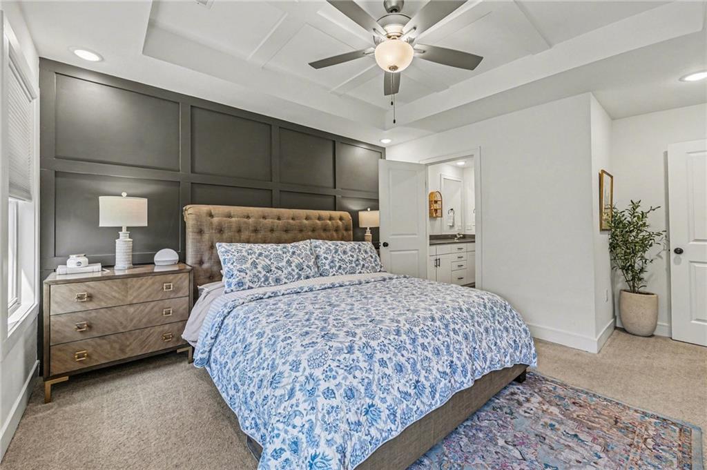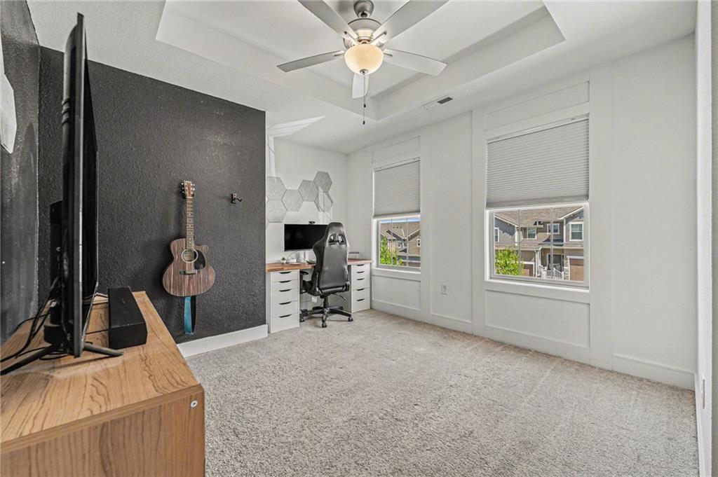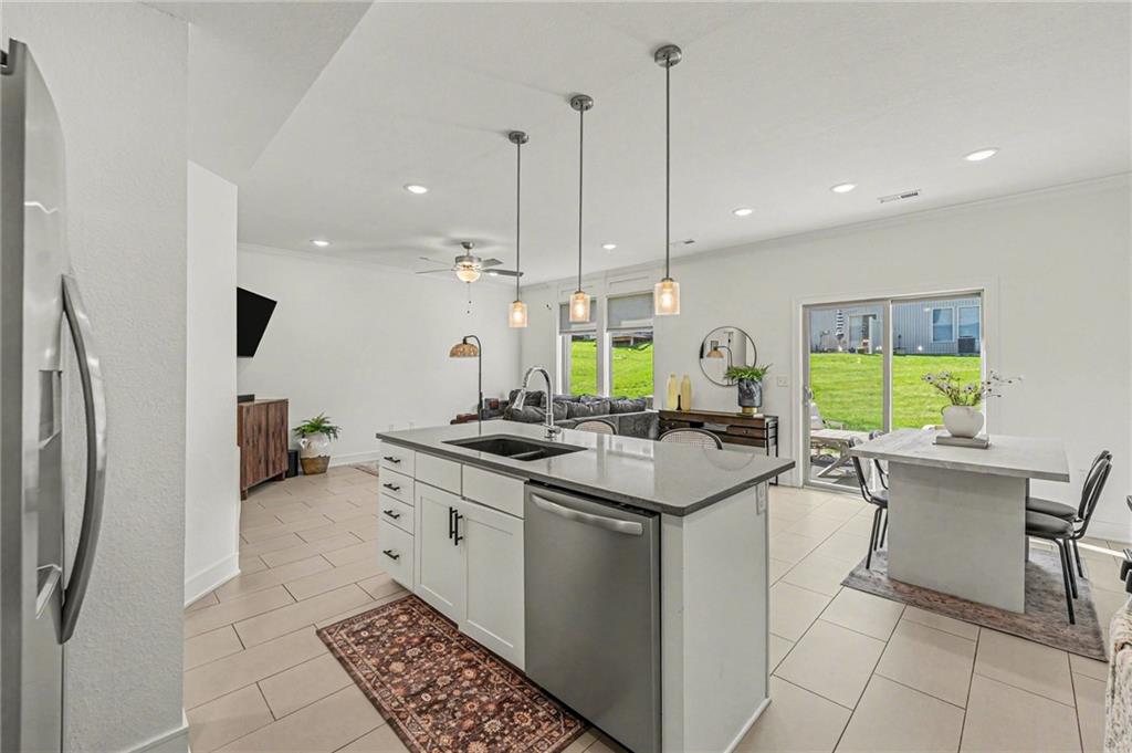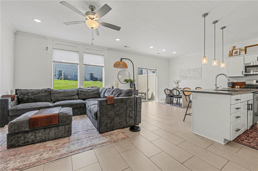 Low-maintenance living in the heart of Parkville. This meticulously kept home offers 3-bedroom and 2.5 bathrooms. Step inside to discover a bright and airy open floor plan, perfect for entertaining. Serene primary suite with custom geometric wall detailing, a large walk-in closet, and a private en-suite bath with dual vanities and elevated finishes and quartz countertops.The sleek kitchen features stainless steel appliances, tile floors, ample counter space, and a stylish island. The spacious living and dining area flows seamlessly to your back patio.