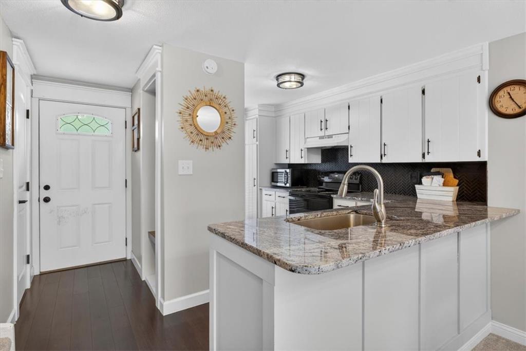 Updated Townhome in the wonderful Four Colonies Community with a rare GARAGE! Great amenities are included--and with a low HOA. Updates in the last 5 years include: Granite Countertops and New Microwave, Dishwasher and Oven in the Kitchen, Granite Vanity tops in the bathrooms, updated Cabinet Hardware, and Light Fixtures, New privacy fence in back yard, New Garage Door, New Garage Door opener, Reclaimed Wood fireplace mantel, decorative shiplap wood above fireplace, Entry hall Vestibule with wood seat, and a decorative shiplap wood back. Basement has a large finished Rec room and a large storage/laundry unfinished area. Cute patio area with flower beds. Move right in and enjoy the Tennis Courts and Swimming Pools for Summer!