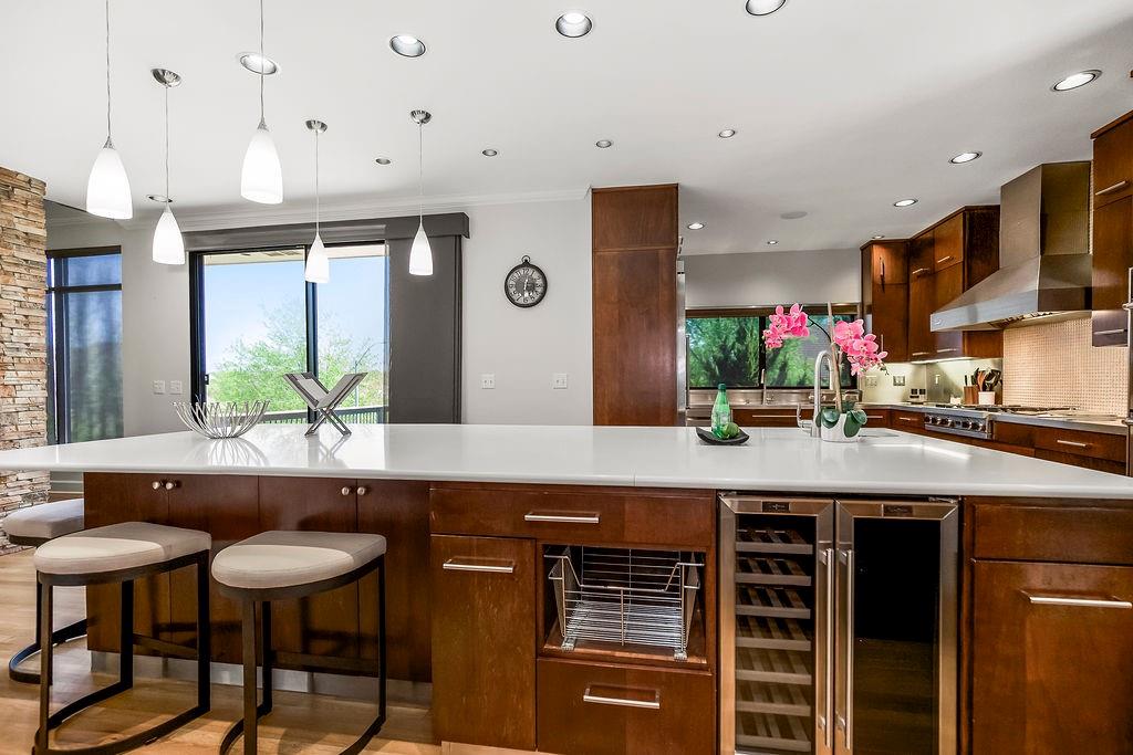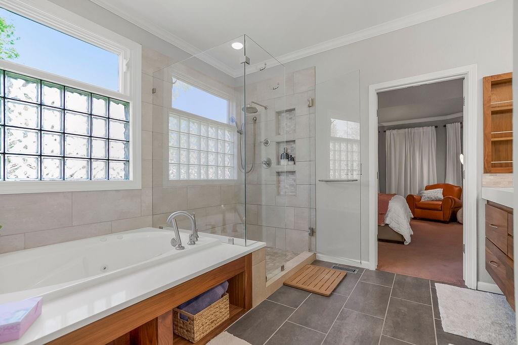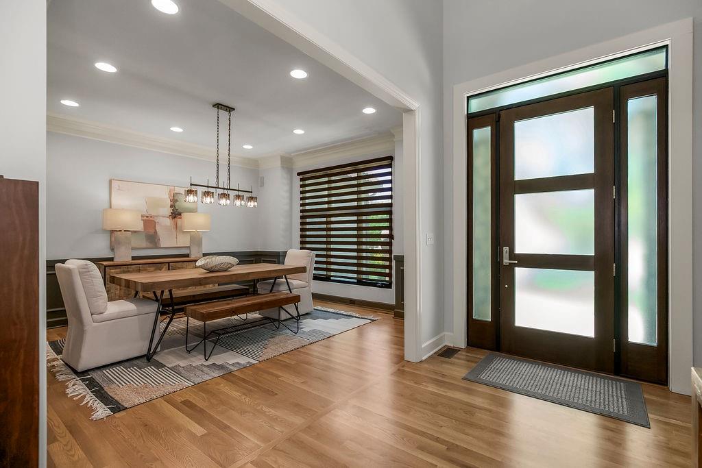 Welcome to this stunning and spacious 1.5-story home designed for both comfort and entertaining! The custom gourmet kitchen is a chef’s delight, boasting top-of-the-line Viking appliances, a gas range, and a generous island perfect for meal prep and casual gatherings. Step outside to your private retreat featuring an outdoor kitchen and a cozy fire pit—ideal for relaxing or entertaining year-round. Inside, the main level impresses with a formal dining room, a bright great room with expansive windows and a see-through fireplace, a private office, and a luxurious primary suite. Upstairs, you’ll find three spacious bedrooms and a versatile loft area—perfect for a playroom, reading nook, or extra workspace. The finished walkout lower level offers even more room to enjoy, including a family room, wet bar, rec area, and an exercise room. Nestled on a quiet cul-de-sac with a fenced yard and easy lake access, this home combines privacy, elegance, and convenience. A backyard gate leads directly to the sidewalk and dock, just steps away. This home truly has it all—style, space, and a perfect setting for everyday living or entertaining!