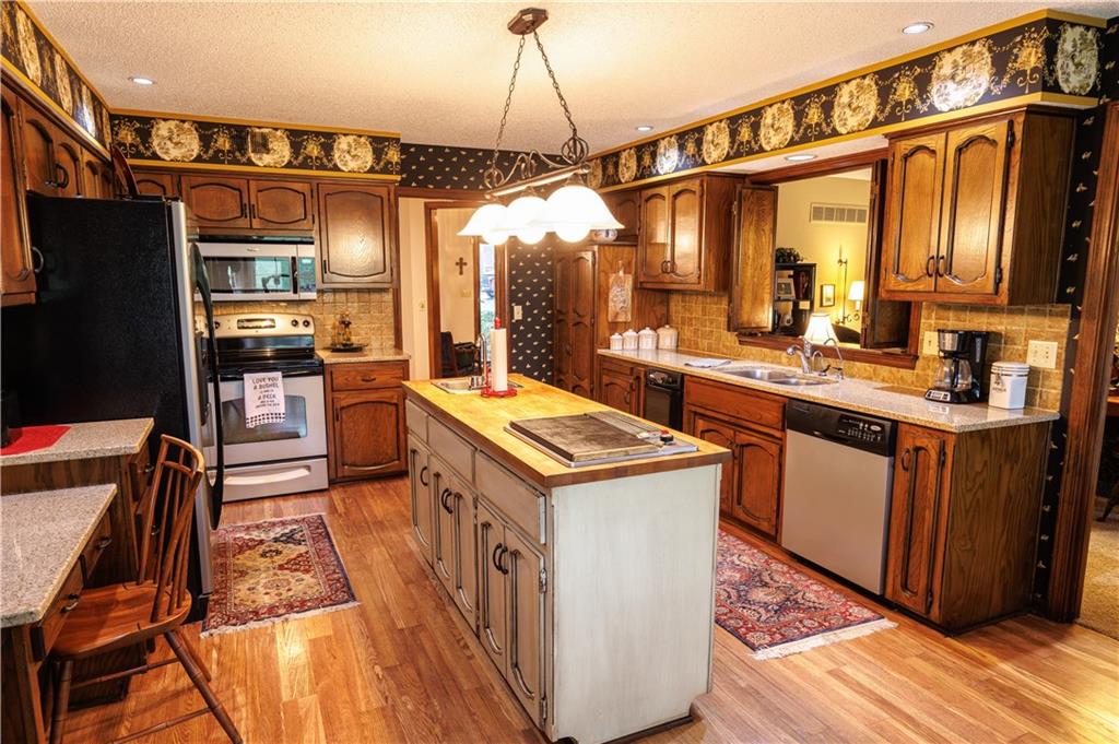 Welcome to 5611 NW Oak Ridge Court, gracefully situated on a quiet cul-de-sac in the sought after community of Platte Woods, no KC EARNINGS TAX This one-owner, custom-designed home offers thoughtfully curated living space—blending timeless craftsmanship with exceptional comfort and scale. Featuring 4 bedrooms and 3 full and 1/2 bathrooms, the home is anchored by a main-level primary suite, creating a private and convenient retreat. Expansive interiors showcase generously sized rooms, abundant natural light, and rich ash wood details, complemented by custom built-ins and spacious walk-in closets—all contributing to a warm yet refined aesthetic. Custom window treatments throughout enhance both style and privacy, adding a finished, high-end touch to every space. Designed for both everyday living and elevated entertaining, the home features a wet bar and full bar setup, with bar stools included, creating a seamless hosting experience. The finished lower level is an entertainer’s dream—complete with a pool table that stays with the home, offering a true turnkey recreation space. Comfort is maximized with zoned HVAC systems, ensuring efficient, customized climate control throughout. Car enthusiasts and hobbyists will appreciate the three oversized garages, offering ample room for vehicles, storage, or workspace. Following a recent hail storm, a new roof, screens, and exterior paint will be completed prior to closing, further enhancing the home’s value and curb appeal. Offering this one owner home in one of Platte Woods’ most sought-after locations, this property is thoughtfully positioned to deliver exceptional value for a custom property of this caliber. Opportunities like this—where quality materials, custom finishes, space, and location align—are increasingly rare at this price point.