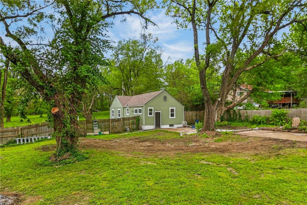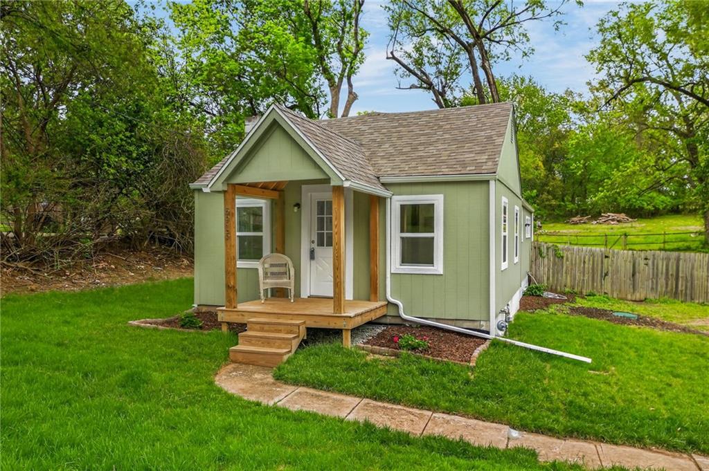 Charming bungalow on nearly an acre, in a residential area, close to shopping and restaurants! Kansas City address between Raytown and Lee's Summit. Discover the perfect balance of cozy indoor living and massive outdoor potential. This beautifully updated 2-bedroom, 1-bathroom home offers 840 sq. ft. of main-level living space, situated on a rare, nearly one-acre lot.
