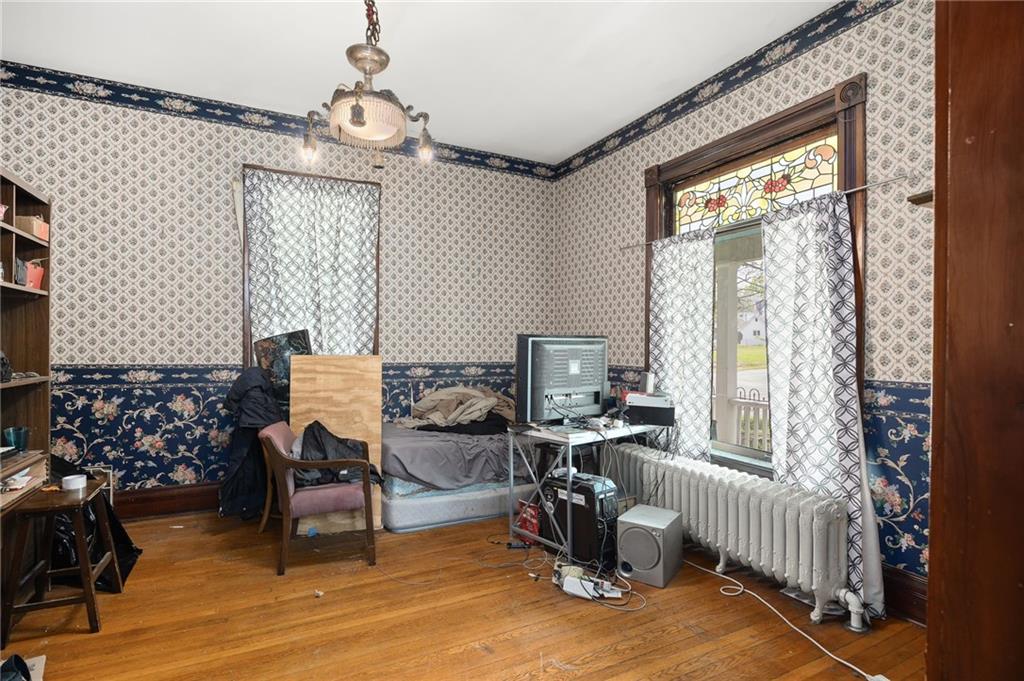 Step into timeless charm with this beautifully preserved Victorian-style historic home. The kitchen showcases a stunning decorative tin ceiling paired with custom cabinetry, blending character with functionality. Throughout the home, you’ll find original architectural details including ornate spandrels, multiple fireplaces, pocket doors, vintage light fixtures, rich woodwork, and an abundance of stained and leaded glass windows that fill the space with warmth and light. The home offers generously sized bedrooms, along with spacious front and back parlors and a formal dining room—perfect for both everyday living and entertaining. Outside, enjoy a welcoming wraparound porch that flows seamlessly into an enclosed porch, along with a second-floor veranda—ideal for relaxing and taking in the surroundings. A detached two-car garage completes this remarkable property.
