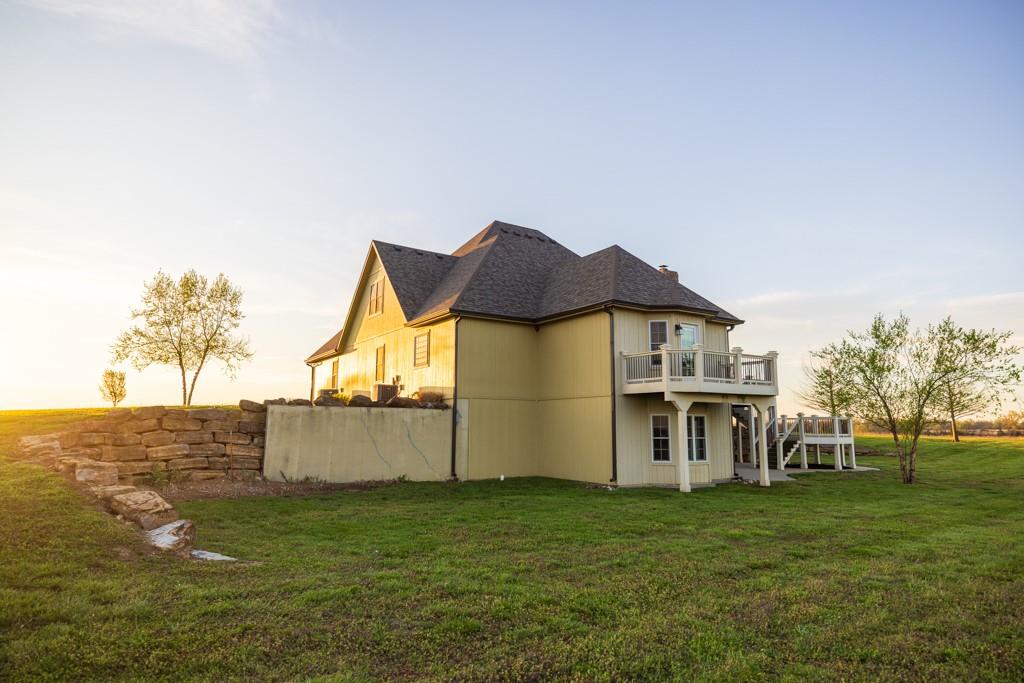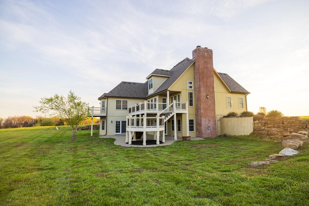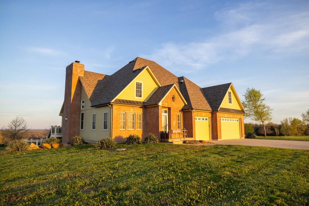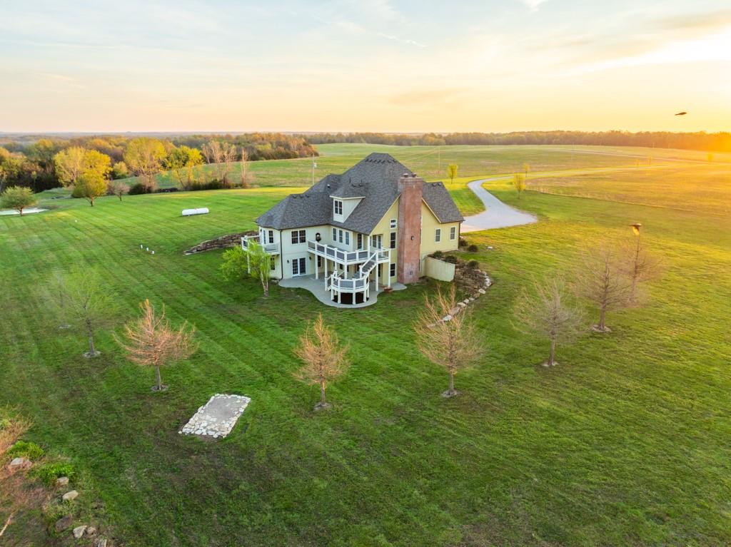 Escape the city life and live on 71.6 +/- acres that looks like a setting from a magazine. You will fall in love with the 1,000+ foot driveway access to the house that sits perfectly overlooking the property. Enjoy the sunrise and sunset views that literally go on for miles. The gently rolling land mainly consists of amazing pasture ground along with a 5 +/- acre patch of timber. It gets even better with a 2.5 +/- acre spring fed pond that is loaded with fish! The land offers it all and the real possibility of making it your very own country homestead. The 5 bedroom, 4.5 bathroom house was built in 2005 and offers plenty of space for the family and entertainment. It’s a must see! The main level features a living room with a fireplace, vaulted ceilings, formal dining room, oversized eat-in kitchen, and a massive master suite. The upstairs includes 4 spacious bedrooms, 2 bathrooms, and an additional large play or storage room. The full walkout basement offers plenty of storage space and is currently framed as a separate studio apartment style living quarters for guests or in-laws. Another awesome feature is the oversized 5 car garage offering plenty of room for vehicles, gear, or a workshop. Don’t forget about the incredible deck off the main level with amazing scenic views. Another bonus is the 30’x50’ outbuilding that will come in handy for storing farm equipment and other fun toys. This property checks all the boxes!