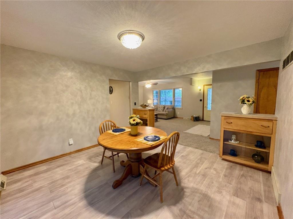 Welcome home! This beautifully maintained mid-century ranch is perfectly situated on a spacious corner lot in a desirable Harrisonville location close to schools, shopping, and parks. This move-in ready home offers a wonderful blend of classic charm and modern updates throughout. Recent improvements include fresh interior and exterior paint, updated yard drainage, and a roof less than three years old. Major mechanicals have been well maintained with a recently serviced HVAC system (including updated control module), a newer hot water heater, and a sump pump approximately three years old. Interior updates shine with new carpet in the living room, refinished hardwood floors in all bedrooms, new ceramic tile in the bathroom, and luxury vinyl plank flooring in the kitchen and dining areas. The kitchen also features a newer oven, making it both functional and inviting. Enjoy year-round comfort in the bright four-season room just off the kitchen—perfect for relaxing or entertaining. Additional upgrades include epoxy-coated floors in the basement, garage, and utility shed, along with a newly installed sidewalk and driveway built with durable, reinforced concrete for long-term value. The unfinished basement provides excellent opportunity for future expansion—ideal for a recreation room, home gym, or additional living space.