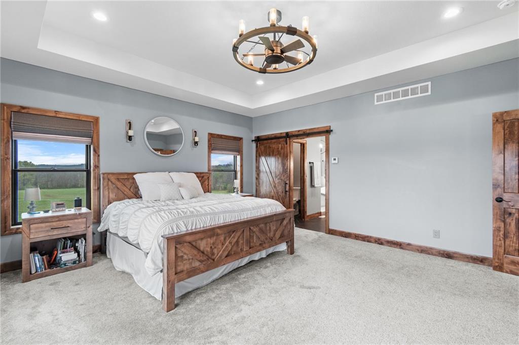 Luxury living meets premier hunting and income-producing land—this one-of-a-kind 189-acre estate offers an unmatched opportunity for the serious outdoorsman or anyone seeking a private rural retreat with the modern comforts this stunning home offers. Meticulously designed with 4,800 square feet of thoughtfully curated living space, where every detail reflects quality and intention. From the moment you step inside, soaring vaulted ceilings and an expansive great room create a striking first impression, seamlessly flowing into a custom chef’s kitchen featuring hand-built cabinetry, quartz countertops, and a spacious walk-in pantry. This home offers 5 bedrooms and 3.5 baths, including a timeless primary suite designed for comfort and relaxation. A fully finished walk-out basement with a wet bar provides the ideal space for entertaining guests or enjoying quiet evenings at home. Function meets convenience with an oversized 3-car attached garage, offering ample room for vehicles, storage, and weekend projects. A whole-house Generac generator ensures uninterrupted comfort and peace of mind, no matter the conditions. Step outside and experience what truly sets this property apart. The 189 acres offer a diverse landscape designed for both recreation and return. With abundant wildlife, this farm is a prime setup for deer and turkey hunting, giving you the chance to build your own trophy legacy right out your back door. A mix of tillable acreage and CRP ground provides consistent income potential while enhancing habitat and land value. Experience the serenity of country living without compromising luxury—this is a property you have to see to believe.