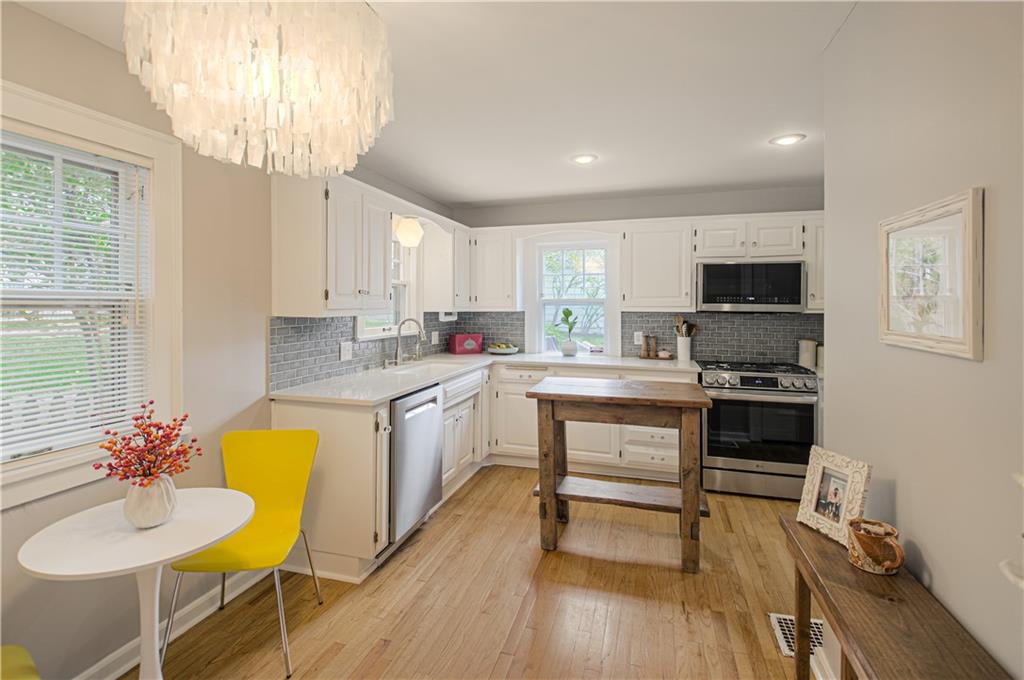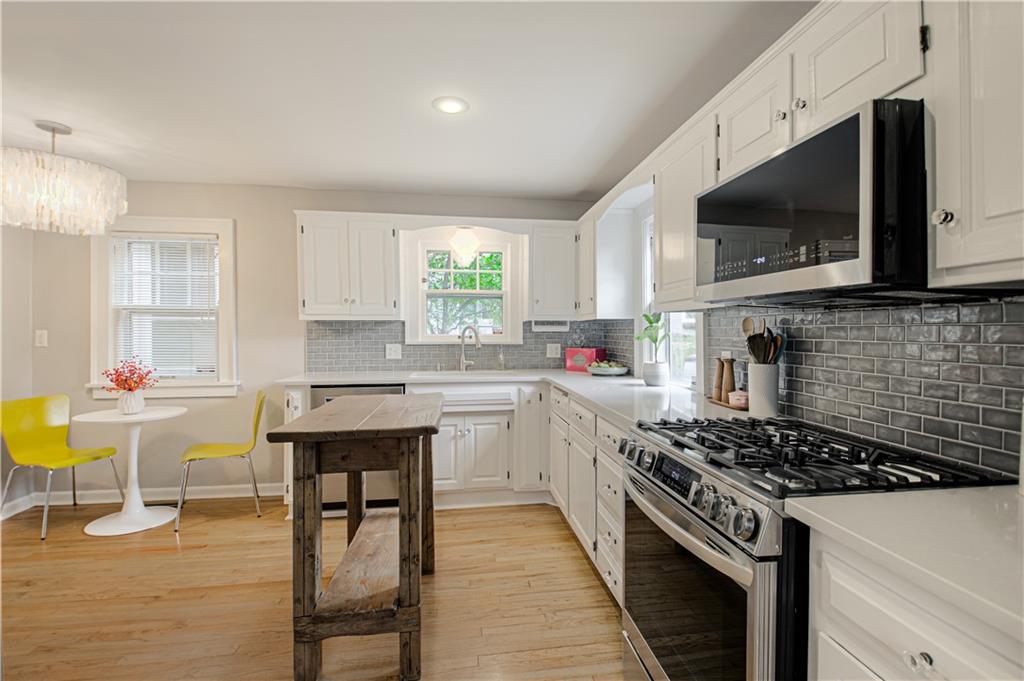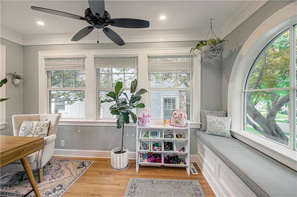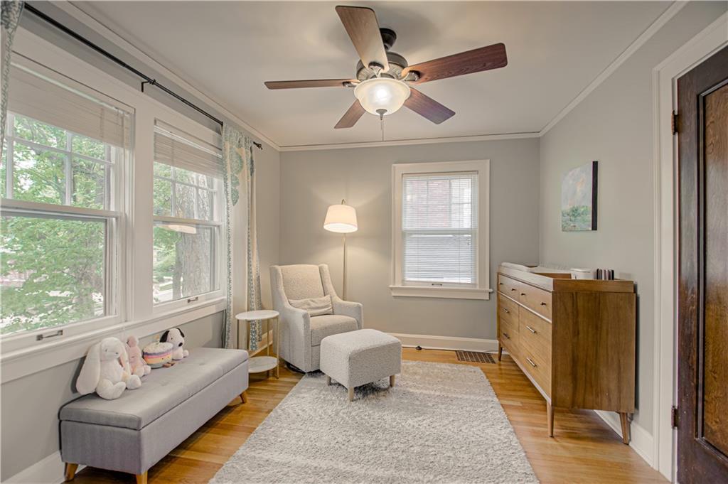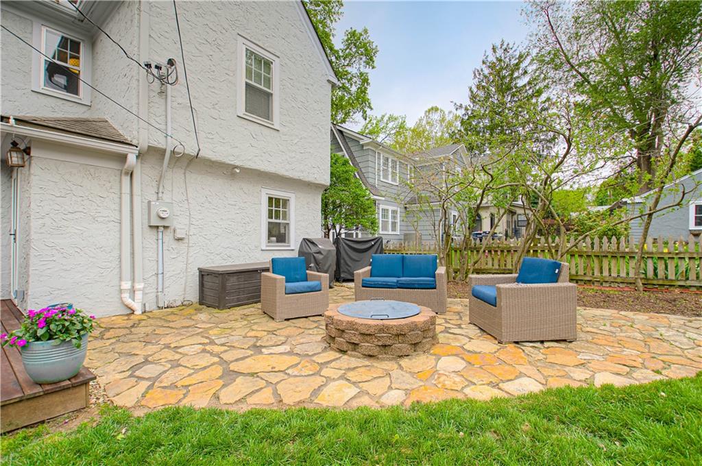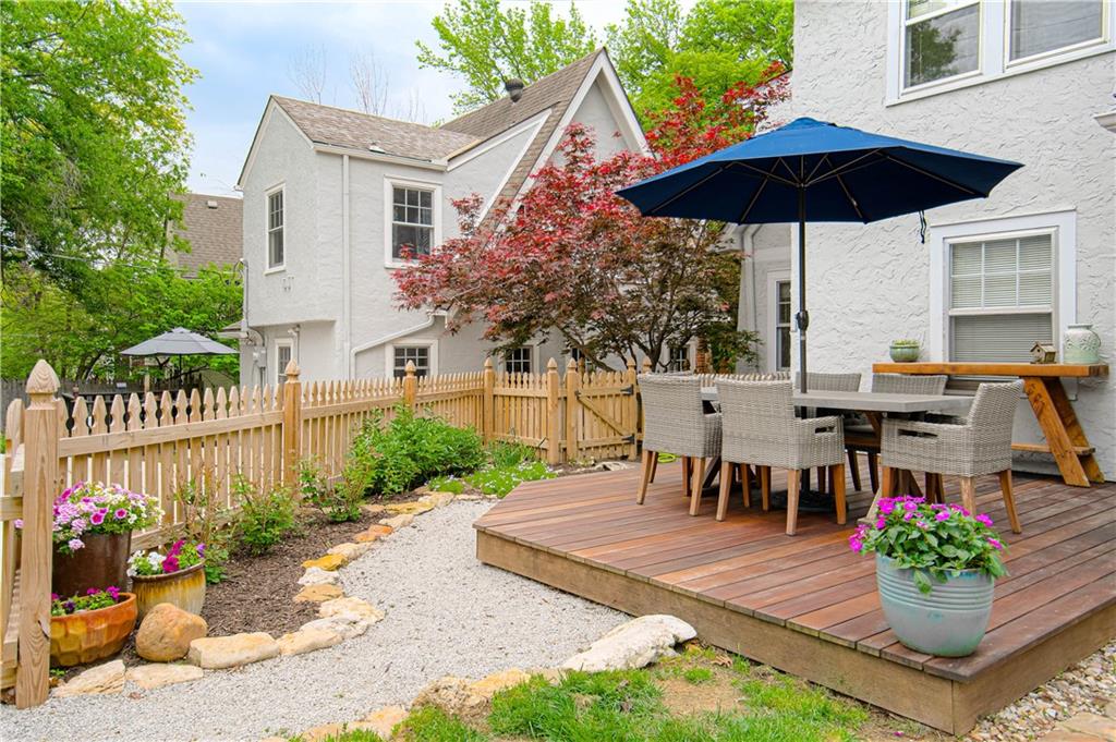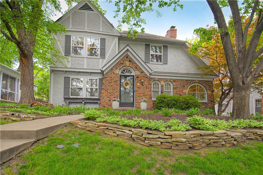 Step into this classic tudor in the heart of Brookside and fall in love! Located on a picturesque tree-lined street, this home exudes charm inside and out. Passing through the well manicured front yard with hostas, flowers and gorgeous trees is just the beginning. On the main level you'll find hardwood floors throughout, an inviting and cozy living room with original fireplace and newly finished sunroom/den, formal dining room, half bath and renovated kitchen with S/S appliances, painted cabinets, and quartz countertops. Upstairs leads to 3 bedrooms and 2 full bathrooms with hardwoods throughout. Large primary bedroom with gorgeous & sophisticated en-suite bathroom. Additional bedrooms are super cute and the perfect size for kids or guests. Convenient laundry chute from 2nd level to basement. If you want a gorgeous backyard, you'll find it here! IPE deck, flagstone patio, and lovely landscaping round out this outdoor space perfect for relaxation or entertaining. Sprinkler system installed 2021. New 2 car garage wired for EV's and has accessible attic space, driveway, and retaining wall added in 2024. Newer 200 amp electrical panel. You'll love the walkability of this location with all that Brookside and Waldo have to offer!