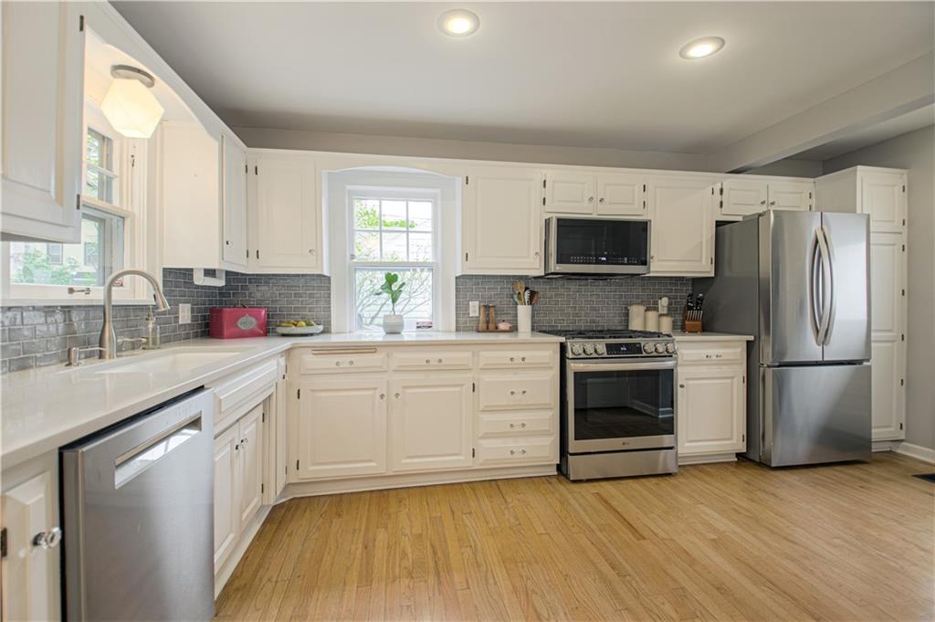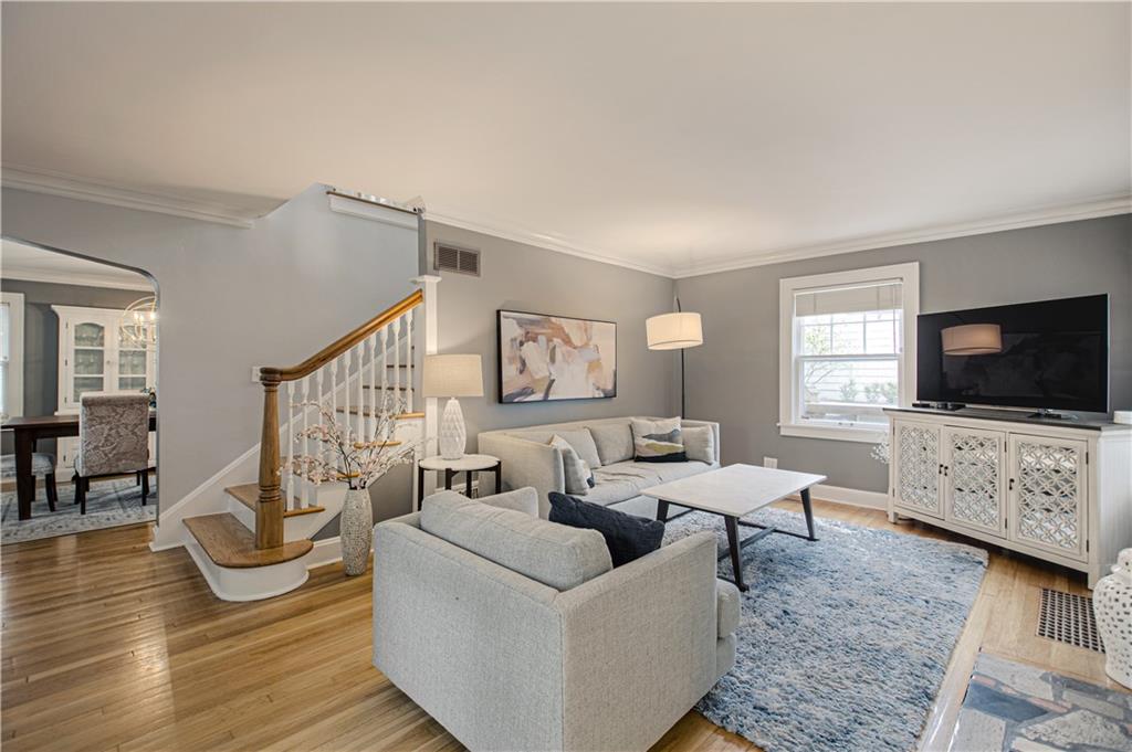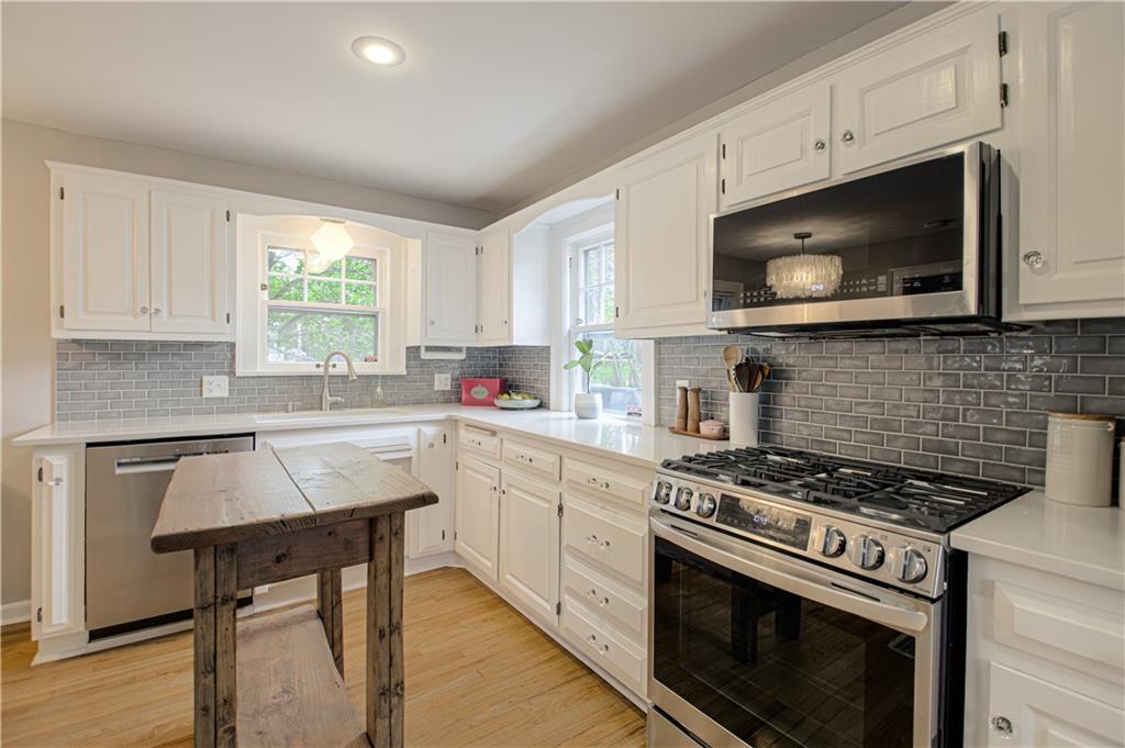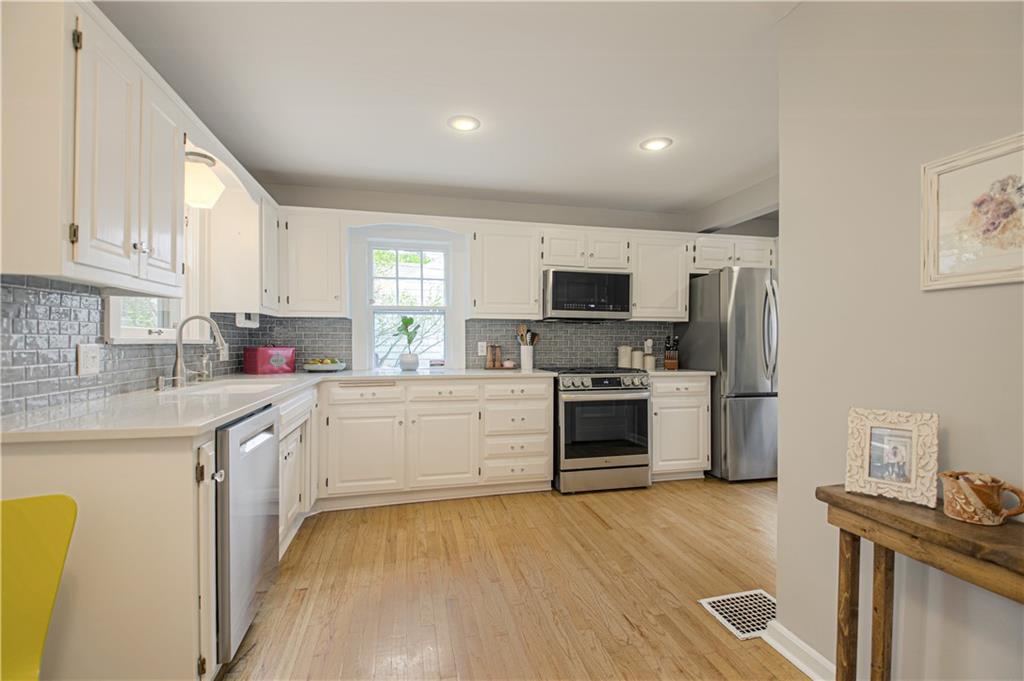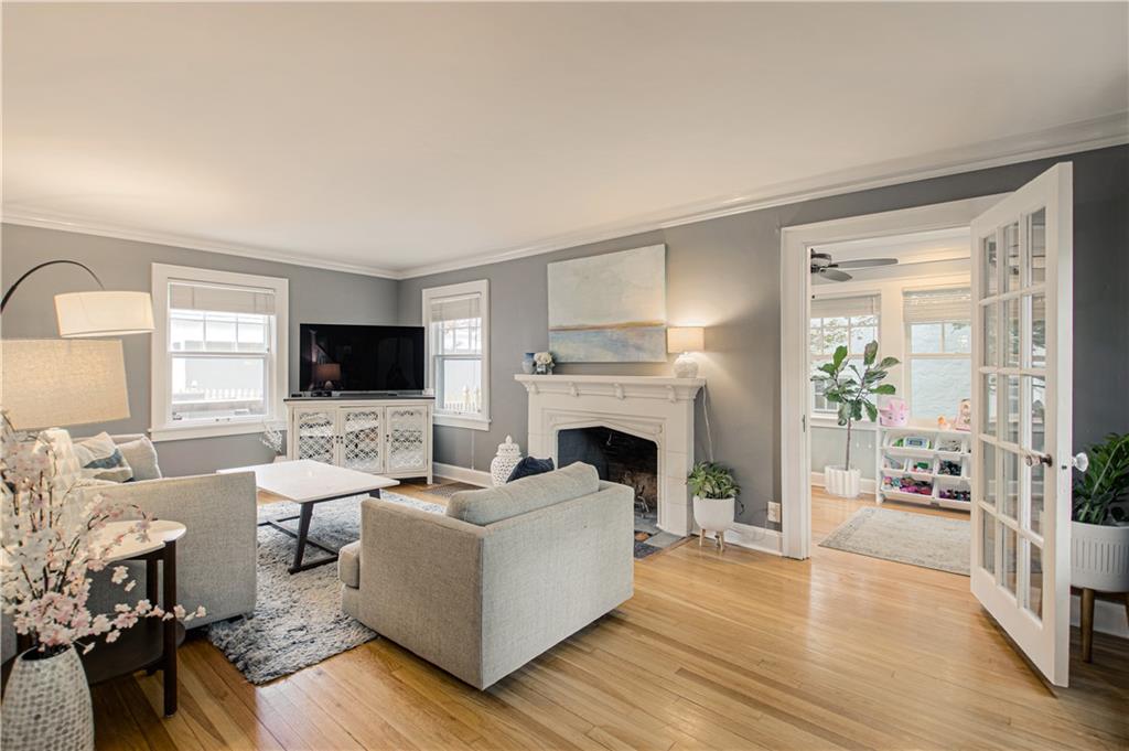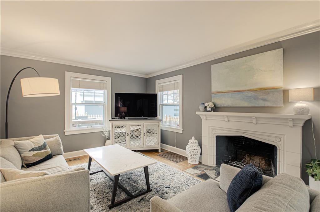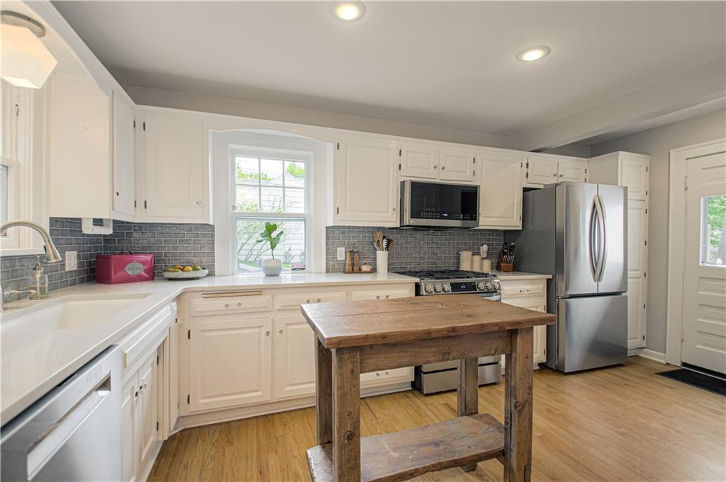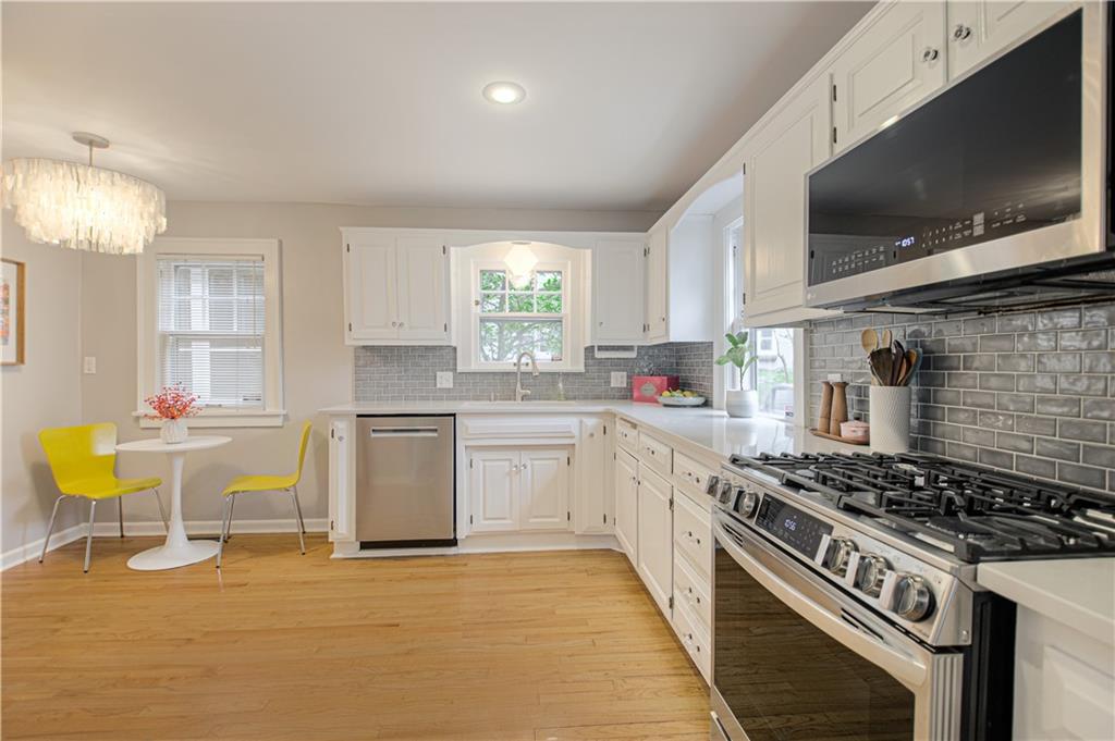 Step into this classic tudor in the heart of Brookside and fall in love! Located on a picturesque tree-lined street, this home exudes charm inside and out. Passing through the well manicured front yard with hostas, flowers and gorgeous trees is just the beginning. On the main level you'll find hardwood floors throughout, an inviting and cozy living room with original fireplace and newly finished sunroom/den, formal dining room, half bath and renovated kitchen with S/S appliances, painted cabinets, and quartz countertops. Upstairs leads to 3 bedrooms and 2 full bathrooms with hardwoods throughout. Large primary bedroom with gorgeous & sophisticated en-suite bathroom. Additional bedrooms are super cute and the perfect size for kids or guests. Convenient laundry chute from 2nd level to basement. If you want a gorgeous backyard, you'll find it here! IPE deck, flagstone patio, and lovely landscaping round out this outdoor space perfect for relaxation or entertaining. Sprinkler system installed 2021. New 2 car garage wired for EV's and has accessible attic space, driveway, and retaining wall added in 2024. Newer 200 amp electrical panel. You'll love the walkability of this location with all that Brookside and Waldo have to offer!