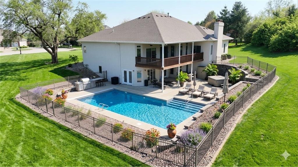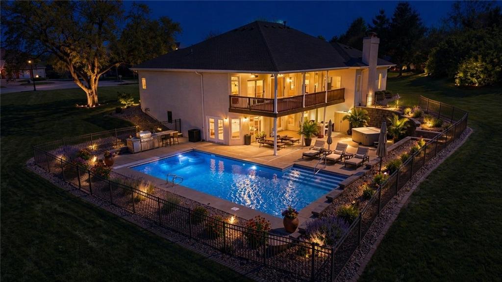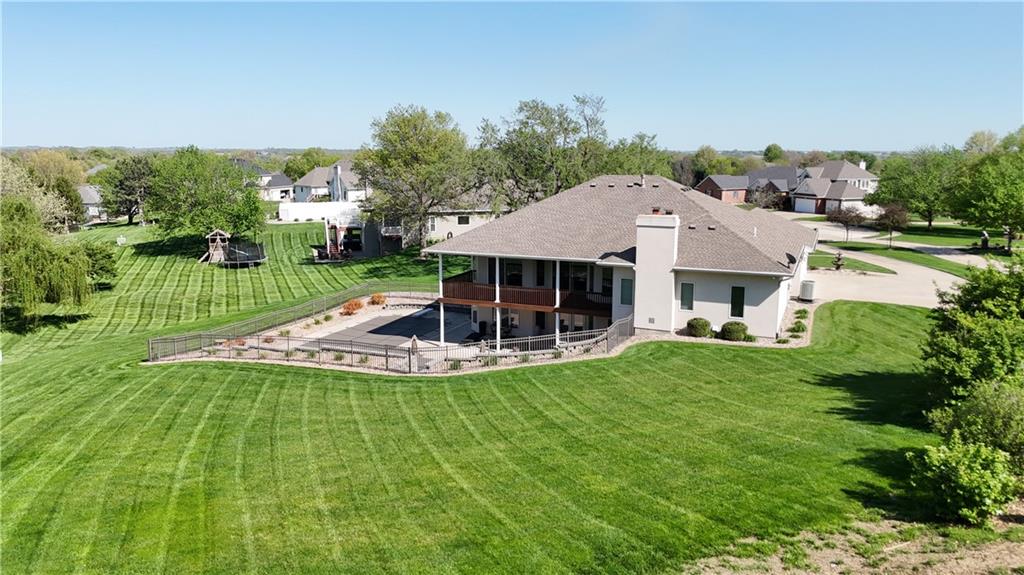 Highly desirable Lake at Twelve Oaks. Offering nearly 4,200 +/- square feet of finished living space, this reverse ranch is tucked at the end of a quiet cul-de-sac on a private .95-acre lot. Designed for both everyday living and entertaining, the main level features a bright living room, a comfortable family room with fireplace, and versatile dining options including a formal dining area, breakfast nook, and a granite wraparound bar with seating for six. A convenient laundry room adds efficiency, while three sets of sliding doors open to an expansive 450 sq ft covered deck for seamless indoor-outdoor living. The walkout lower level is ideal for gatherings or multigenerational living, offering a large recreation area with a second fireplace, a full second kitchen, and a spacious bedroom with nearby bath. Outdoor living continues with direct access to a covered patio, expansive bar area, hot tub, and a large L-shaped in-ground pool—creating a private retreat for entertaining or relaxing. Located in Lake at Twelve Oaks, residents enjoy lake access, scenic walking trails, and a strong sense of community with annual events such as a 4th of July fireworks extravaganza. Conveniently situated just minutes from Altec, Missouri Western State University, Herzog, and Mosaic Hospital. Nearby schools include Oak Grove Elementary and St. Joseph Christian School, both just minutes away.