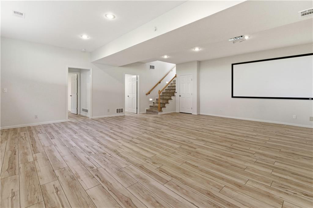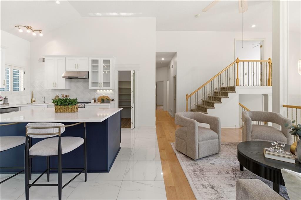 Chic, Fun, and Fully Updated! Ideally situated at the end of a quiet cul-de-sac, this unique custom-built home offers over 3,200 sq. ft. of finished living space. The interior is defined by a dramatic open floor plan featuring soaring 13-foot ceilings and high-quality finishes like Anderson windows and silent floor construction & plantation shutters. The heart of the home is a dazzling, remodeled kitchen complete with an expansive center island, new cabinetry, stylish backsplash, modern lighting, and premium appliances. Retreat to the totally private primary suite, which occupies its own dedicated level. This sanctuary features double-door entry, vaulted ceilings, a massive walk-in closet, and a spa-like bath with a jetted tub, sit-down vanity, and a custom shower with seating. The versatile layout includes two additional bedrooms on the main level and a lower-level bedroom with a bonus room, perfect for guests or a home office. Entertainment options abound in the huge family/media room, which comes ready for movie night with a projection screen TV. Behind the scenes, enjoy peace of mind with a brand-new roof and a high-end Trane furnace with zoned controls and a Honeywell humidifier. Step outside to a fully fenced lot, perfect for play or relaxation, with the basketball goal included! This move-in-ready gem combines architectural character with top-tier mechanicals in a location that can't be beat. Located in award winning Blue Vally Schools and Close to Shops at Prairie Fire, Blue Hawk and Corbin Park and easy highway access. Come check this beautiful residence out. So much space for the $$$
