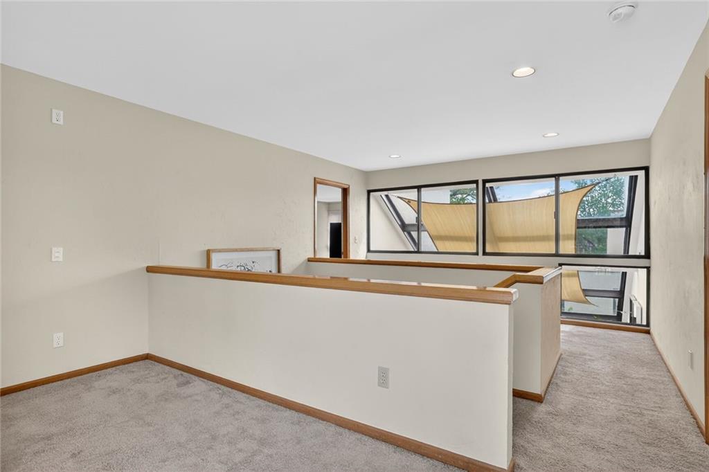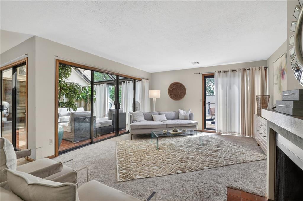 Experience sophisticated urban living with architectural distinction and serene privacy in one of Kansas City’s most sought-after communities- The stunning Atrium on the Plaza, Inspired by Moshe Safdie Architecture. Nestled in an exclusive, terraced, gated community just east of the Plaza — between the Nelson and Kemper Museums — this remarkable residence draws inspiration from renowned architect Moshe Safdie, the visionary behind the KC Kauffman Center. The open-concept layout is thoughtfully centered around a luminous natural light atrium, designed to enhance the living space while creating passive solar warmth through its expansive south-facing windows. The formal Living Room invites relaxation and entertaining with its inviting fireplace and wet bar, seamlessly opening to both the atrium and the grand Dining Room — perfect for memorable gatherings. The large, recently updated kitchen boasts exceptional counter space and abundant storage, catering to culinary enthusiasts. From here, step out onto the expansive deck, your private oasis surrounded by mature trees, offering serene privacy and enchanting Plaza light glowing through the treetops — ideal for entertaining or unwinding in nature’s embrace. Retreat to the exceptionally spacious Primary Bedroom Suite, complete with a comfortable sitting area and room for a king-sized bed, alongside an updated, luxurious bath. The generous second bedroom en suite offers lovely western views and ample space. Two secured, covered carport spaces are conveniently located nearby. Enjoy easy access to the community pool just outside the unit front door. Near streetcar, museums, and all the premier amenities the Country Club neighborhood has to offer!