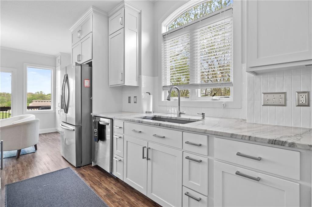Completely updated and truly move-in ready, this home offers the best of lake living—without the hassle. The Villa HOA takes care of lawn care, so you can spend more time enjoying everything the lake lifestyle has to offer. Natural light fills the home through expansive north-facing windows, perfectly framing stunning lake views. The main level features a spacious primary suite, a second bedroom with its own en suite bath—ideal for guests or in-laws—and convenient main floor laundry. The fully renovated kitchen is designed to impress, showcasing custom cabinetry with loads of storage, upgraded stainless steel appliances, a gas cooktop, quartzite countertops, and versatile space for casual dining or entertaining. The walkout lower level is built for hosting, complete with a full wet bar, refrigerator, and a sink with a glass rinser. There’s ample room for recreation—pool and ping pong tables are included—along with a comfortable space to relax and watch the game, all while enjoying scenic lake views from the covered deck. Evenings are best spent outdoors around the fire pit with s’mores, or casting a fishing line right from your backyard. Beyond the home, the community of Lake Winnebago offers exceptional amenities, including access to the yacht club, seasonal events and entertainment, indoor and outdoor gathering spaces, equestrian facilities, parks, tennis and pickleball courts, and scenic walking trails. A new resort-style pool with competition lanes is set to be completed in 2026. Villa residents also enjoy exclusive perks such as private docks, complimentary use of villa pontoons, and full lawn and sprinkler system maintenance. Owner agent. All furniture available to stay and negotiable.