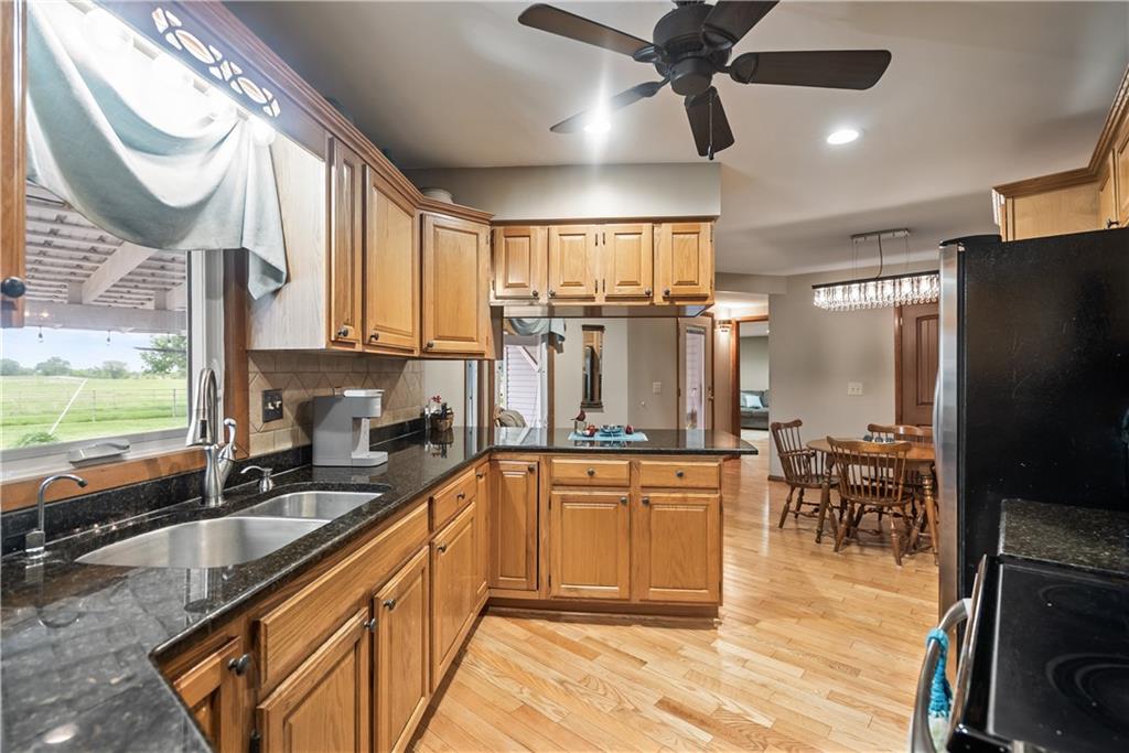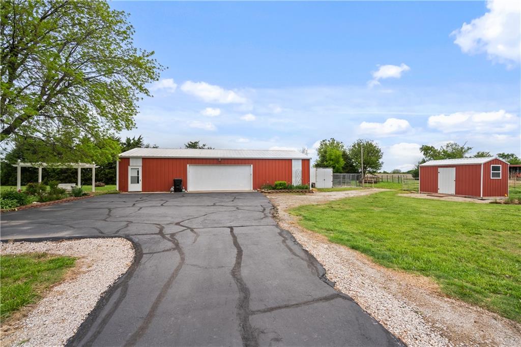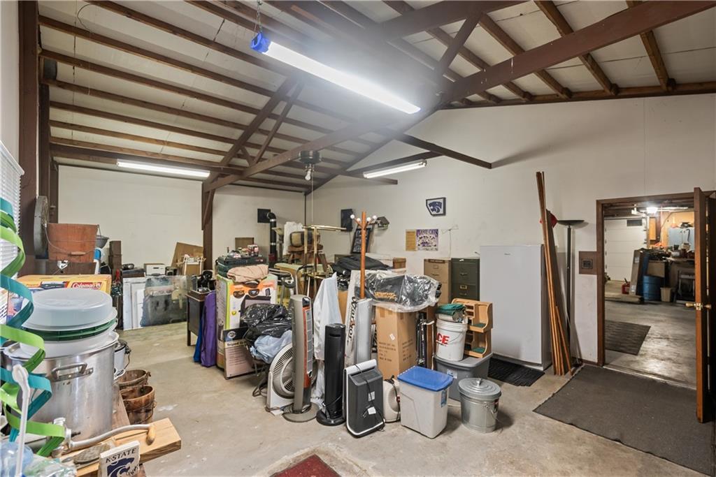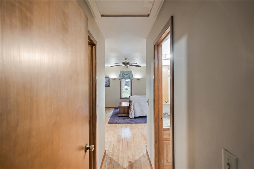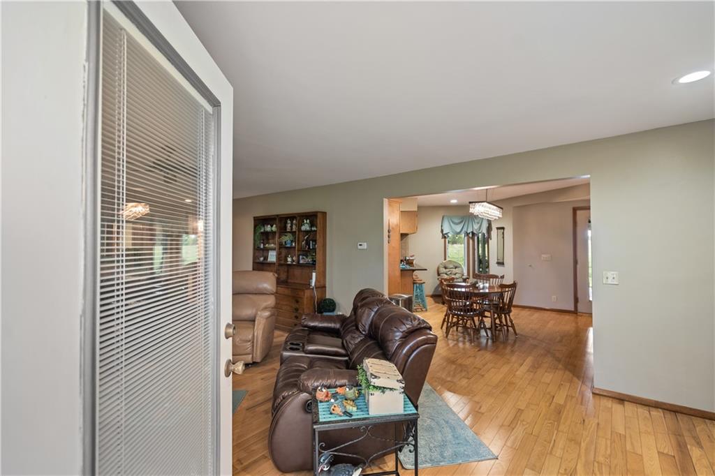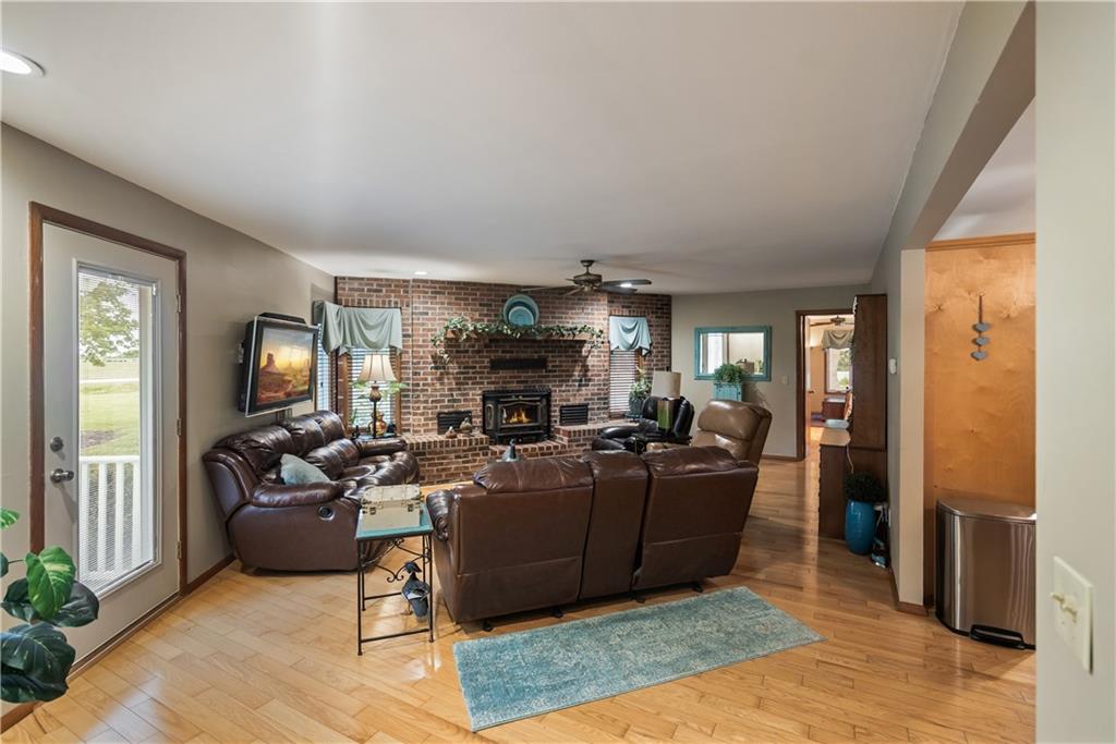 If you’ve been dreaming of a little space to spread out without giving up comfort, this one feels like home the minute you pull in. Set on 9.13 acres, this 3 bedroom, 2 bath ranch offers 1,793 square feet of easy, single-level living with room to breathe inside and out. Step through the door and you’re welcomed by warm hardwood floors that run throughout the home, creating a cozy, connected feel. The living area centers around a wood-burning fireplace, perfect for slow evenings and gathering with family or friends. The kitchen brings a touch of modern style with granite countertops, and all appliances stay, making the move-in process simple. Both bathrooms have been updated with LVP flooring for durability and style, while central HVAC keeps things comfortable year-round. Updated windows and insulated siding help create a quieter, more efficient space, even with the convenience of nearby highway access. Outside is where this property really starts to tell its story. Whether you're working, tinkering, or just need extra storage, the detached 2 car garage/shop is ready to go with two overhead doors and its own wood-burning stoves. There’s also an additional outbuilding with an overhead door and lean-to, plus a small shed for all the extras. Dog pens are already in place and will stay, making it easy for your four-legged companions to settle in too. You’ll find yourself drawn to the outdoor spaces, from the covered east-facing patio that’s perfect for morning coffee to the pergola patio on the south side, ideal for winding down at the end of the day. With a roof that’s only 5 years old and low-maintenance vinyl siding, the big items are already taken care of. This is the kind of place where you can slow down a bit, enjoy the land, and make it your own, whether that means gardening, hobbies, or simply enjoying the quiet of country living.