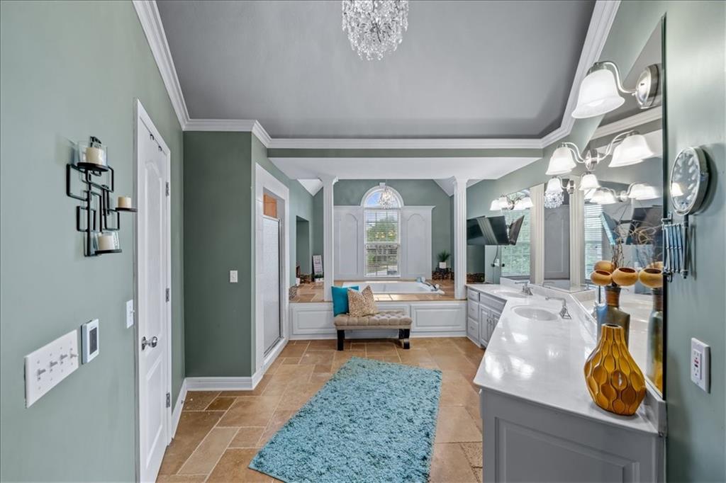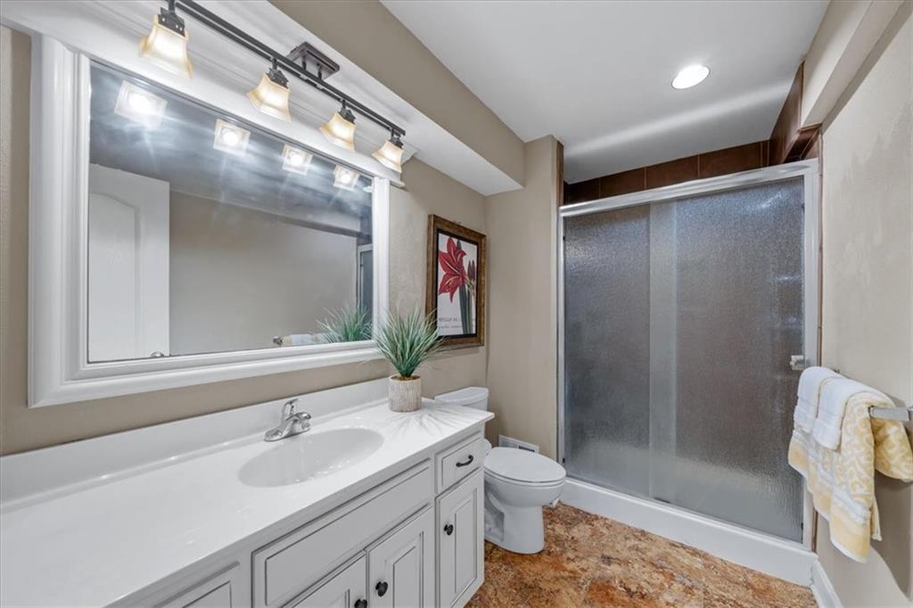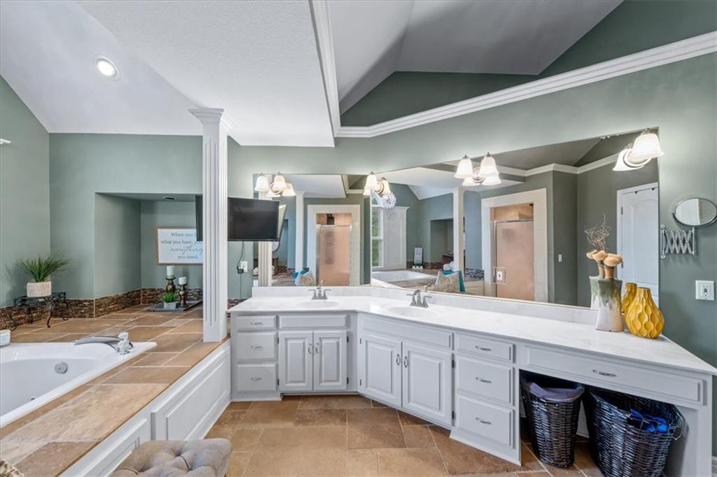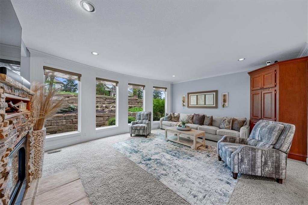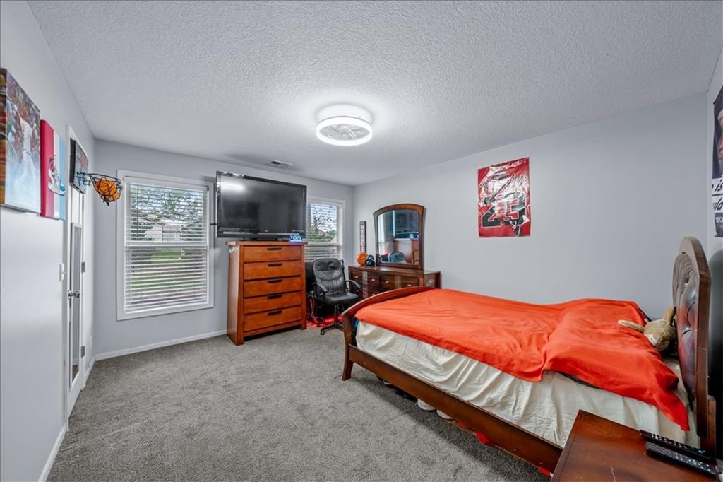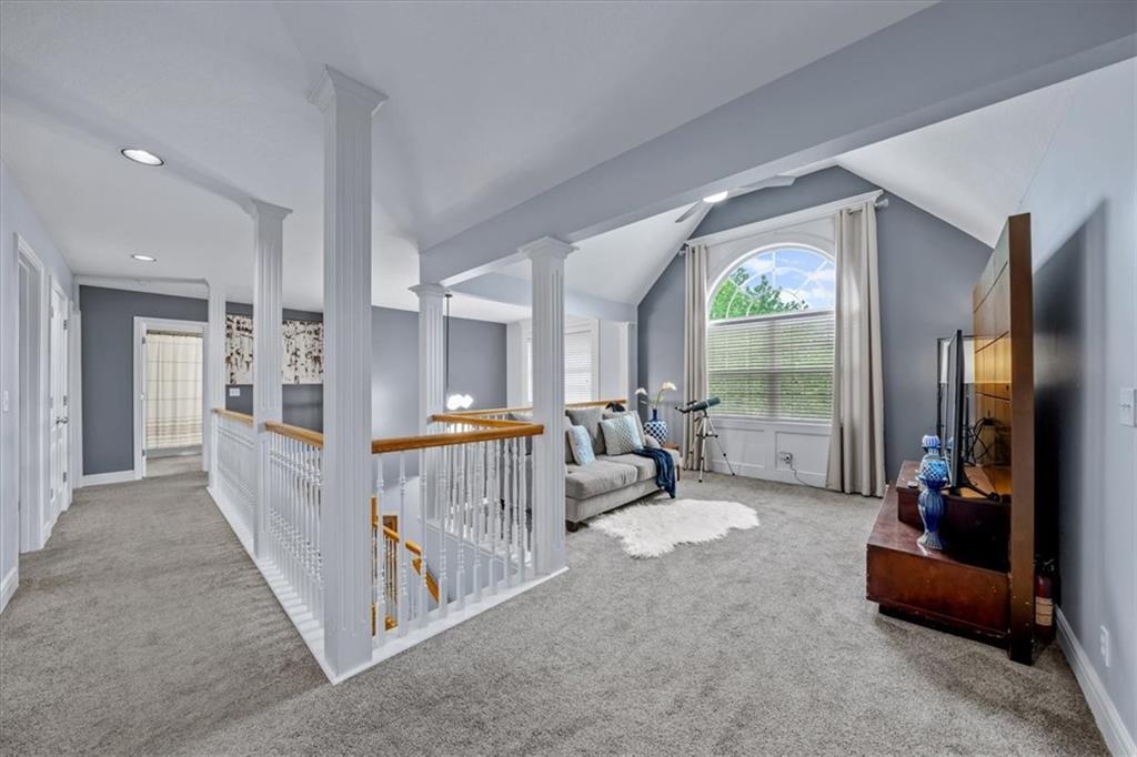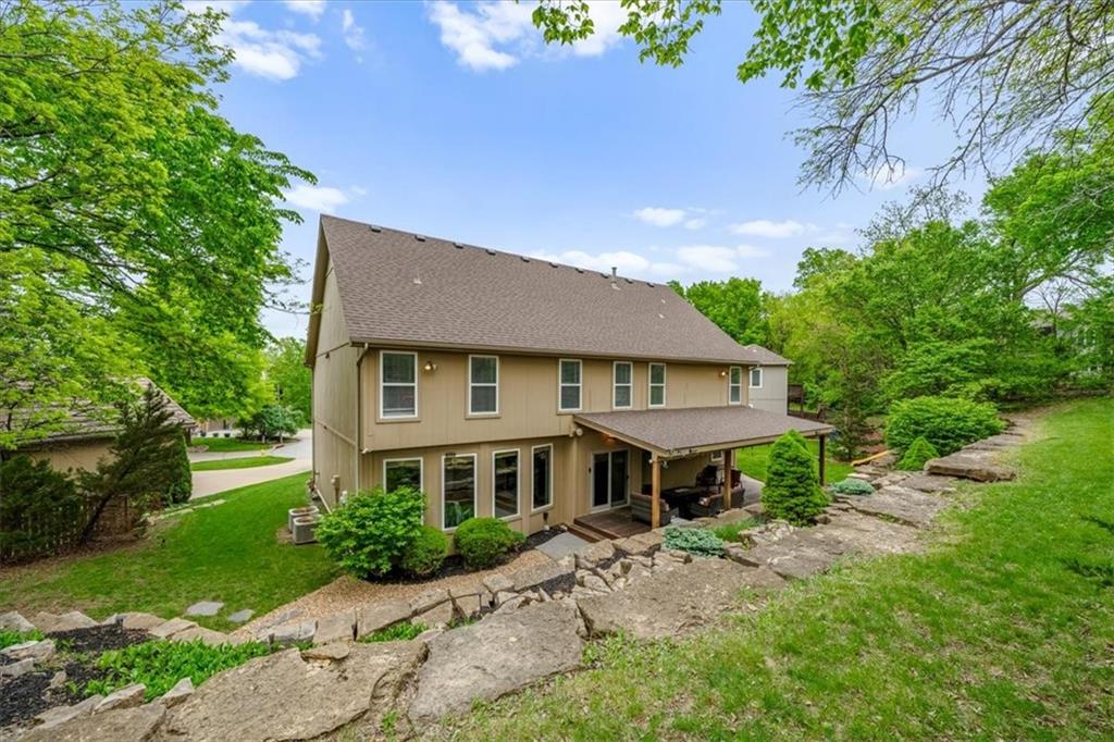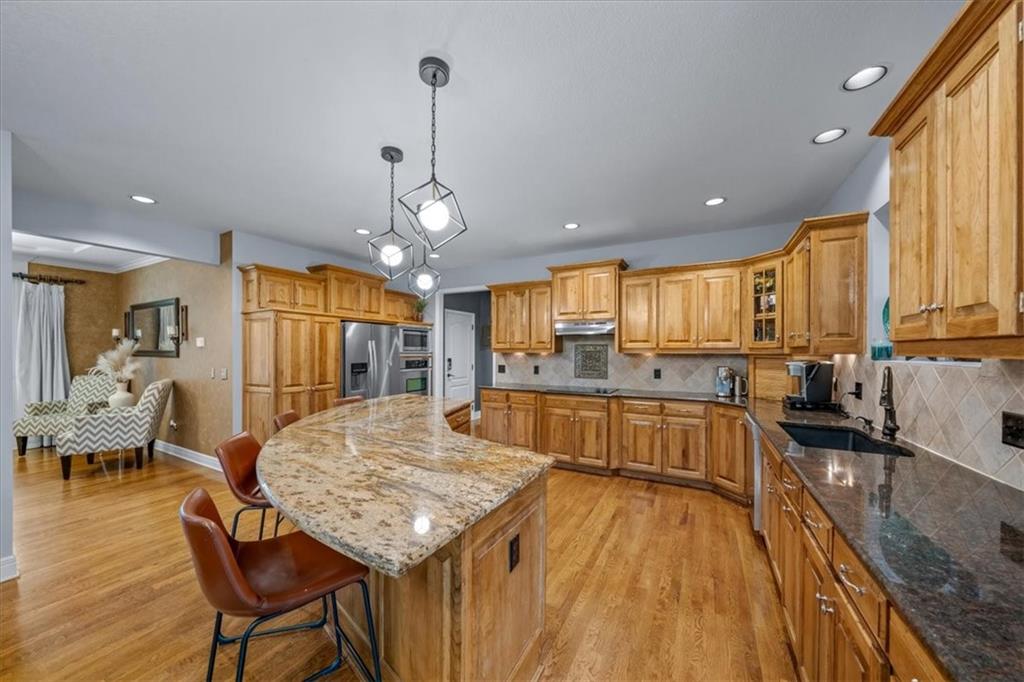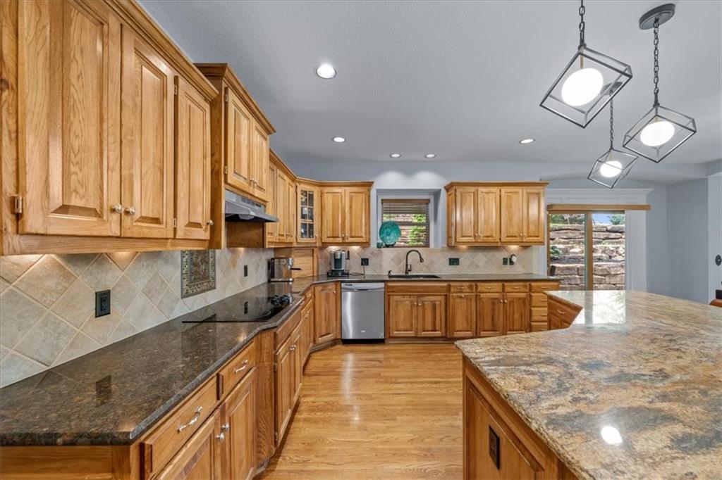 Gorgeous home loaded with upgrades, tucked at the end of a quiet cul-de-sac. Striking curb appeal with cedar accents and a full brick front porch sets the tone. Inside, refinished hardwoods and exotic granite countertops elevate the main level, complemented by a stunning see-through stone fireplace connecting the hearth room and living space. The spacious primary suite is a true retreat, featuring a massive walk-in closet, heated travertine floors, and a jetted tub. Upstairs offers a versatile loft, while new carpet spans the main and second levels. The finished lower level is built for entertaining with a granite bar, full bath, theater area and a fifth non-conforming bedroom. Outside you'll find a covered deck with a private, retreat-like setting, plus a rare exotic ironwood deck imported from India and built to last and designed to impress. Additional highlights include a heated garage with epoxy floors, newer windows throughout, updated gutters and garage doors, fresh interior paint, stainless steel appliances and dual humidifiers. Previously owned by the builder himself, this home delivers quality, character, and thoughtful upgrades throughout. A must see to fully appreciate it.