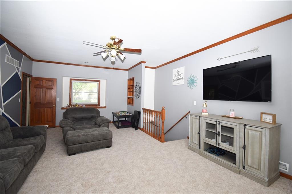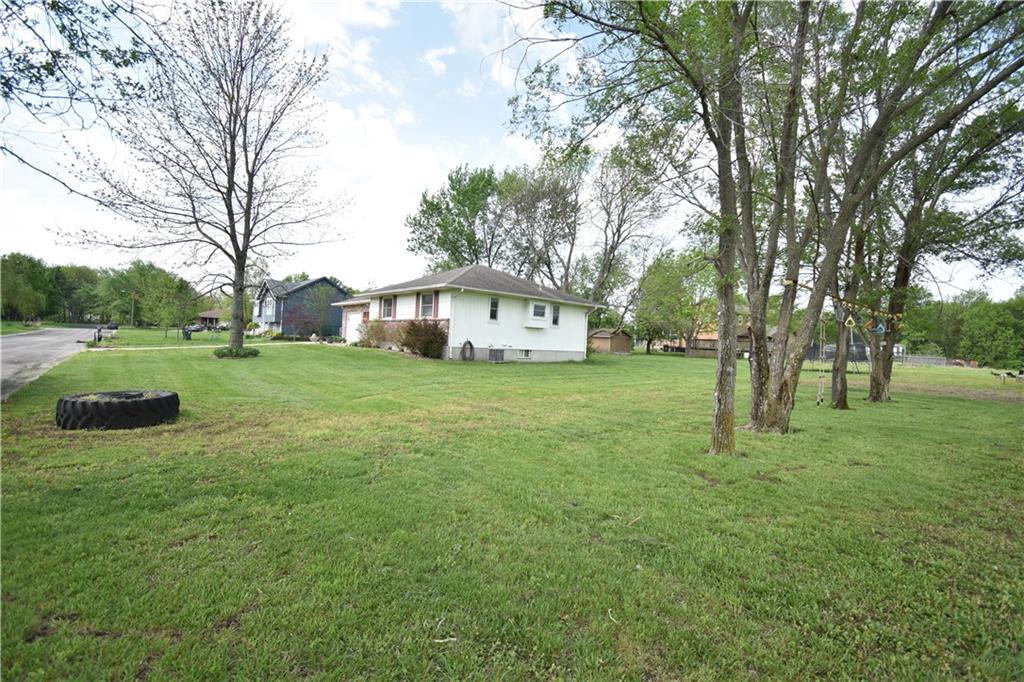 Two bedrooms and a bathroom upstairs and potential non-conforming Master Suite with bathroom downstairs. Kitchen with pantry and backyard deck access for easy entertaining. Large Living Room, attached garage and beautiful yard with view of farmland to the North. Located at the end of the cul-de-sac so minimal traffic. Large garden plot, ready to plant. Quiet neighbors with an easy commute to Harrisonville, Kansas City, or Truman Lake.