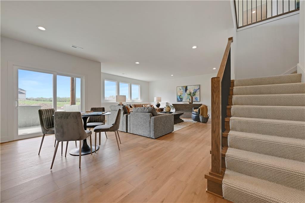 Lot 37 in The Sanctuary features this beautiful Reverse 1.5 story home from Tall Timber Custom Homes. This lovely home has 4 bedrooms and 3 and a half bathrooms and features high end finishes throughout. Soothing colors and textures will have you feeling serene in your new home. The kitchen is bathed in natural light from the many windows it has. The kitchen will be a joy to cook and entertain in. It has a very large island as well as a back prep area and pantry. All of the counter tops are da gorgeous light colored quartz. Just off the kitchen is a lovely covered deck for your outdoor enjoyment.