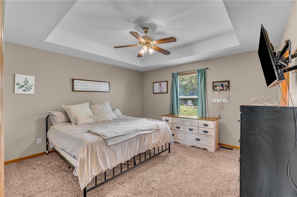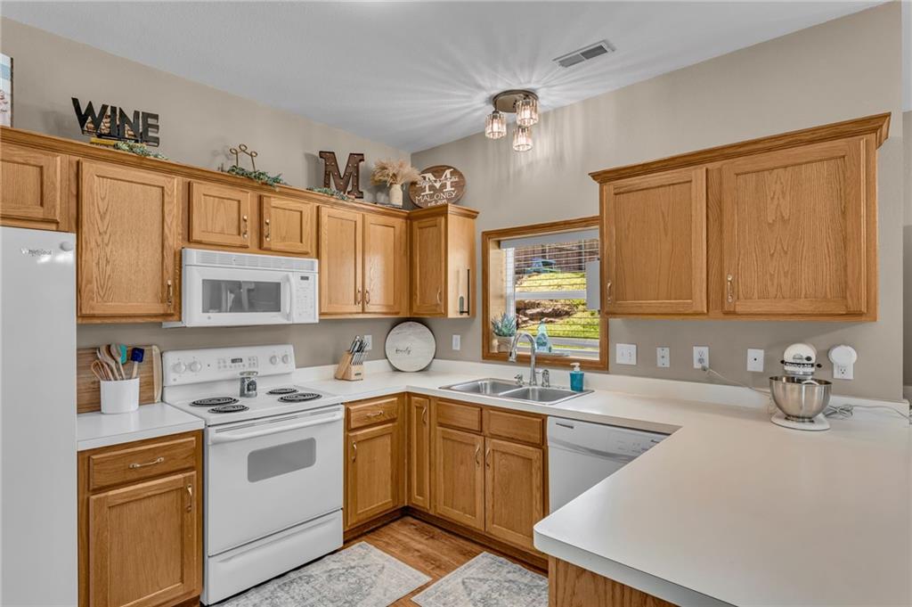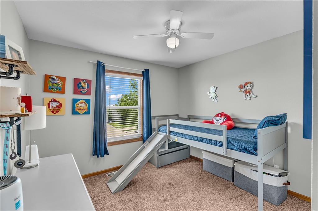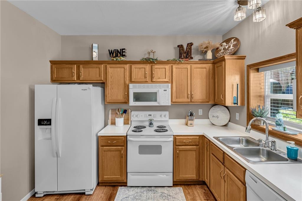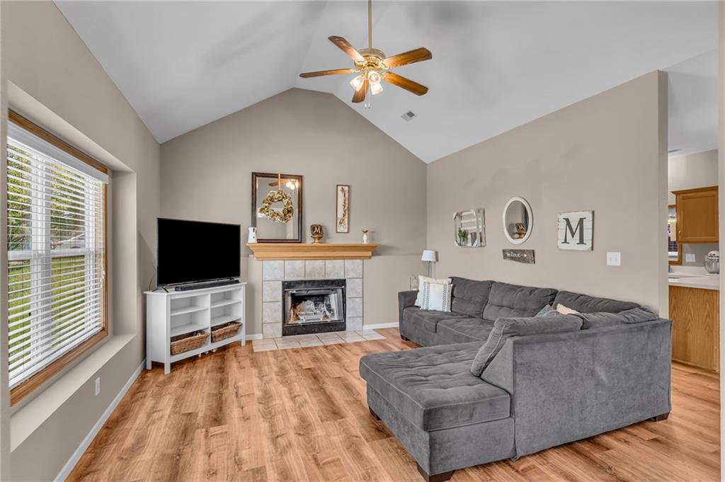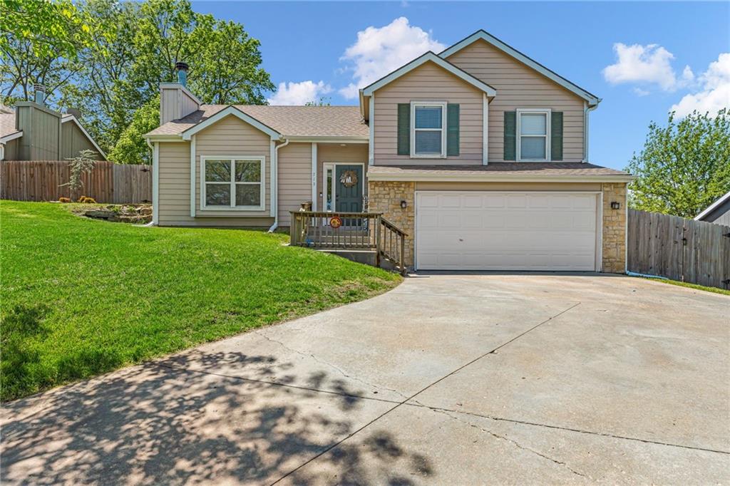 Welcome to this charming 4BR/3BA home in west Lawrence, an easy stroll from Stonegate Park. Comfortable and clean with new lighting fixtures throughout and some new paint, this practical layout features a kitchen (all appliances stay) open to a nice dining space and a lovely living room with vaulted ceilings and wood-burning fireplace to gather around. The primary bedroom has double closets and a great ensuite bathroom with double vanity, while a 4th bedroom in the basement would also make a perfect office, playroom or flex space. Lots of room to roam or relax around the firepit in the deep fenced backyard. Newer HVAC for years of peace of mind ahead. Deerfield/West/Free State schools. Lets go!