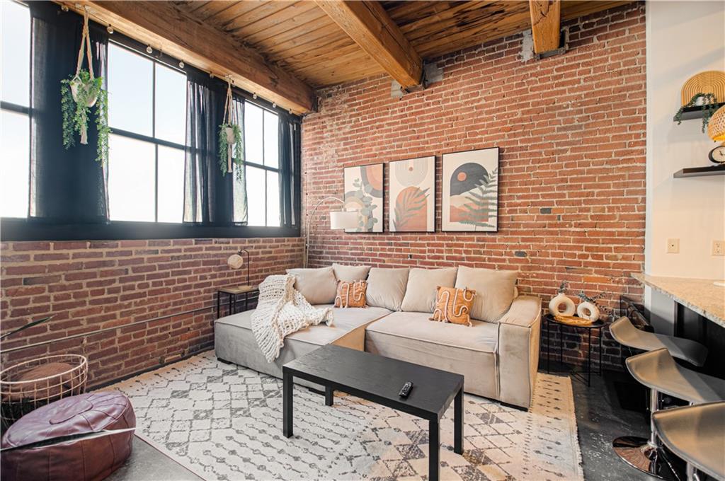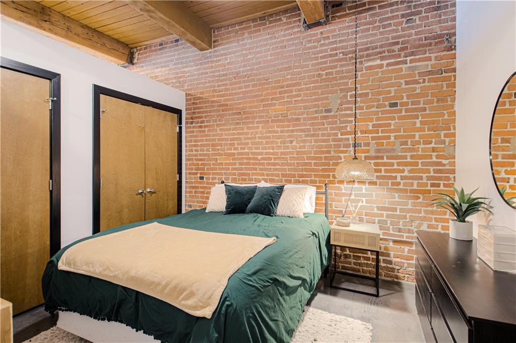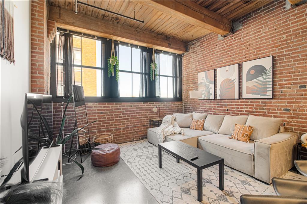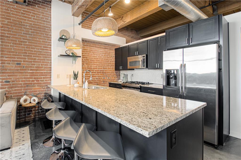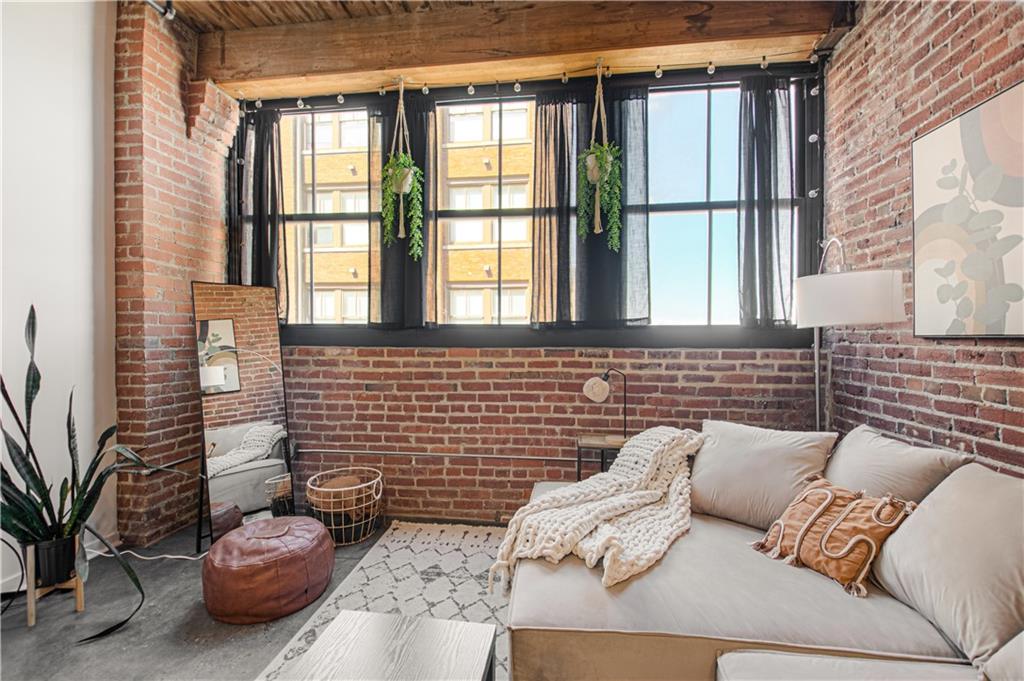 Come see this beautiful, fully furnished downtown condo! It doesn't get any easier! Located close to bars, restaurants and highways-only a few blocks to the free streetcar and just steps from the River Market area. This 1 bedroom, 1 bathroom condo is close to everything, but still located in a quiet area. It has been wonderfully updated and boasts beautiful concrete floors, granite counter tops, plenty of exposed brick and natural wood beams, lots of natural light, high ceilings, and being on the 5th floor, a fantastic view of the downtown airport and Missouri River. All stainless steel appliances stay, as well as the washer & dryer(LG). Included in the sale are the furniture and furnishings that is everything anyone could ever need to call this home! A wonderful sectional couch, bed, barstools, all shelves, shelving units, dresser, desk, 2 large screen TVs, even pots, pans, plates, glasses and silverware! (**Please note that the Kitchen Aid standing mixer does not stay**)Extra storage in the basement comes with the unit. Gated parking is available right next to the building; above ground $85/month & covered parking below is $110/month. Amenities include a wonderful fitness room, theater room, club house and sauna. Whether you're a first-time home buyer, or a couple or single that just wants a place to enjoy downtown living, this place is perfect. Don't wait-schedule a tour today!
