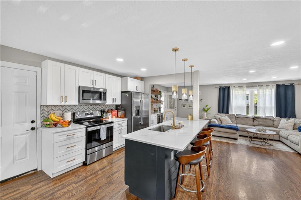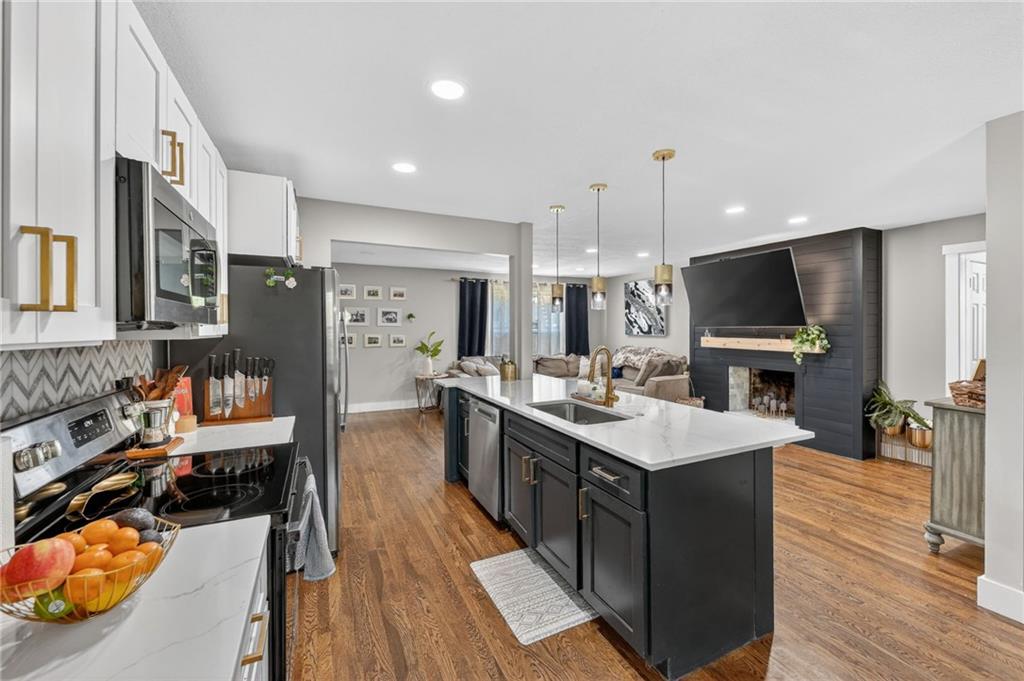 UPDATED & MOVE-IN READY - NEW WINDOWS, NEW GUTTERS, FRESH PAINT & MORE! Completely remodeled in 2023, this stylish 3-bedroom, 2-bath home is designed for effortless living and entertaining, offering modern finishes, a thoughtful design, and instant equity thanks to pricing well below recent appraisal. A bright, open-concept layout showcases hardwood floors, a custom fireplace, and a beautifully updated kitchen with new cabinetry, upgraded appliances, and a standout wet bar featuring a wine cooler, beverage fridge, and extra storage—perfect for hosting or relaxing at home. The remodeled sunroom offers a light-filled retreat ideal for morning coffee, evening gatherings, or a quiet work-from-home space. Step outside to a private backyard featuring a large textured concrete patio, bistro lighting, and a privacy fence, creating the perfect setting for outdoor dining, entertaining friends, or unwinding at the end of the day. The home is designed for single level living with laundry hookups on the main floor and an unfinished basement provides excellent future expansion and value-add potential. Upgrades include a newly installed security system for peace of mind, fresh paint, all new windows, upgraded retaining wall, and more! Every detail has been thoughtfully updated to deliver a home that feels modern, comfortable, and truly move-in ready—ideal for buyers seeking a home that supports both everyday living and a vibrant lifestyle.
