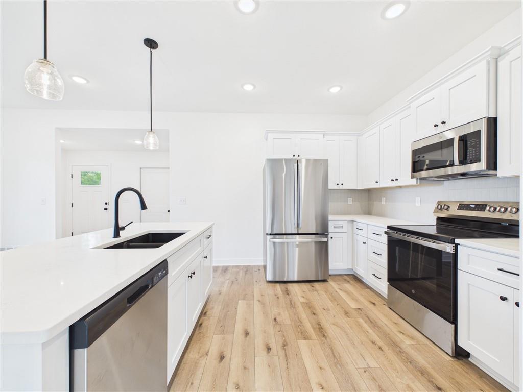Step into this thoughtfully designed 2-story home that perfectly balances style, space, and everyday functionality. Offering 3 bedrooms and 2.5 baths, this home welcomes you with a bright, open-concept main level ideal for both relaxing and entertaining. The heart of the home is the dreamy kitchen, featuring a large island perfect for gathering, plus a walk-in pantry that keeps everything organized and within reach. A convenient half bath on the main floor adds comfort for guests. Upstairs, you’ll find spacious bedrooms designed with comfort in mind. The sprawling primary suite is a true retreat, complete with an en suite bathroom featuring dual vanities, a generous walk-in closet, and an added flex space, perfect for a cozy sitting area, home office, or workout nook. Secondary bedrooms are equally impressive, offering built-in closet features for smart storage and organization. Outside, enjoy a cute, manageable yard that’s easy to maintain while still offering space to unwind or entertain. The 2-car garage provides ample storage and convenience. This home checks all the boxes with its functional layout, stylish features, and comfortable living spaces, ready to welcome you home!
