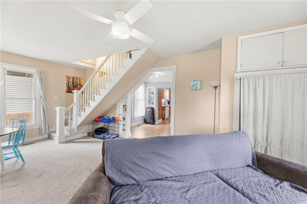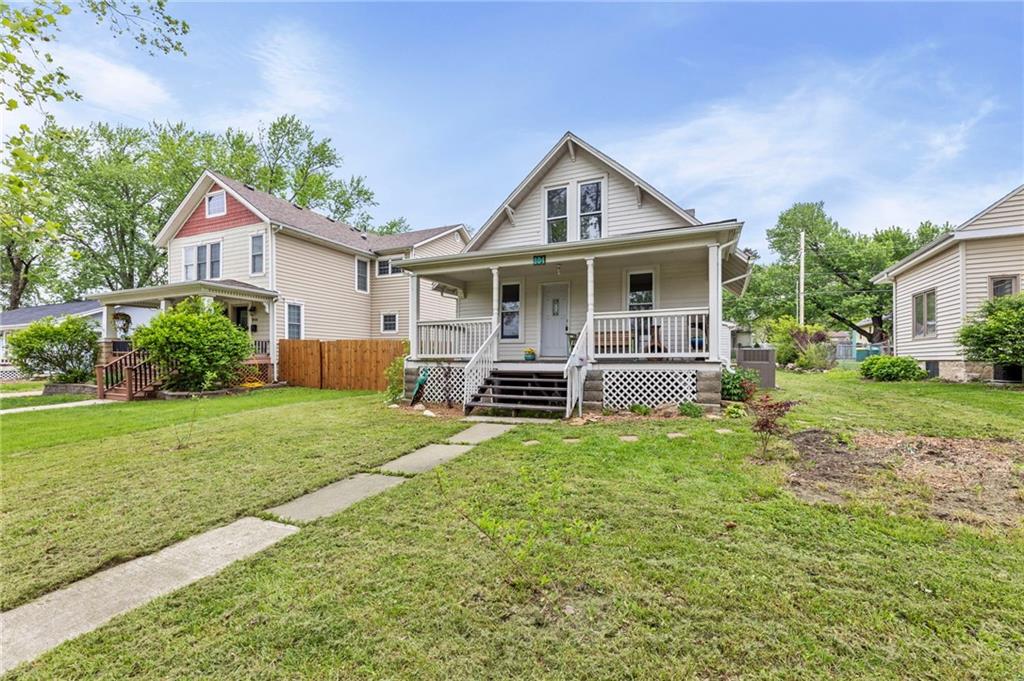 Nestled in a prime location just a short stroll from the charm of the historic Paola square, this adorable two-bedroom, two-bathroom home offers a perfect blend of modern convenience and classic appeal. The main level welcomes you with an expansive family room that flows effortlessly into an open concept kitchen and dining area with loads of cabinets and all appliances staying, creating an ideal layout for both daily living and effortless entertaining. Main level bathroom features a huge, tiled shower. Upstairs, you will find two generously sized bedrooms and a second full bathroom, providing a private and comfortable retreat. Car enthusiasts or those seeking extra storage will appreciate the wonderful, newer two-car attached garage that adds significant value to the property. The home's exterior has been meticulously maintained, featuring a comprehensive refresh in 2020 that included scraping and repainting the siding along with the installation of new gutters, newer windows 2022 and central heat and air. Beyond the walls, a lovely yard awaits, offering the perfect backdrop for summer barbecues and outdoor relaxation. This move-in-ready gem combines a fantastic layout with a sought-after neighborhood setting; don't miss your chance to own a piece of Paola history, as a home this well-cared-for truly won't last long on the market.