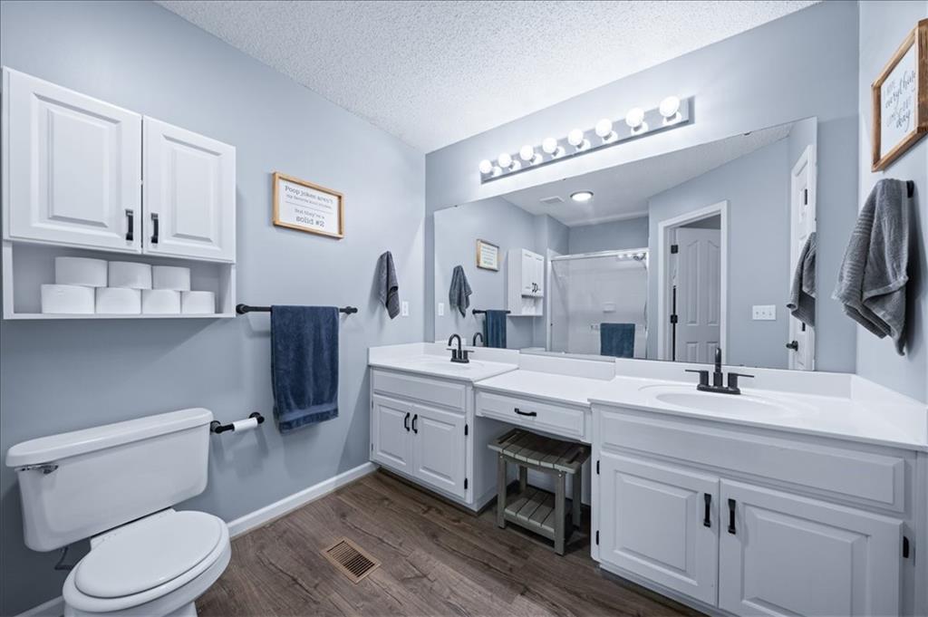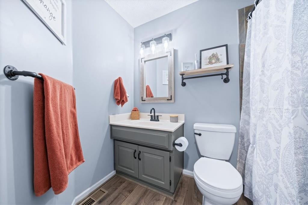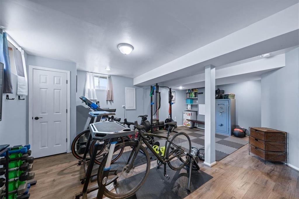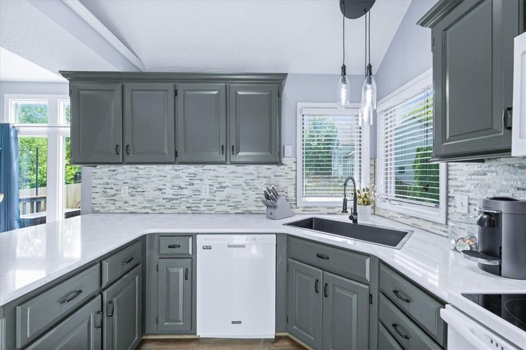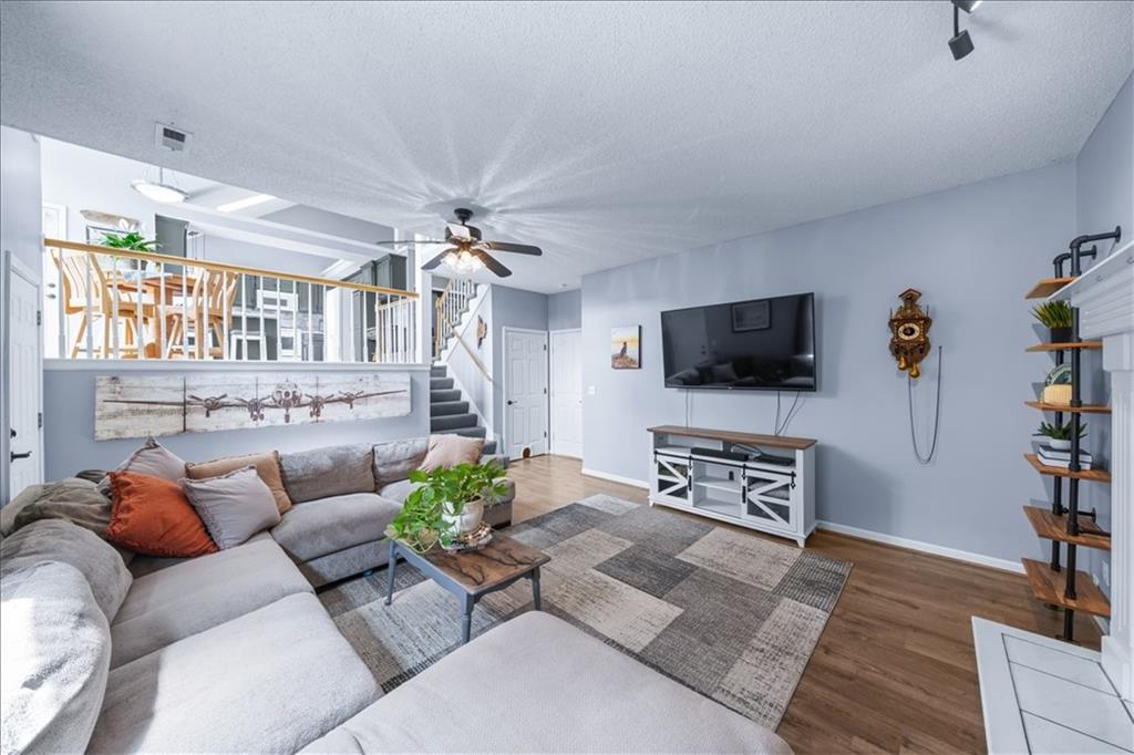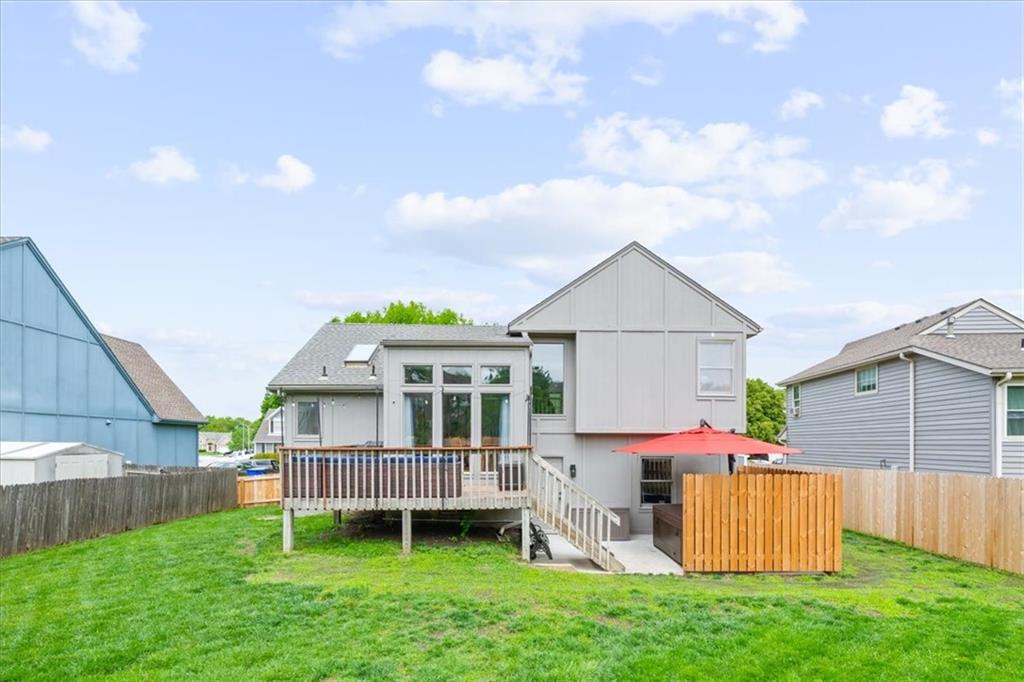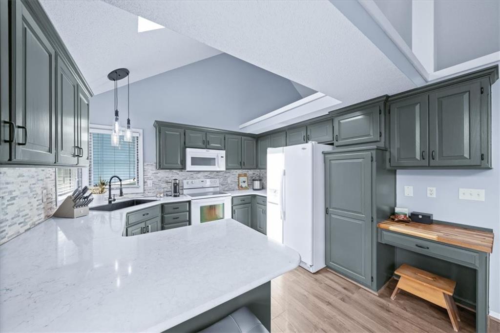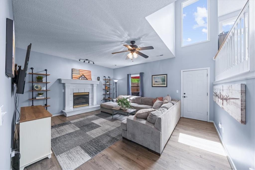 Beautifully updated and truly move-in ready, this home shines from top to bottom! Bright and airy throughout, it features soaring vaulted ceilings and an abundance of natural light that creates a warm and inviting feel. The main level offers incredible flexibility with a front living room that easily doubles as a home office. The fully updated kitchen is a standout, featuring quartz countertops, painted cabinetry, and a stylish backsplash, all opening to an incredible great room with a cozy fireplace—perfect for everyday living and entertaining. You’ll love the spacious bedrooms, including a primary suite that serves as a true retreat with a beautifully updated ensuite bath. The sub-basement adds even more versatility with an additional half bath and bonus living space—ideal for a workout room, playroom, or second office. Extensive updates include new flooring and interior paint throughout, new stair carpet, updated door and cabinet hardware, modern light fixtures and ceiling fans, refreshed bathrooms and faucets, and custom built-ins in the front living room. Major mechanical upgrades include a new furnace with a smart thermostat and a new AC fan. Step outside to enjoy the newly added concrete patio complete with a hot tub that stays, a storage shed, and new fencing—creating the perfect outdoor space to relax or entertain. This one truly has it all—don’t miss your opportunity to call it home!