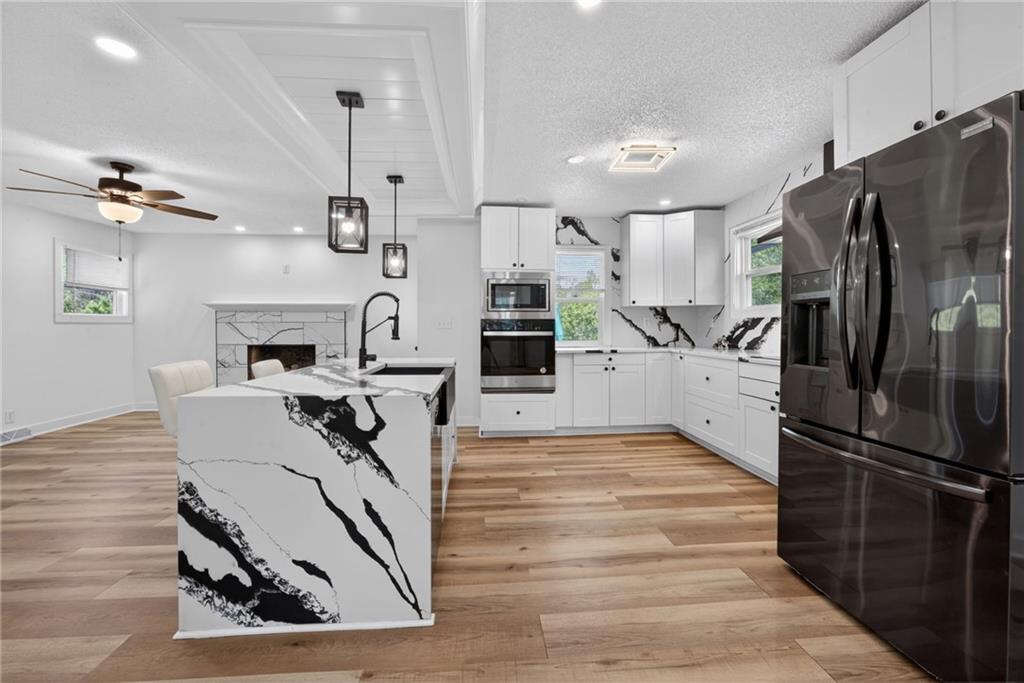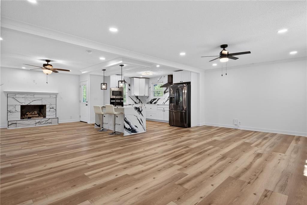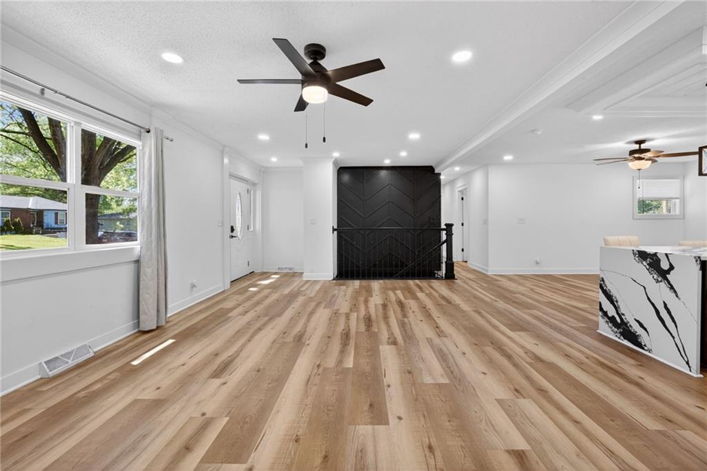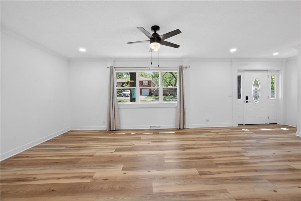 Welcome to this beautiful reverse ranch home! This move-in ready property features 3 bedrooms, 3 full bathrooms, and a 3-car garage with rear entry. Enjoy a modern open kitchen with elegant marble countertops, perfect for cooking and entertaining. The fully finished basement offers a spacious family room, ideal for gatherings or additional living space. The home has been completely remodeled and sits on a generous yard, providing plenty of outdoor space. Don't miss the opportunity to make it yours!