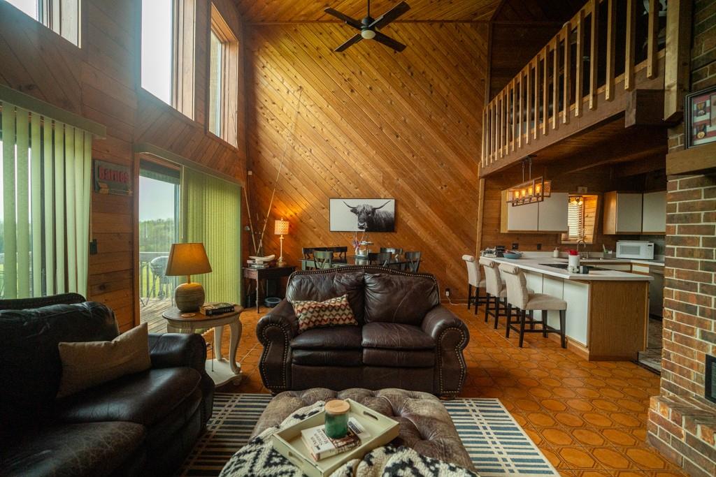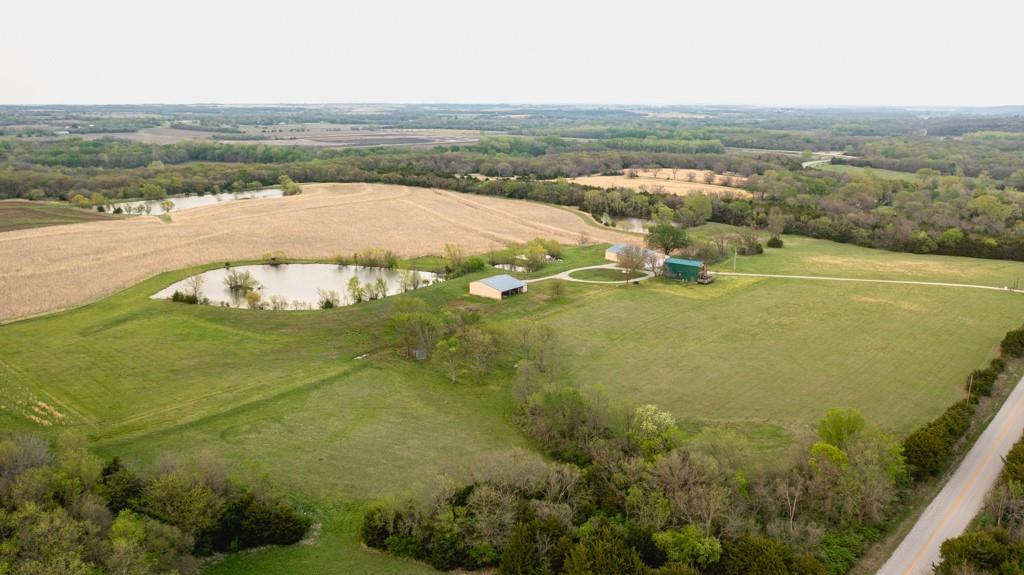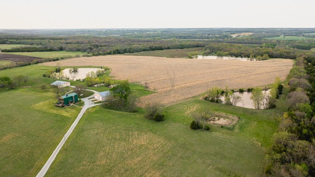 Where the World Gets Quiet - There's a moment, right after you turn off the pavement and wind down the private drive, when it happens. The noise of everything fades. The city, the schedule, and the screen in your pocket. All of it gives way to wind moving through the timber and a hay meadow glowing gold in the afternoon light. This is that place. And there's nothing else quite like it. 78 ac +/- on the southern slopes of the Wakarusa River Valley. 3 ponds totaling more than four acres of surface water hold trophy bass that'll humble you all summer and draw ducks to the decoys all fall. 12 secluded acres of alfalfa work quietly in the background, pulling whitetail and turkey in from the surrounding countryside season after season. Warm-season grasses sway between the cabin and the north timber, and a trail system winds through it all. Tens of thousands of acres in the adjoining Clinton Lake Wildlife Management Area stretch out beyond the property, a near-limitless backyard for the hunter, the hiker, and everyone in between. Deer season. Turkey season. Mushroom season. Bass season. Shed season. This farm runs a full calendar of reasons to be outside. And when the day finally winds down, the rustic details of the A-frame lodge await. Vaulted ceilings soaring over a two-story brick fireplace. Floor-to-ceiling windows keep the outdoors close even after you've sat down. It's the kind of architecture that understands what "living" actually means. Three bedrooms and three full bathrooms offer everything you need, while the fully finished basement gives you room to spread out, host, or simply disappear for a while. Two substantial shops — an 80'x48' and a 48'x16', one with partial concrete floors, electricity, and an abundance of access points handle everything you bring with you: tractors, trucks, boats, ATVs, and all the gear that comes with a life lived outdoors. 15 min from Topeka or Lawrence. 10 min from Clinton Lake. A lifetime from ordinary. Setup your showing today!