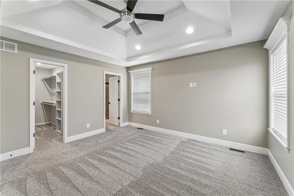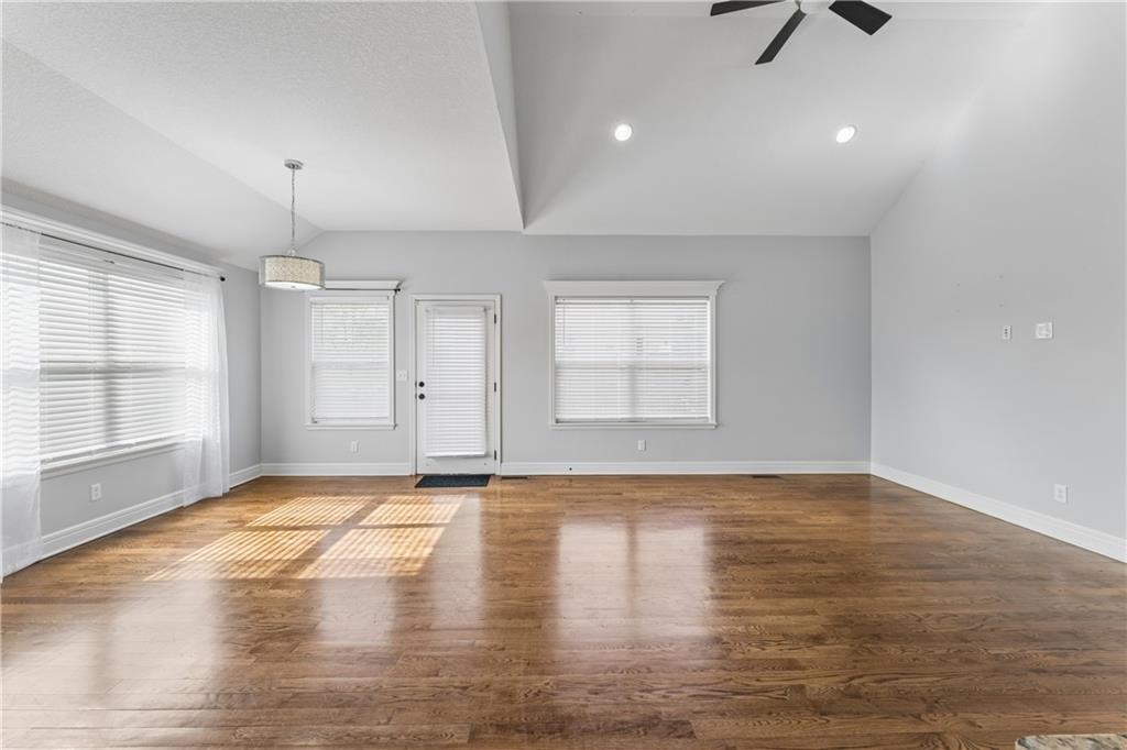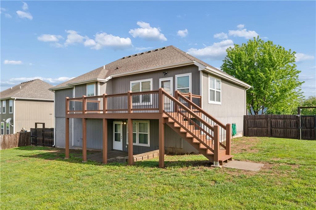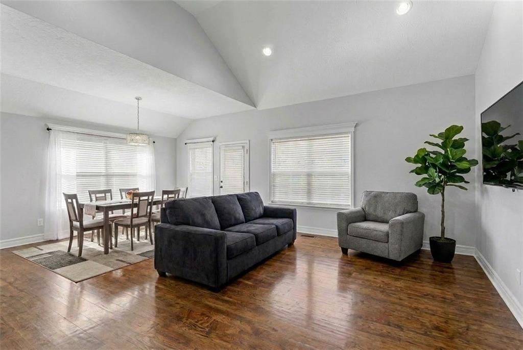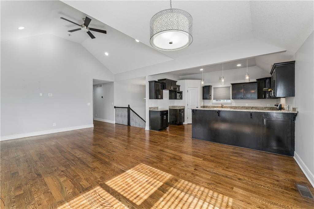 Welcome home to this beautifully updated 4-bedroom, 3-bath home located in the highly sought-after Piper School District, where modern style meets everyday functionality. This gorgeous home is currently situated at the end of a quiet dead-end street. Step inside to a light-filled main living area featuring soaring vaulted ceilings, fresh paint, newer carpets and an open-concept layout designed for both comfortable living and effortless entertaining. Rich hardwood floors flow throughout the main level. The huge kitchen impresses with granite countertops, stainless steel appliances, and a spacious walk-in pantry, making it ideal for everything from weeknight dinners to hosting gatherings. The primary suite offers a relaxing retreat with generous space, a walk-in closet, and a beautifully updated en-suite bath showcasing modern finishes. Three additional bedrooms provide flexibility for family, guests, or a home office. Step outside to enjoy the fully fenced backyard, perfect for relaxing, playing, or creating your own private outdoor oasis. The finished lower level has updated flooring and walks out to a great patio space. A 3-car garage adds convenience and ample space for vehicles, storage, or hobbies. With a prime location near shopping, dining, and major highways, this home truly delivers the perfect combination of comfort, style, and convenience.