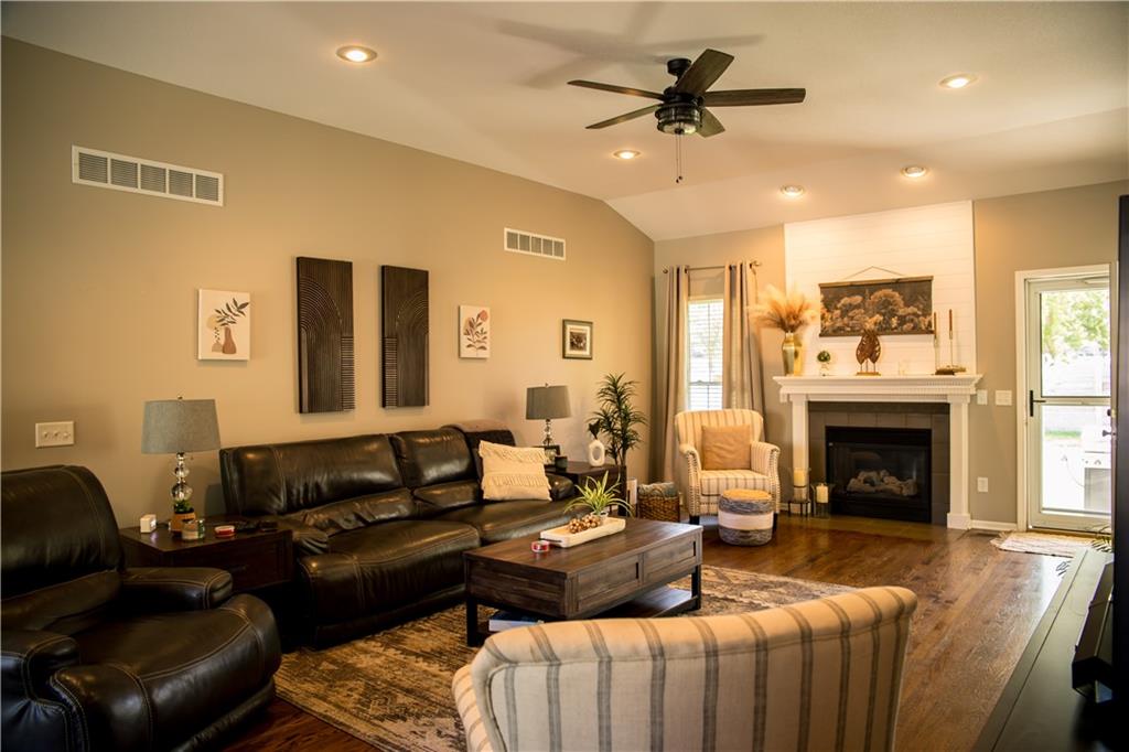 This home has been tastefully decorated and meticulously maintained. It's so stunning it could be on HGTV. Hardwood floors throughout the main level, with a tiled laundry room. Rooms are spacious, especially the master ensuite. In fact, there are two master ensuites: one on the main level and the other in the lower level. The lower level master bath has heated floors and the LL walk-in closet includes the 2nd laundry hook-up. There is a family room with a game area and bar in the LL, as well. Updates to the home include a new water heater, all flooring, light fixtures and ceiling fans, furnace, water softener, roof and cooktop. The backyard is enticing with a covered patio and a separate cement pad for additional entertaining. The newer Basehor Elementary School is within walking distance, and the HOA provides a swimming pool, shelter, and basketball court. Don't miss this stunning home!
