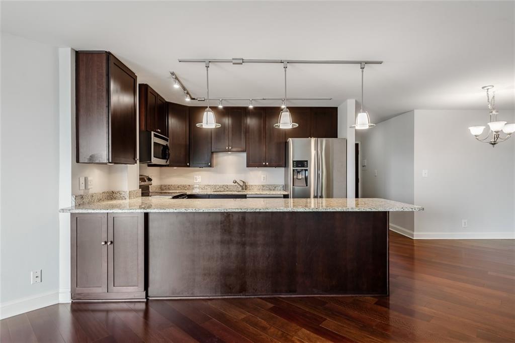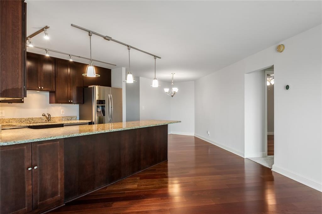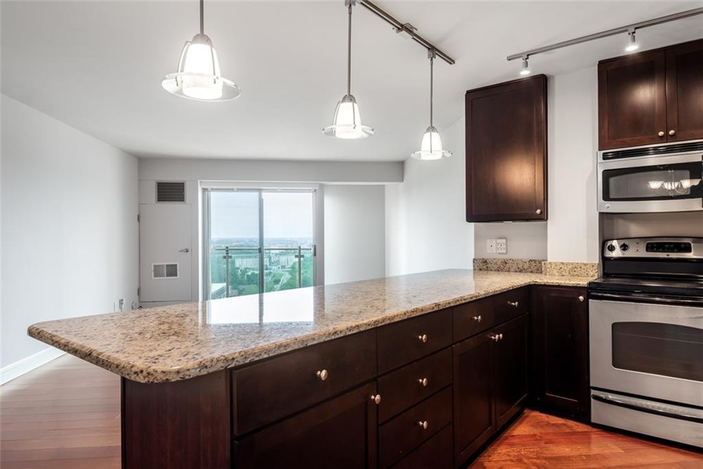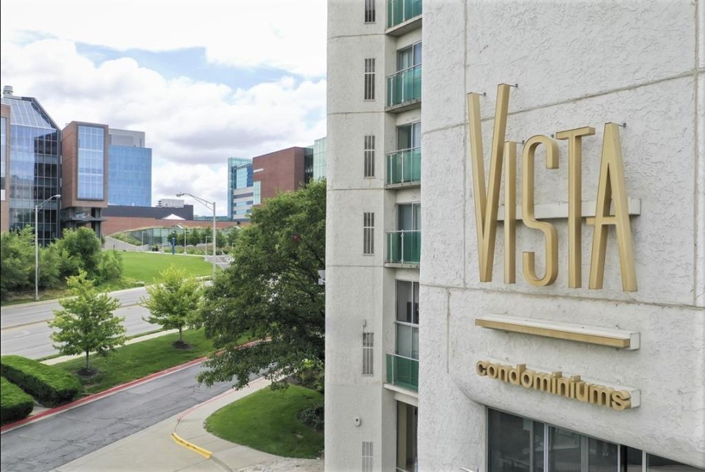Spectacular view being located on the 14th floor! Own your condo and enjoy being located across the street from KU Medical Center. A great opportunity for medical students and medical professionals with secure covered parking in building. This two bedroom, two bathroom unit has brand new neutral paint throughout all rooms and ceilings, new carpet in the primary bedroom, new sliding closet doors w/mirrors, sliding glass door to small balcony, gorgeous glistening wood-type floors in main area and second bedroom. Granite counter tops with under cabinet lighting in kitchen and stainless appliances (newer refrigerator), washer and dryer that stay. Bathrooms have travertine tile with primary having a walk-in shower and 2nd bath having tub with shower. Two parking spots included with one inside secure, covered garage and one on surface lot. Oversized storage cubicle is included located on ground floor. HOA amenities include water, trash, quarterly pest control, fitness center, theater room, meeting/study room, billiards/recreation room, study lounge, welcoming staff & secure entry to building. Easy highway access, many restaurants & shops close by.