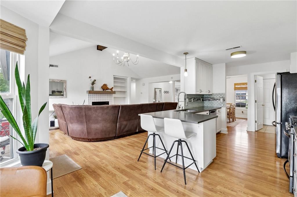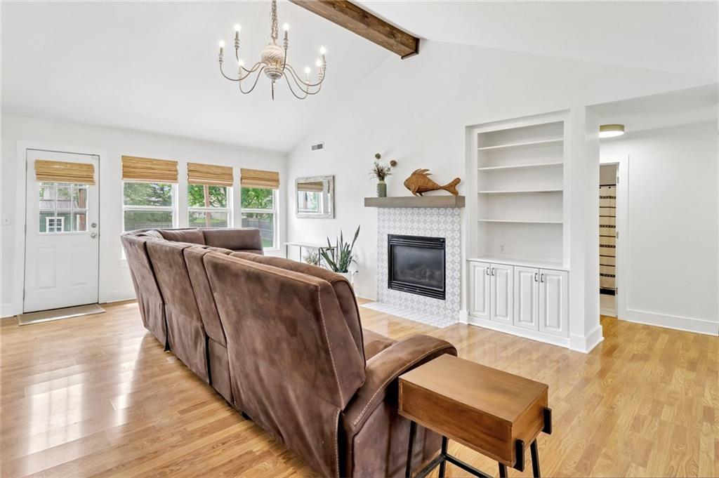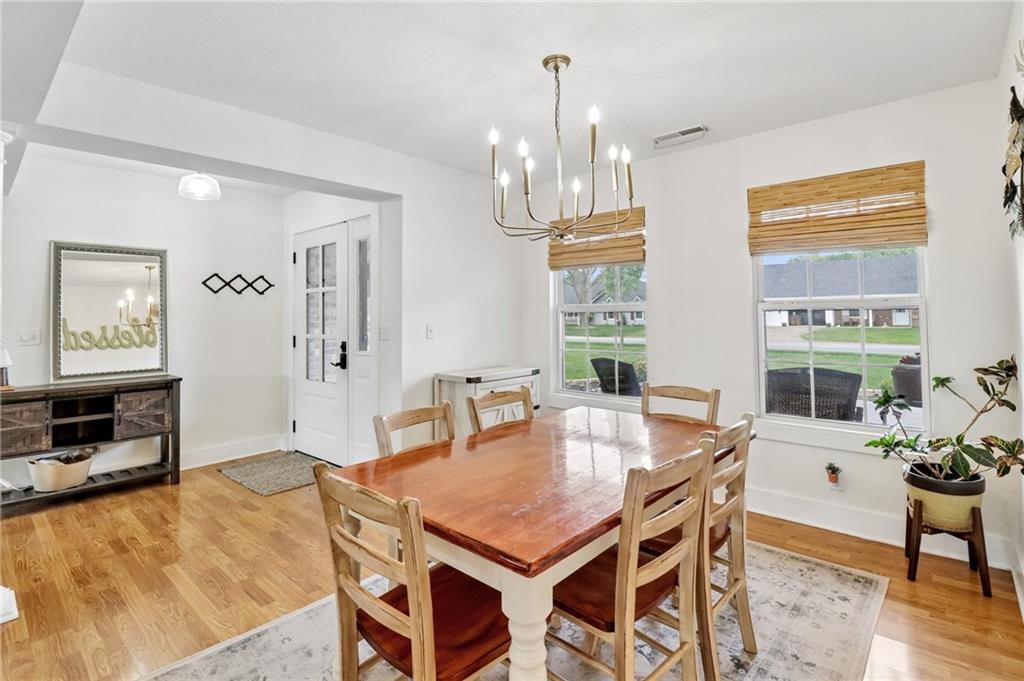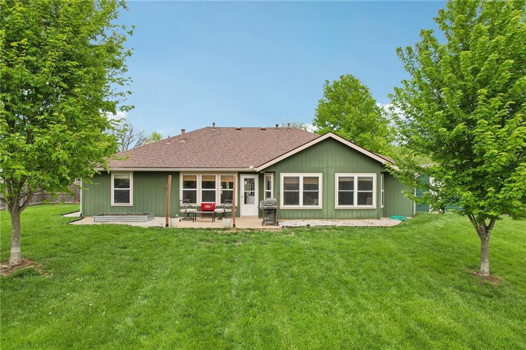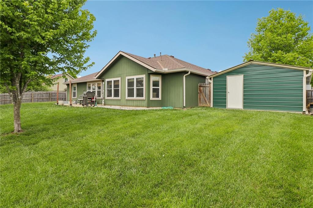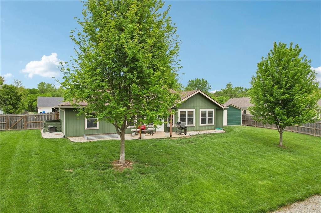 An inviting front patio welcomes you to this stunning 4-bedroom ranch with zero steps, offering one-level living throughout. Inside, you’ll find a spacious and comfortable layout designed with both function and flow in mind. The main living area features a large living room anchored by a fireplace and enhanced with built-in shelving. From here, the home transitions seamlessly into a formal dining room and an eat-in kitchen. The oversized primary suite offers a true retreat with a tub, stall shower, and a generous walk-in closet. Step outside to a fully fenced yard that provides privacy and plenty of room to enjoy the outdoors. A standout bonus includes two insulated outbuildings—16x35(concrete driveway w/ garage door) and 10x20—both with electricity, offering endless possibilities for a workshop, storage, hobbies, or whatever fits your needs.