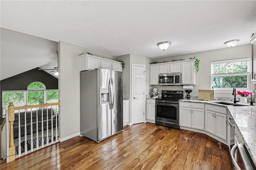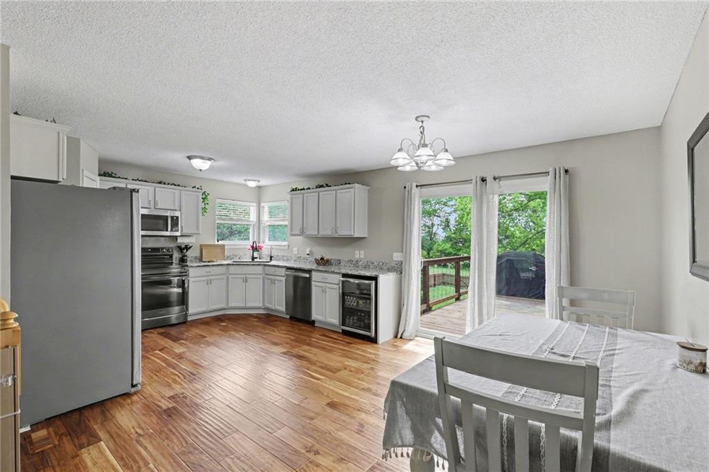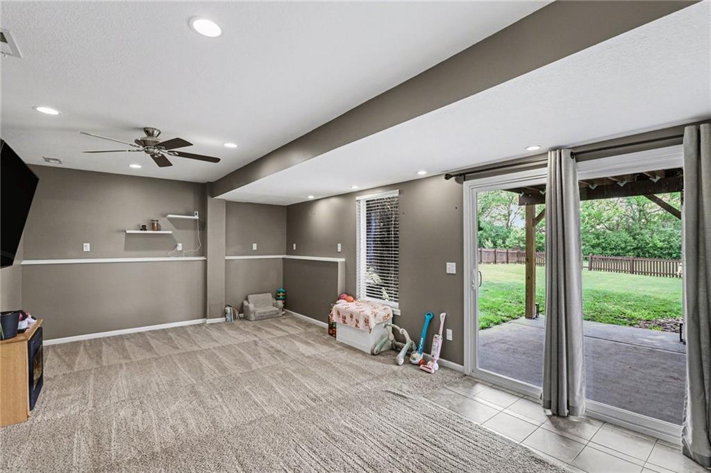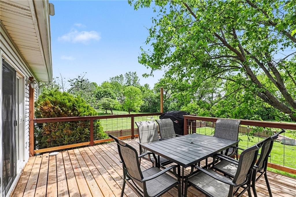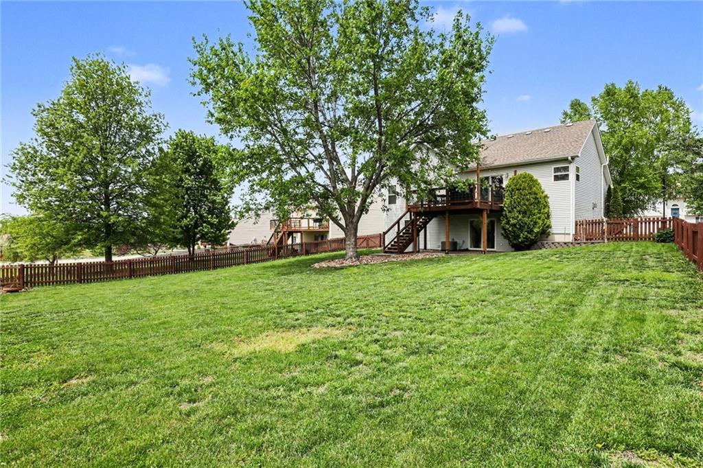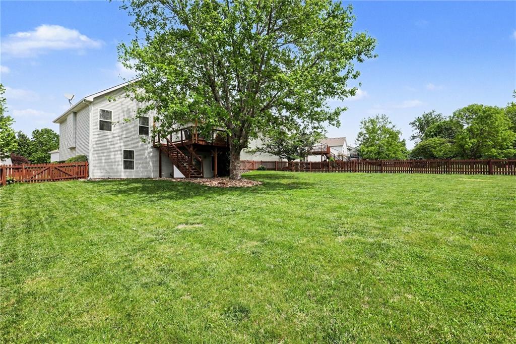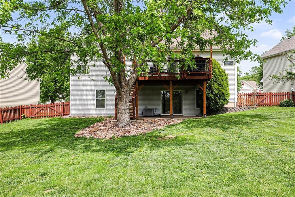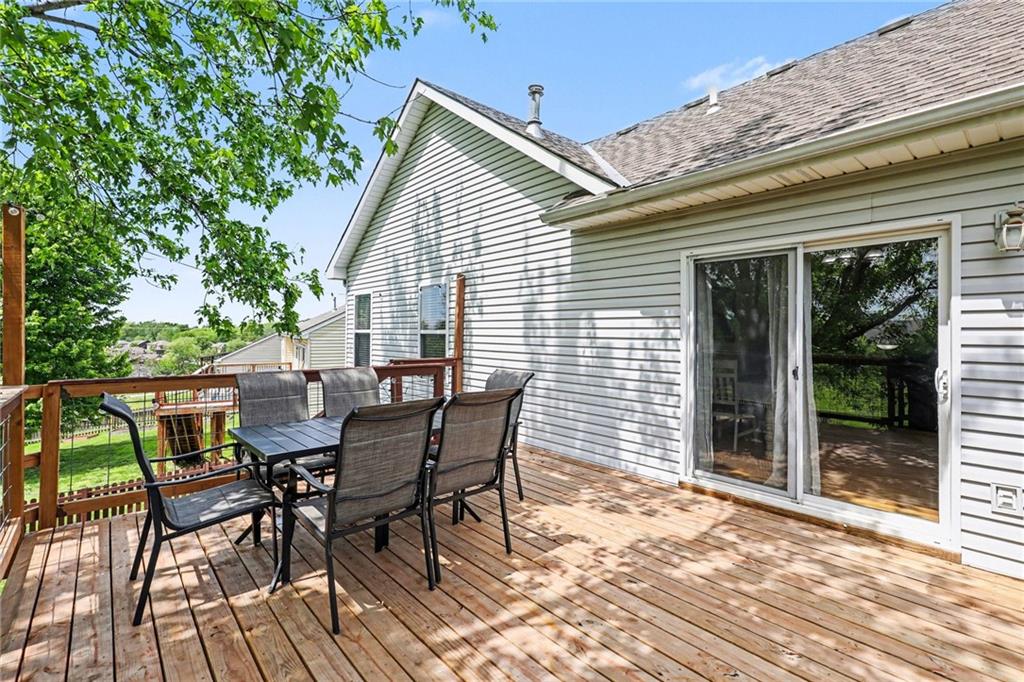 Charming Front to Back Split located in the Hills of Oakmont Neighborhood! Featuring a brand new HVAC with a whole home humidifier AND whole home water softener/reverse osmosis system, as well as a new fence for that beautiful back yard! The front door leads you to the cozy living room with vaulted ceilings and a gas fireplace. Upstairs, you have the kitchen/dining combo with granite countertops, stainless steel appliances, a pantry, and walks out to the back deck... perfect for entertaining guests! Down the hall, you have the primary suite with a walk-in closet and full bath, two additional bedrooms, and a hall bath. Downstairs is the finished basement ready to be made into the additional family room space or playroom with a full bath and additional bedroom. Great location with plenty of walking trails nearby for those nice Missouri days!