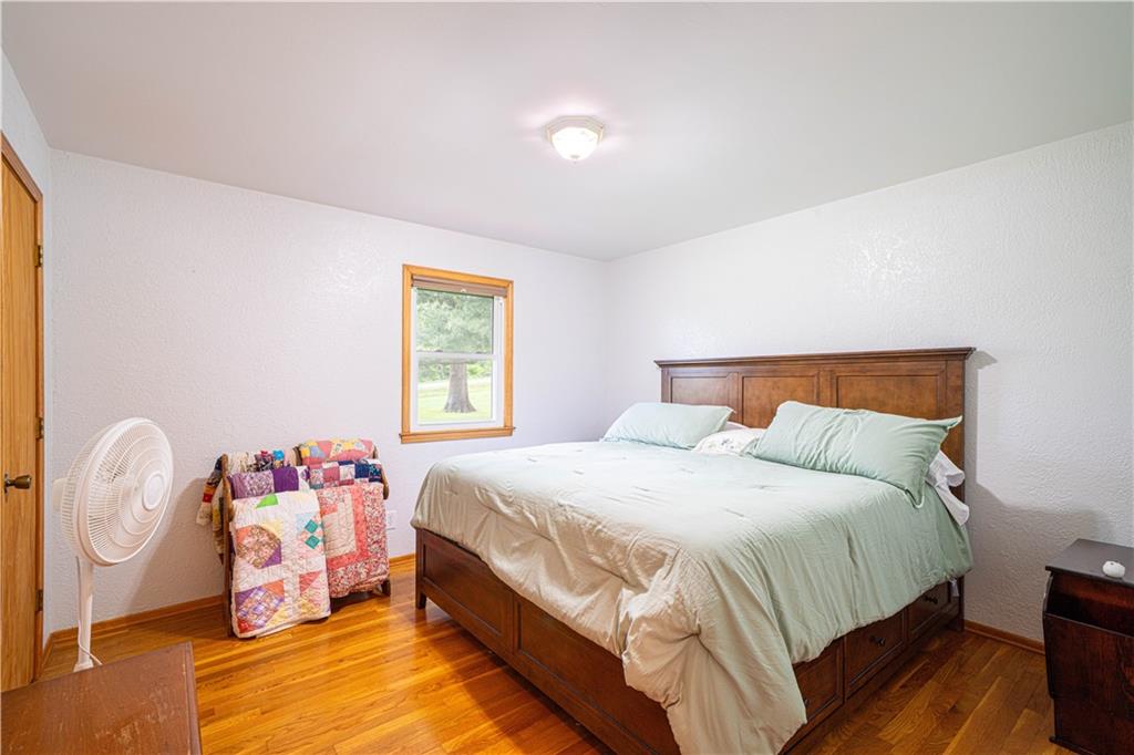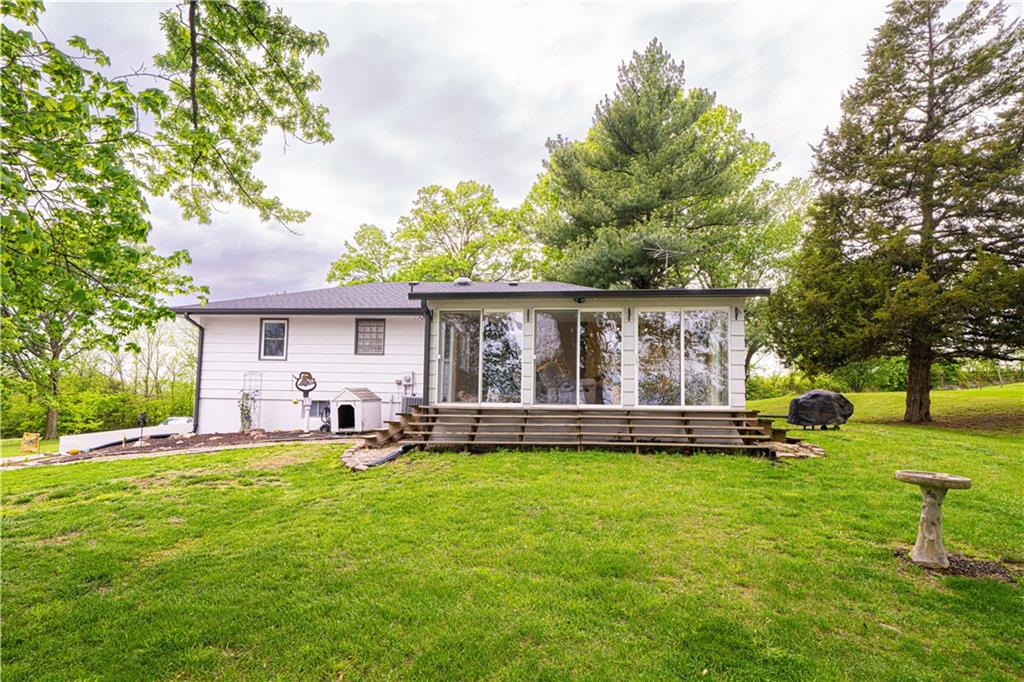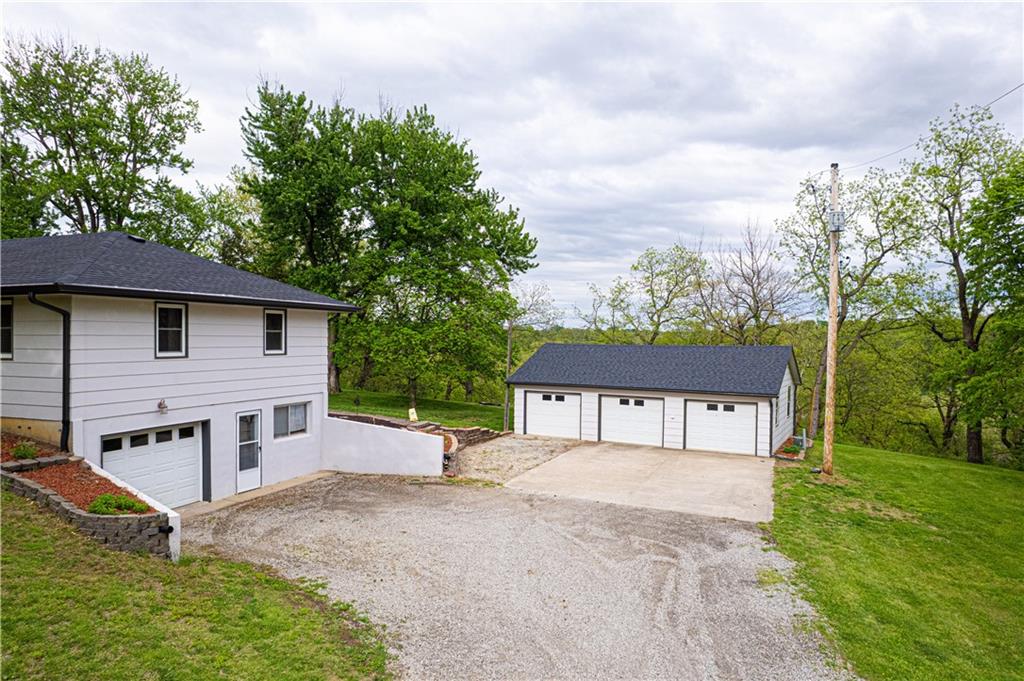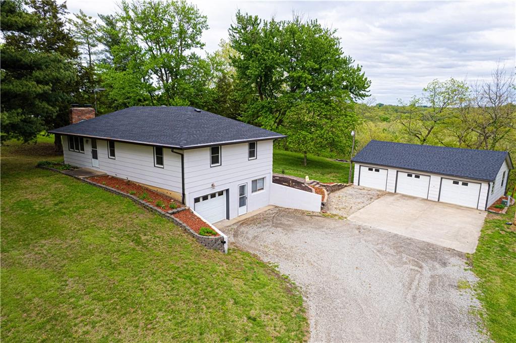 Spacious and well-maintained 4-bedroom, 2-bath home on 1.5 acres along State Rt DD in Savannah, MO, offering 2,536 total finished square feet and a full finished walk-out basement. This property has seen extensive updates, including new windows, HVAC system with humidifier, hot water heater, and added attic insulation in 2021, plus a brand-new roof and gutters in 2024. Septic system (tank and laterals) was replaced in 2017. The main level features three bedrooms with hardwood floors, ceiling fans, and soft pull-down blinds. The updated kitchen offers hickory cabinets with soft-close drawers, laminate flooring, modern lighting, and includes GE stove/oven, microwave, Frigidaire refrigerator, and Maytag dishwasher. The living room showcases a wood-burning fireplace, built-in grandfather clock, and fresh paint. The finished basement adds a fourth bedroom, second full bath with recent updates, new laminate flooring, fresh paint, additional living space, and ample storage. Wall-mounted TVs in the basement living area and bedroom stay. Exterior highlights include a 3-car detached garage with electricity and automatic doors (roof replaced in 2020), attached lean-to for extra storage, a 1-car attached garage, and plenty of parking. A rare combination of space, updates, and functionality—this home is truly move-in ready.